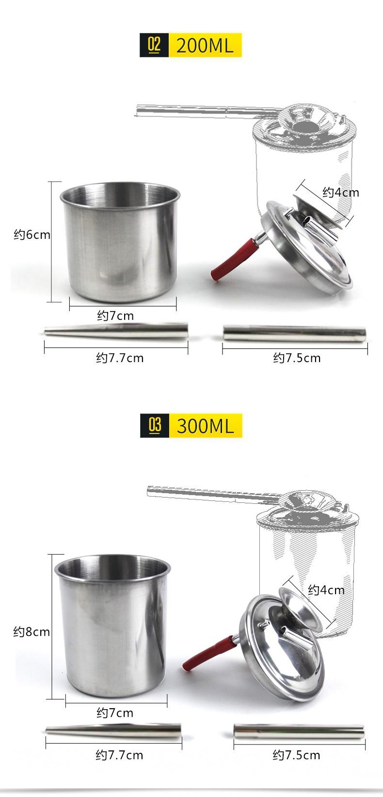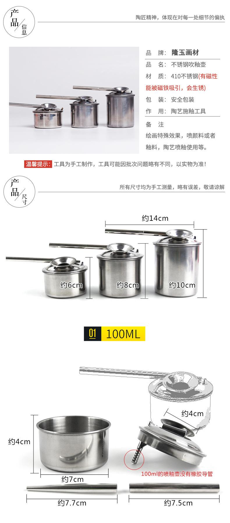 Stainless steel blow glaze pot 100 ml, Stainless steel blow glaze pot 200 ml, Stainless steel blow glaze pot 300 ml