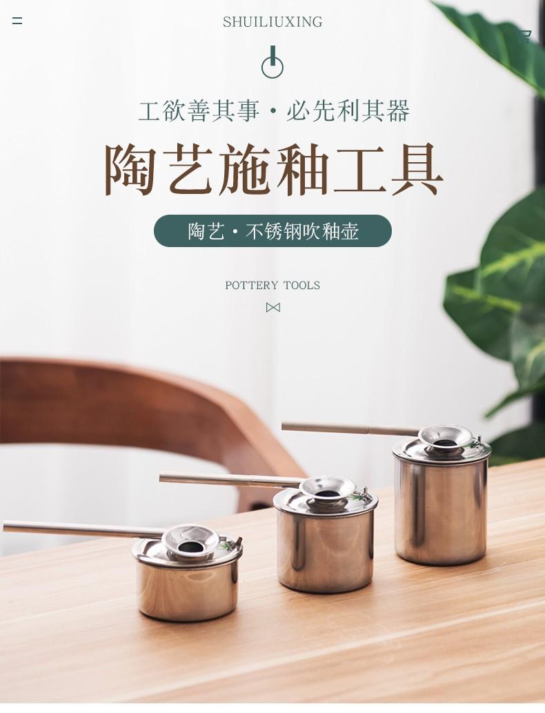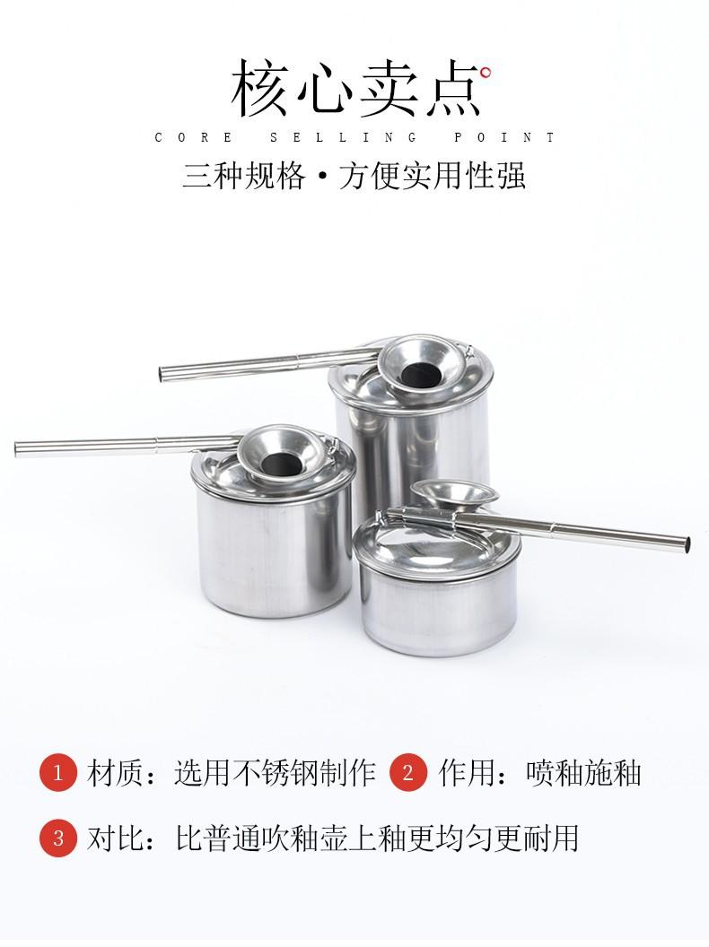 Herramientas de cerámica transfronterizas acero inoxidable olla para soplado de esmalte varios modelos y tamaños regadera bar de cerámica escolar suministros de cerámica al por mayor