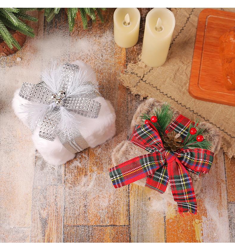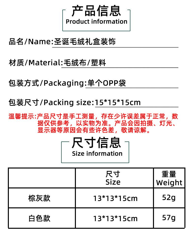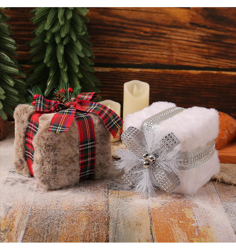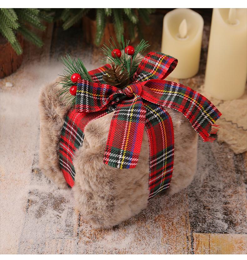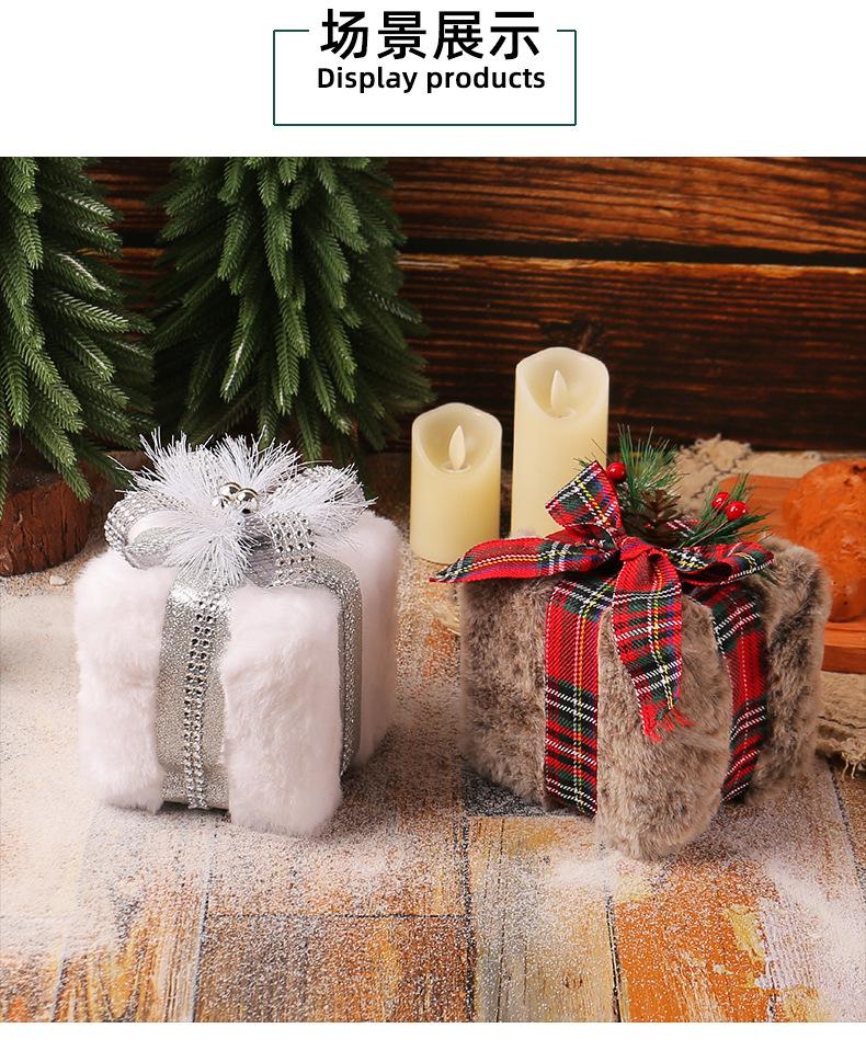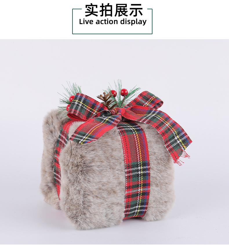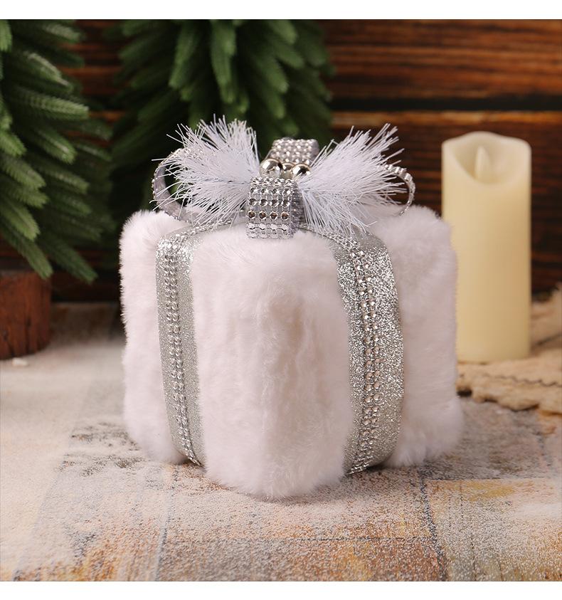 Caja de regalo de peluche navideña de Amazon, decoración tridimensional, decoración para árbol de Navidad, caja de regalo cuadrada con colgante