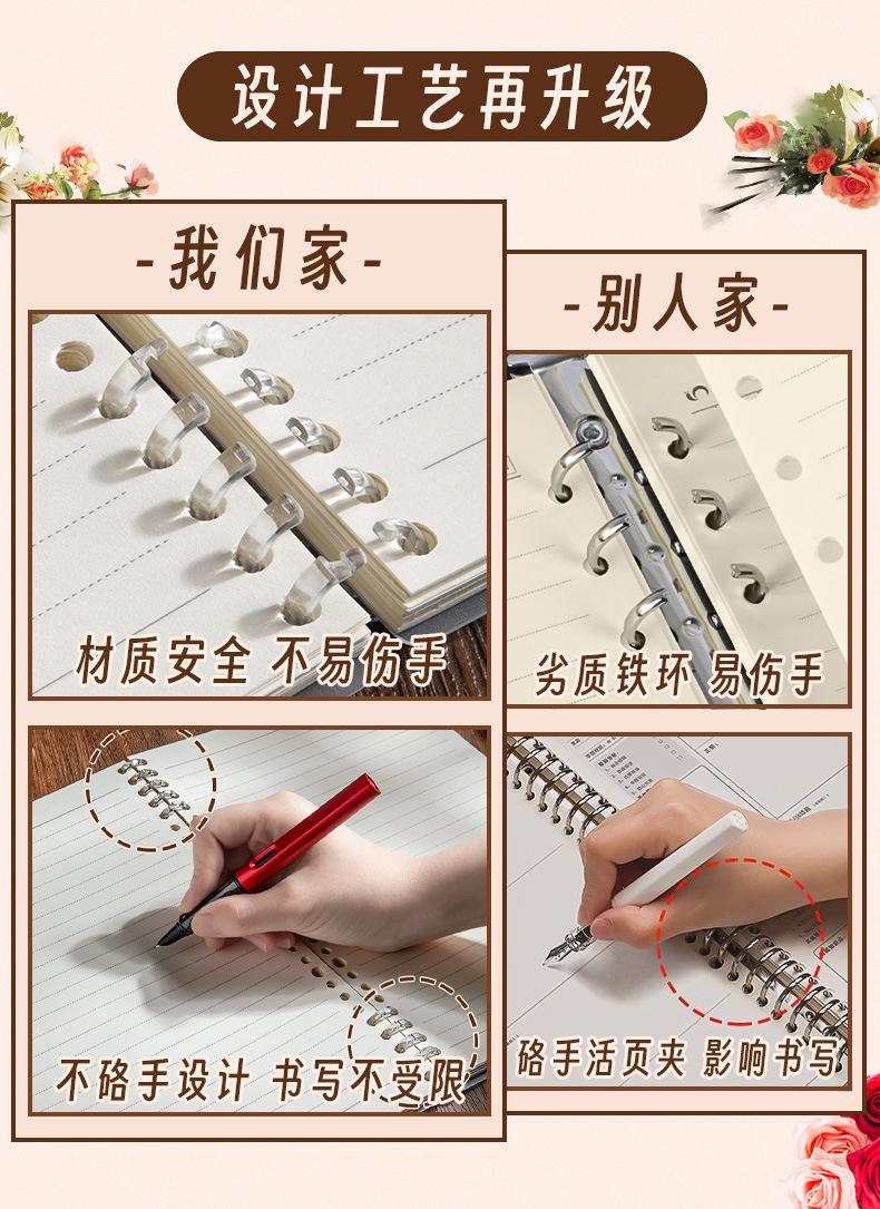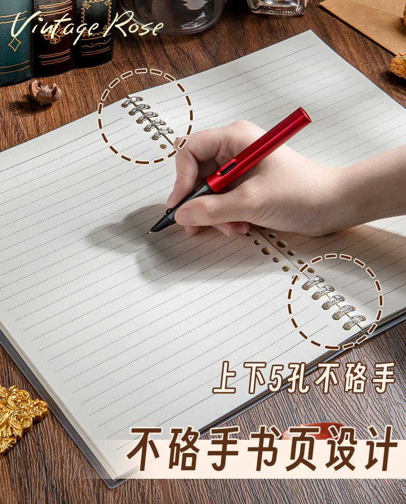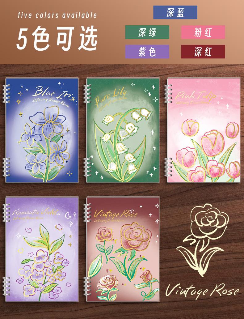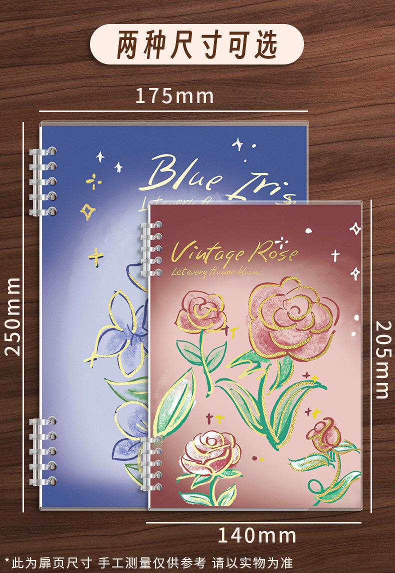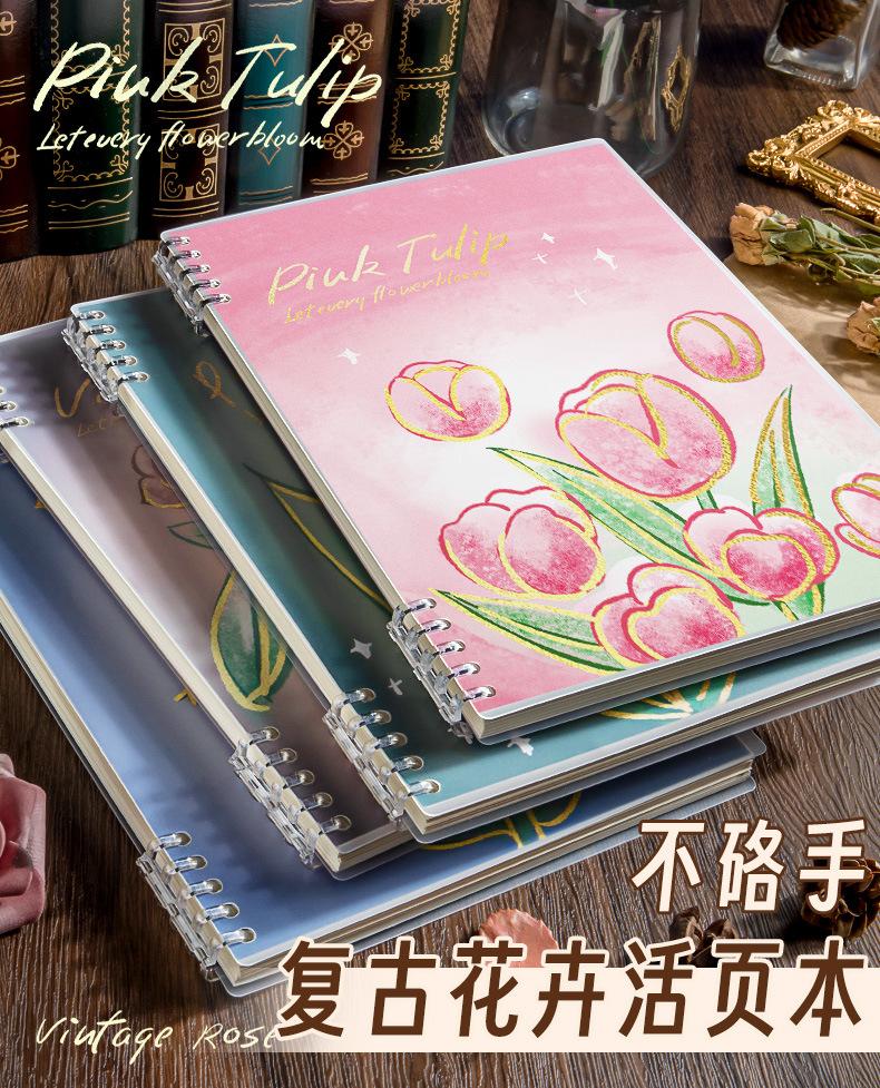Libreta de 10 agujeros, sencilla, fresca, con manos libres, resistente al agua, de hojas sueltas, tamaño A5, con diseño retro de flores, libreta de hojas sueltas