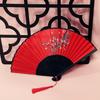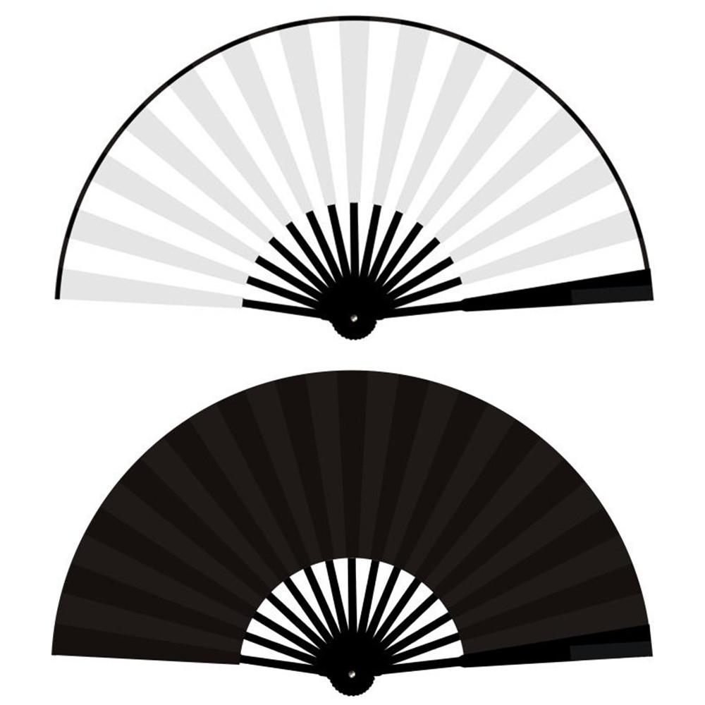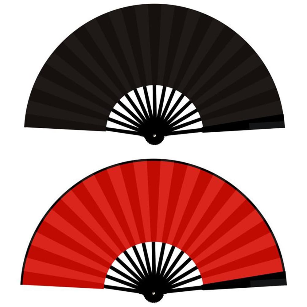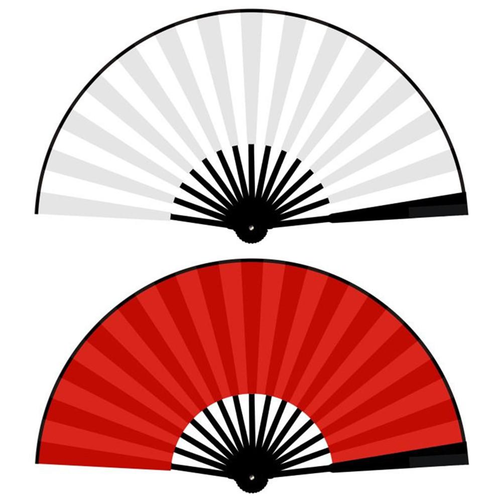 Abanico en blanco al por mayor borracho danza viento de primavera abanico plegable para presentación 8 pulgadas 10 pulgadas Viento rojo blanco y negro de doble cara dos colores abanico de tela de seda