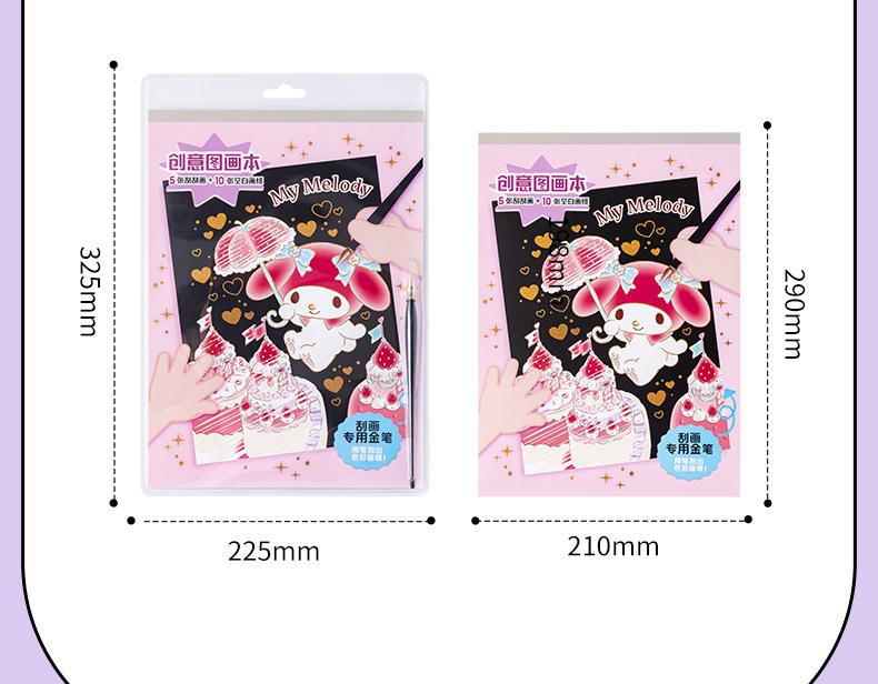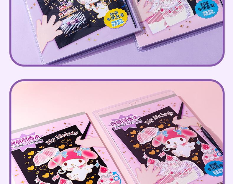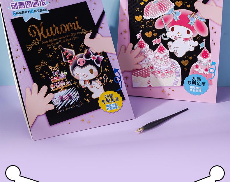 Iigen one es un libro de imágenes de papelería de Sanrio para niños, libro de imágenes para rascar con pintura para rascar, arte de grafiti creativo, libro para rascar.