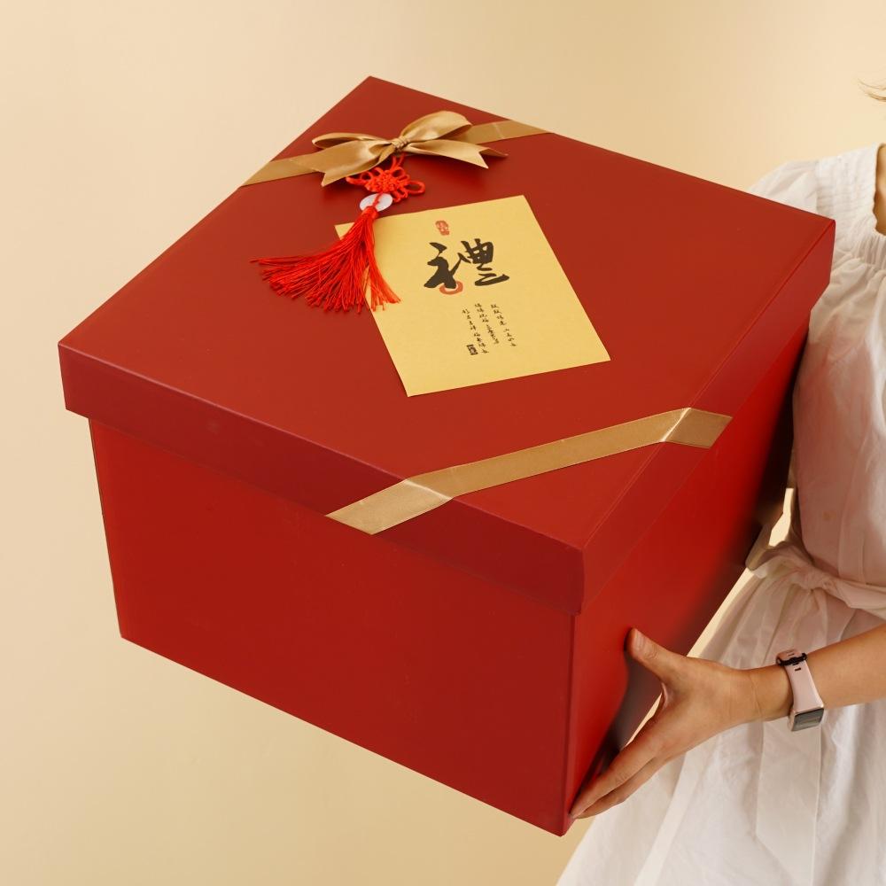 Caja de regalo roja, caja vacía, cuadrada, grande, con número, para regalo de cumpleaños, caja de regalo festiva