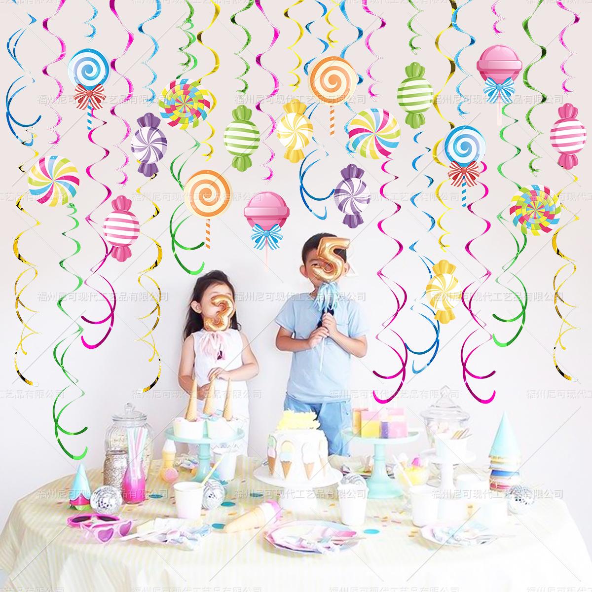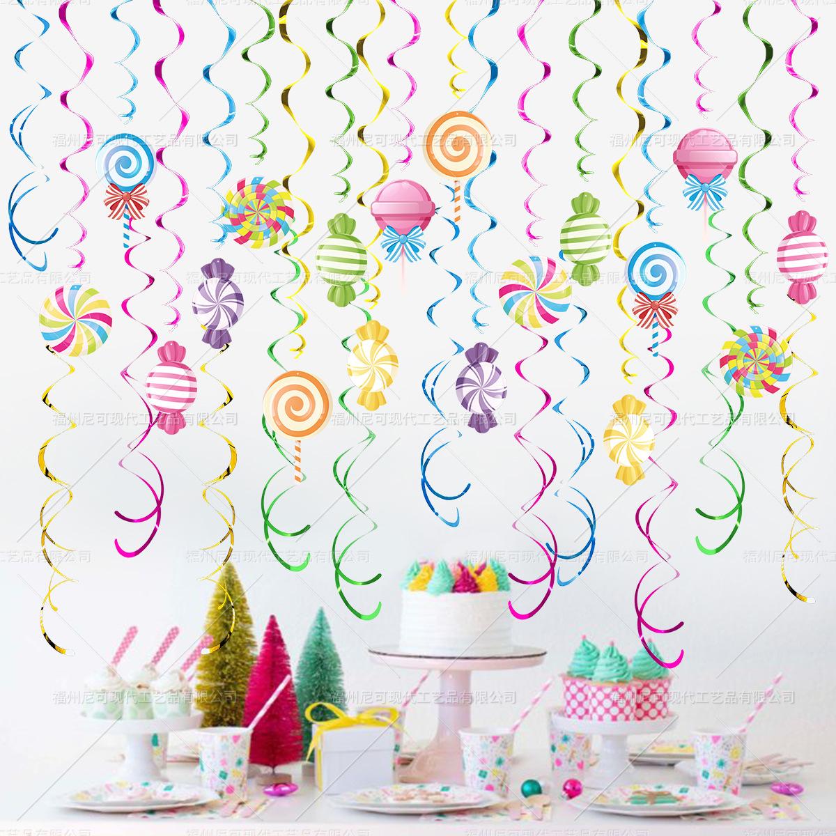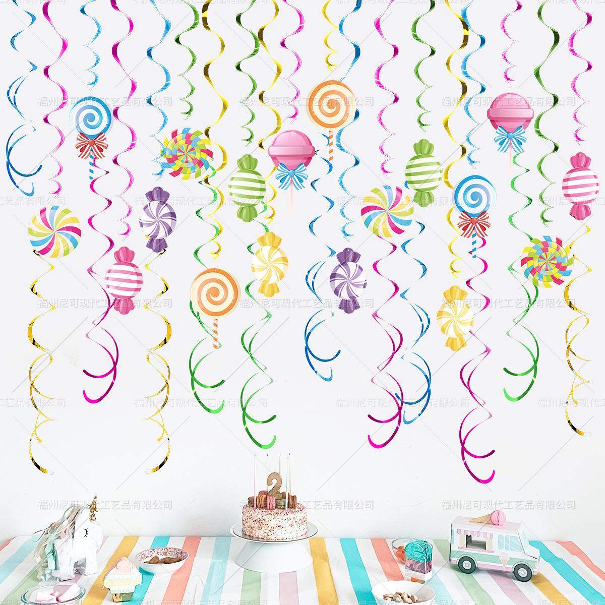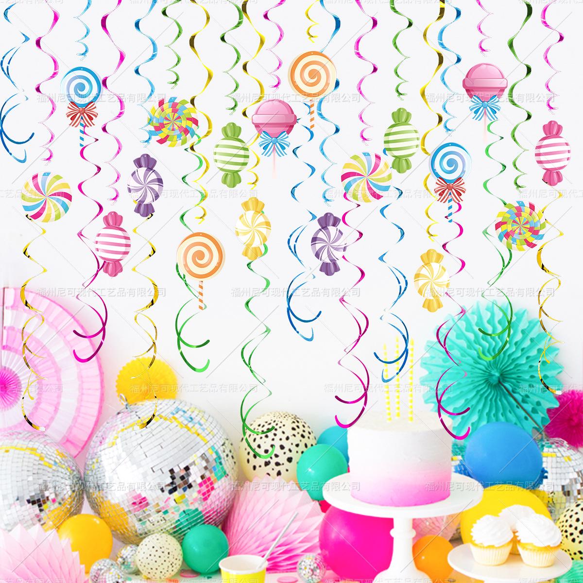 Adornos Espirales de Fiesta de Dulces Cumpleaños Infantil Tema Piruleta de Color Decoraciones Colgantes de Cinta en Espiral