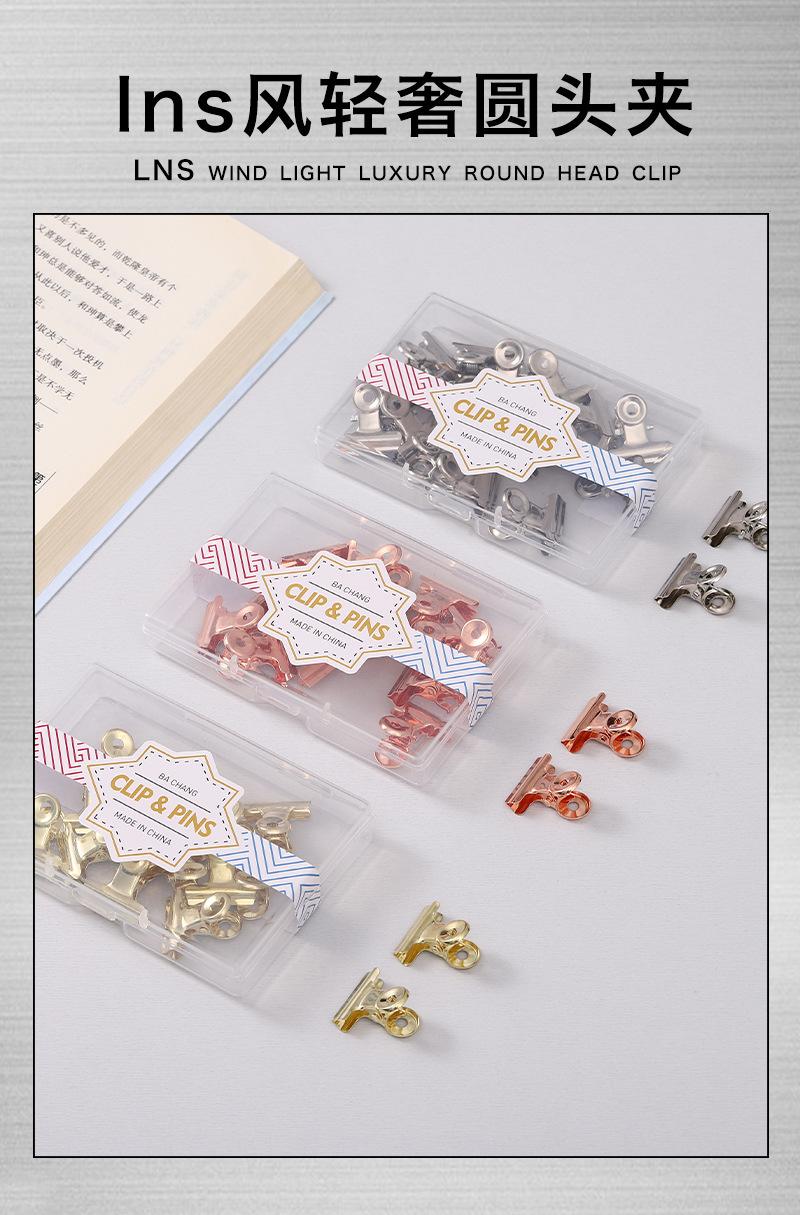 | Suministro directo transfronterizo de clip de papel de color macarrón, papelería creativa de oficina, combinación de chincheta dorada, clip de cabeza redonda, juego de papelería |