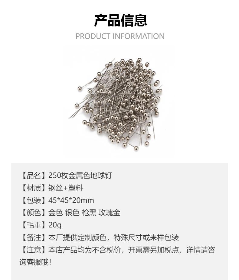 Transfronterizo 250 piezas/caja color metal aguja Tierra 4 * 15 mm oficina tablero de corcho chincheta fija venta al por mayor de fábrica
