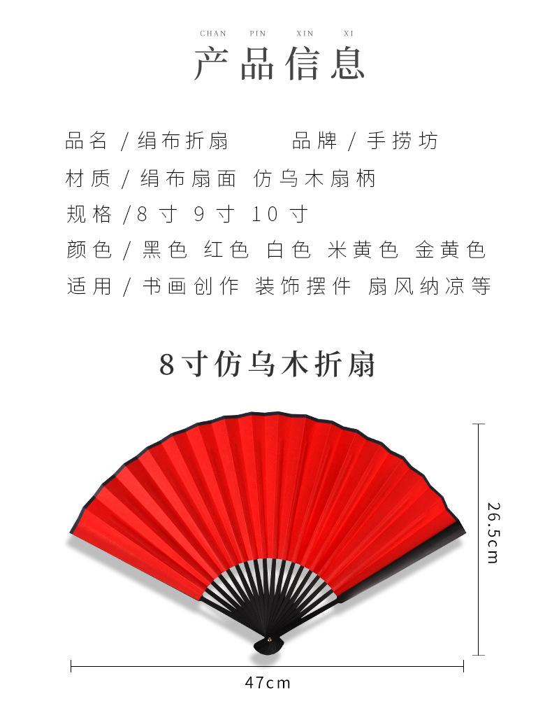 Abanico Plegable de Seda 8/9/ 10 pulgadas Impermeable y Resistente al Desgaste Caligrafía Plegable Estilo Antiguo Estilo Chino Rojo Negro Amarillo Abanico en Blanco Venta al por Mayor