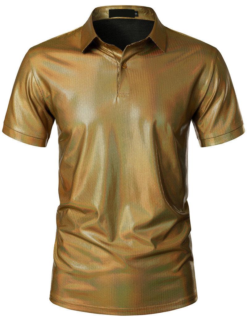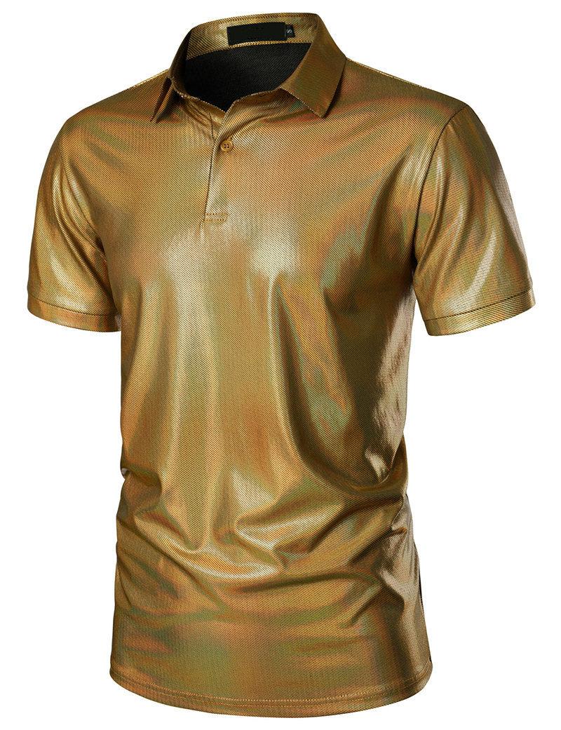 2024 verano nuevo Europeo y Americano Amazon transfronterizo ropa belleza dorada estampada solapa manga corta camiseta POLO
