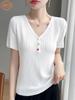 Cárdigan de punto de manga corta con cuello en V y mangas cortas con diseño de verano para mujer, moderno, adelgazante, combinable con todo, de botonadura sencilla