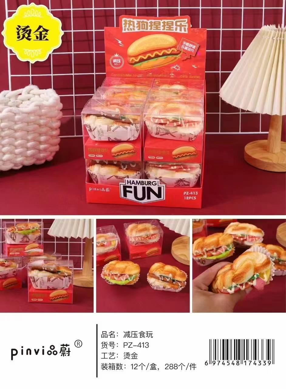 Pz-412 hamburger pinch fun, Pz-413 hot dog pinch fun, Pz-471 simulated croissant, Pz-475 simulated strawberry ...