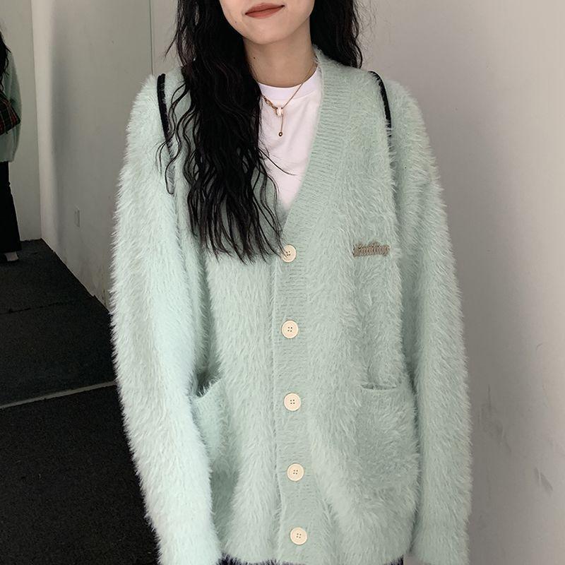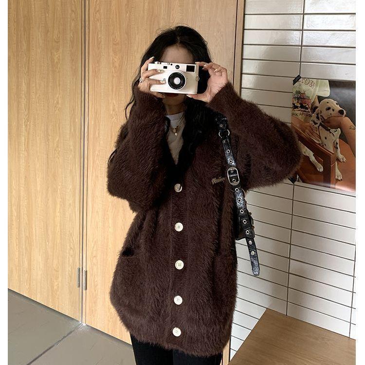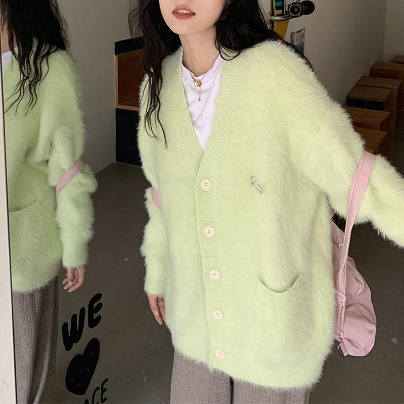 Suéter de Terciopelo de Visón Imitación de Estilo Suave y Perezoso Chaqueta de Punto para Mujer Otoño e Invierno Nuevo Top Cárdigan Casual Holgado y Versátil