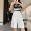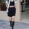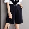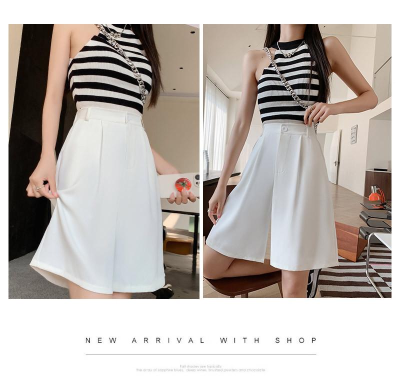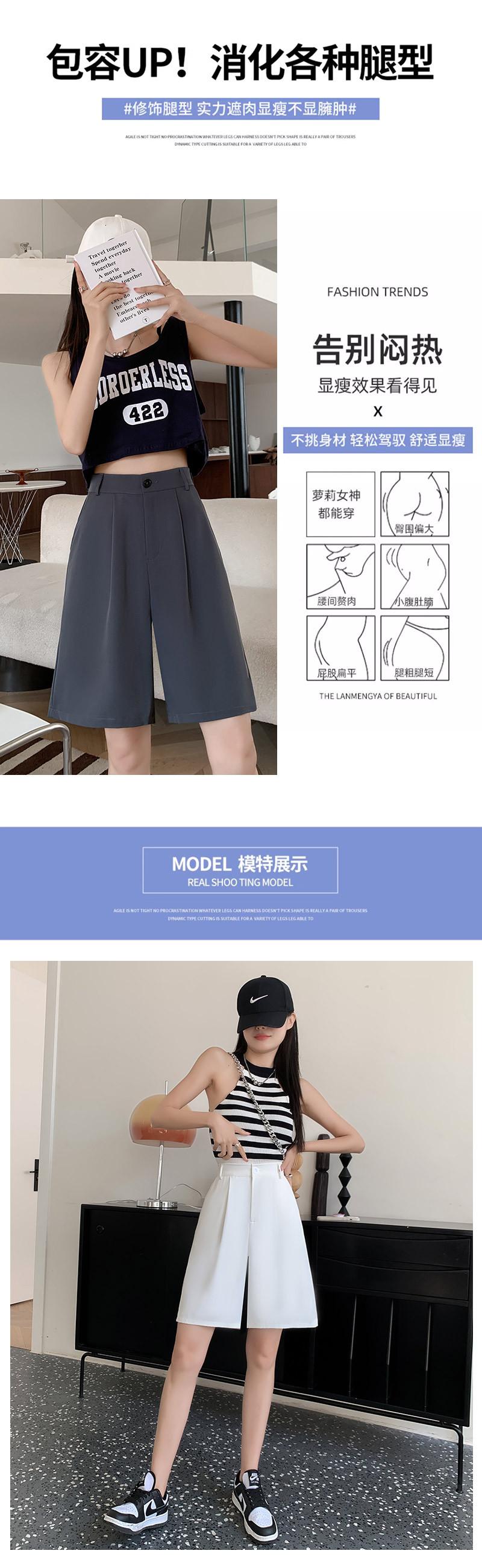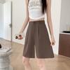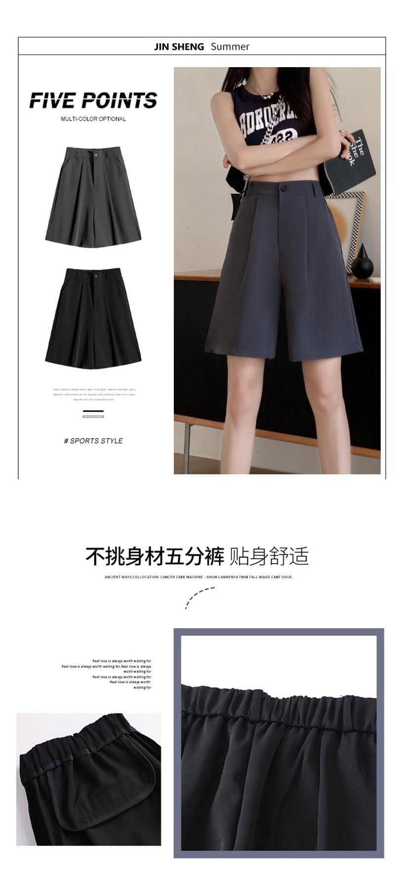 Pantalones cortos de traje gris para mujer, de verano, finos, de cintura alta, adelgazantes, holgados, informales, de pierna ancha, de seda de hielo, con forma de A