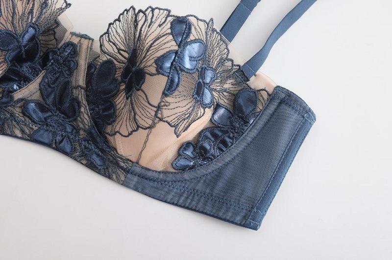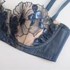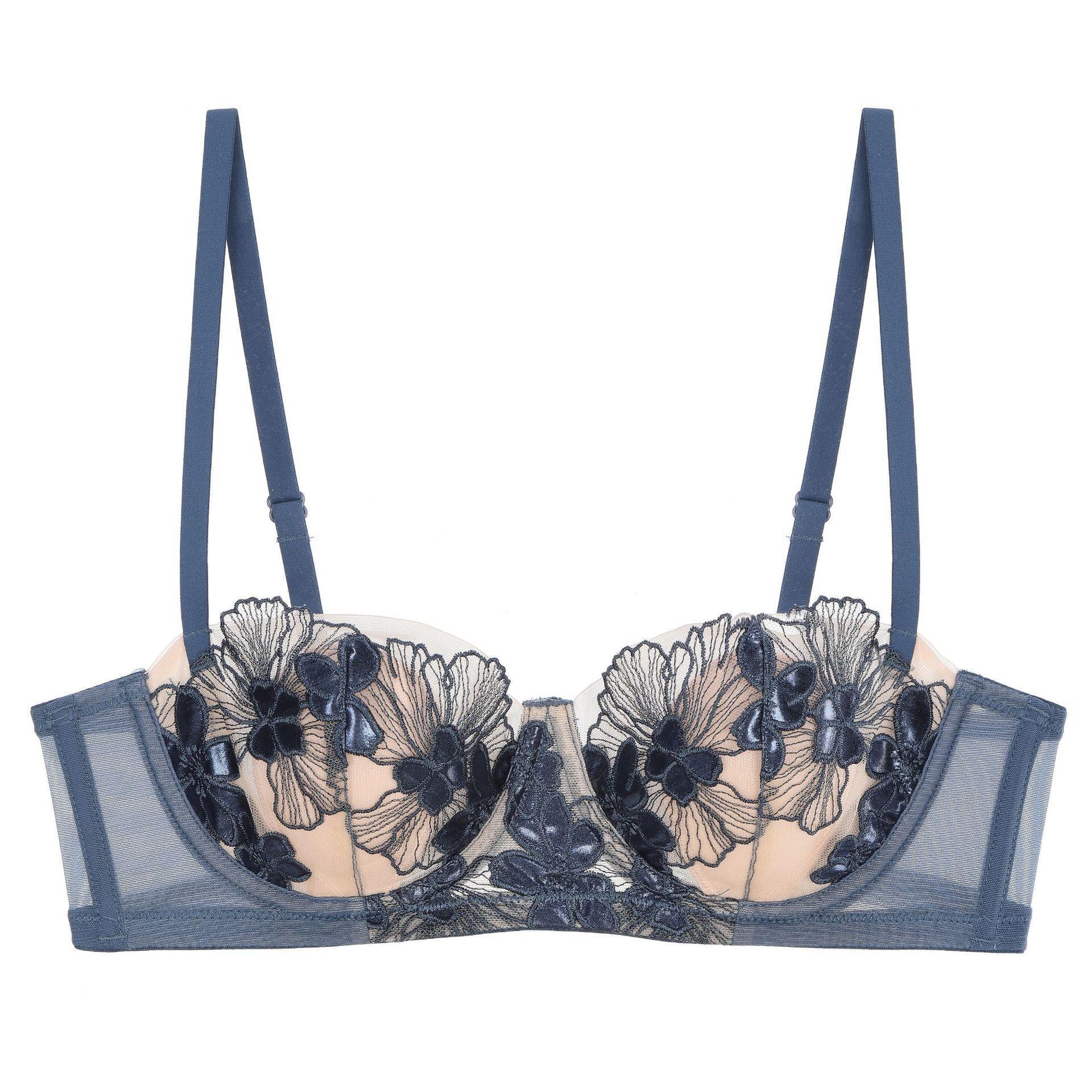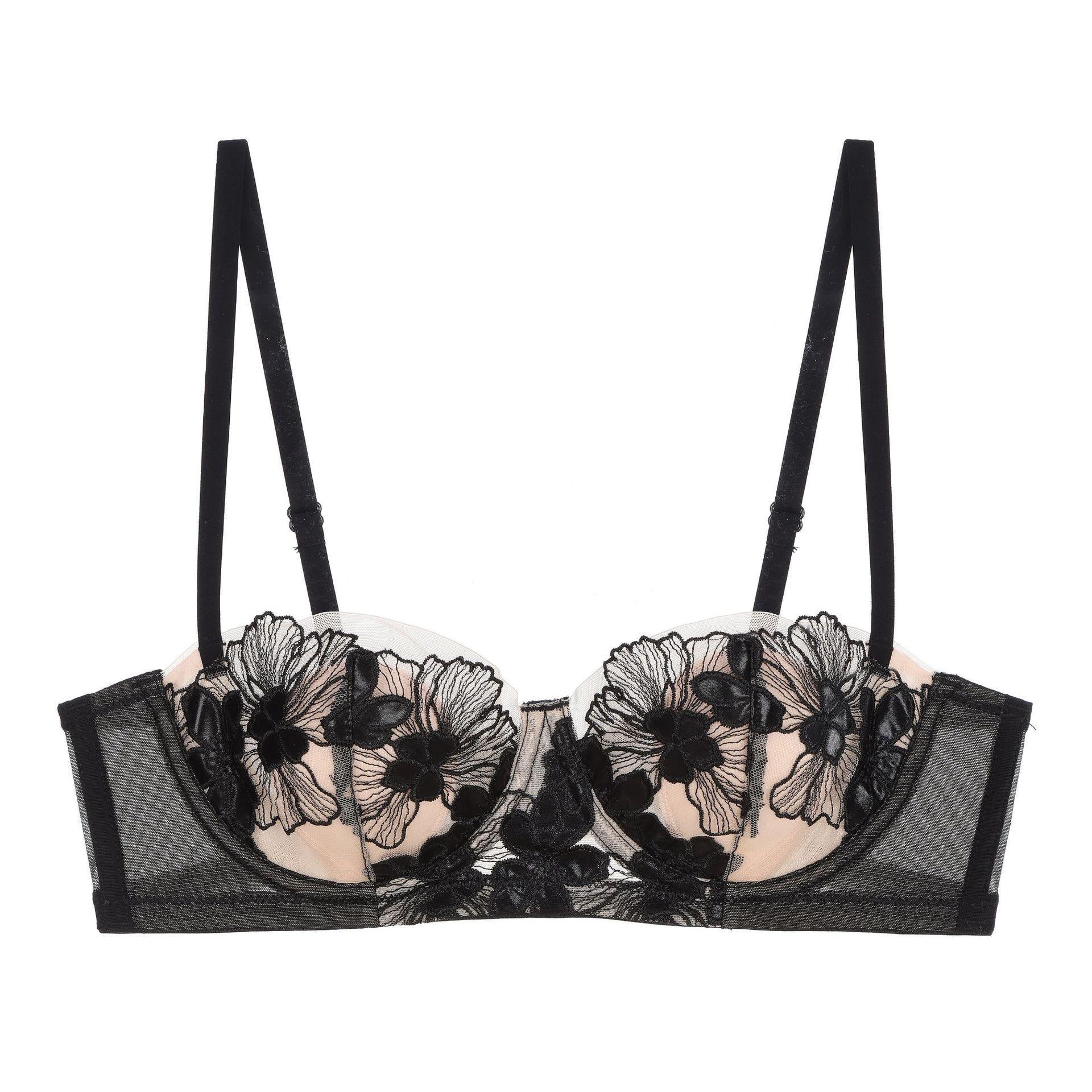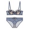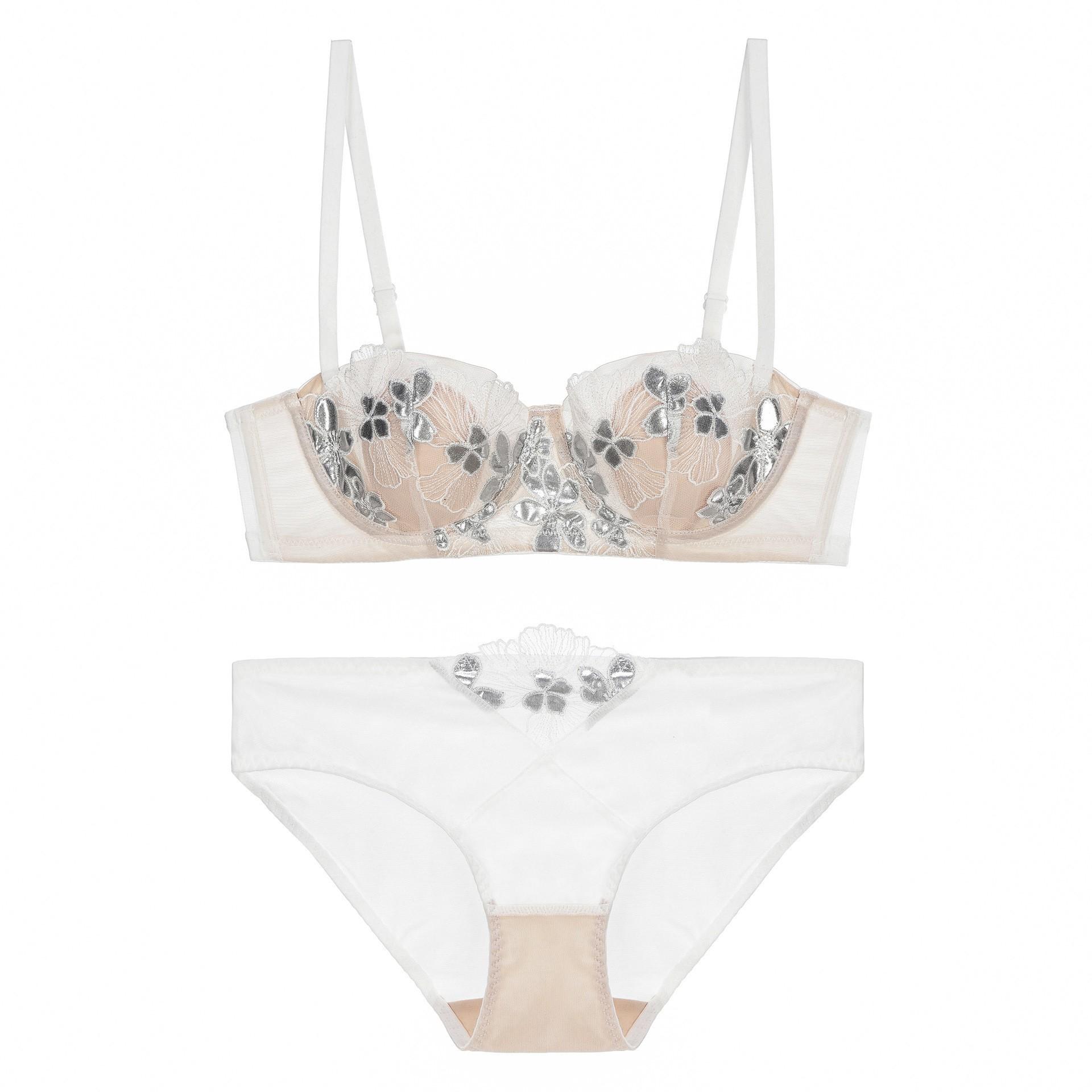 Ropa interior estilo francés, Femenina, Delgada, Copa con orejas de conejo, Ropa interior de encaje bordado, Pechos grandes, Set de brasier anti-flacidez