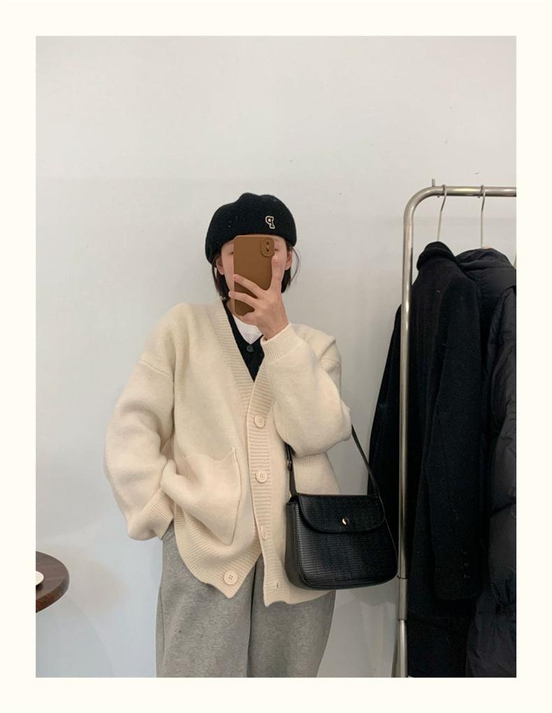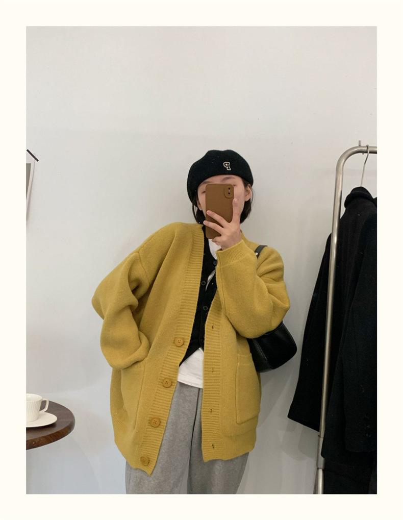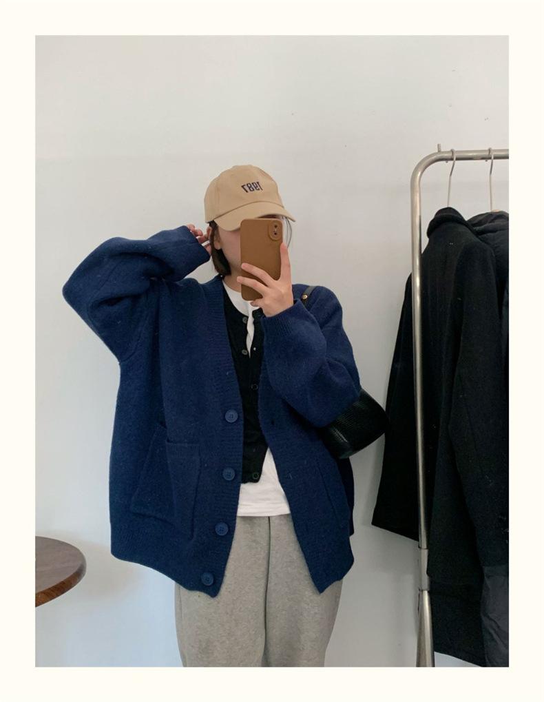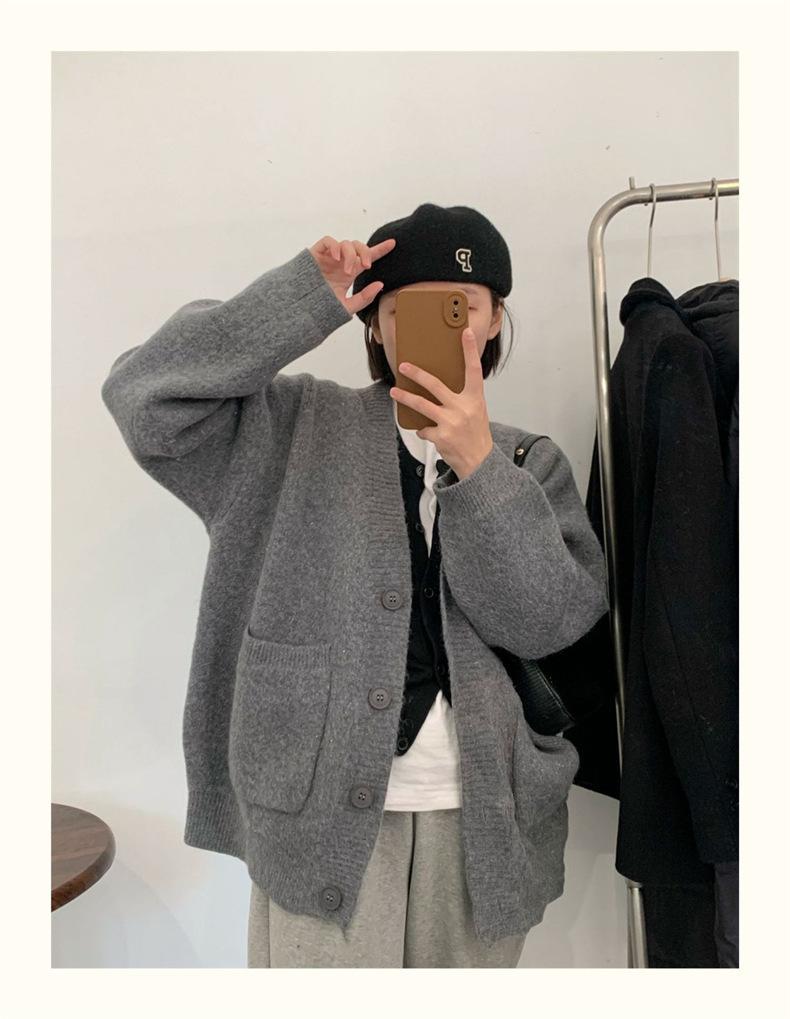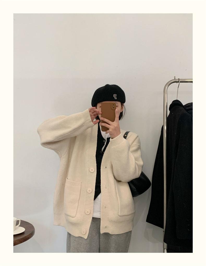 Cárdigan de punto para mujer, otoño e invierno, nuevo estilo holgado, con bolsillos grandes, estilo coreano, cuello en V, holgado, informal, ajustado, abrigo para mujer