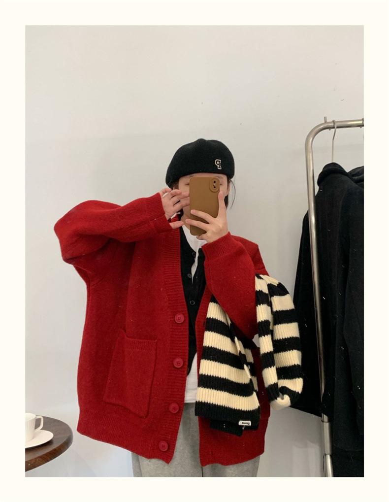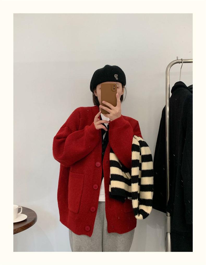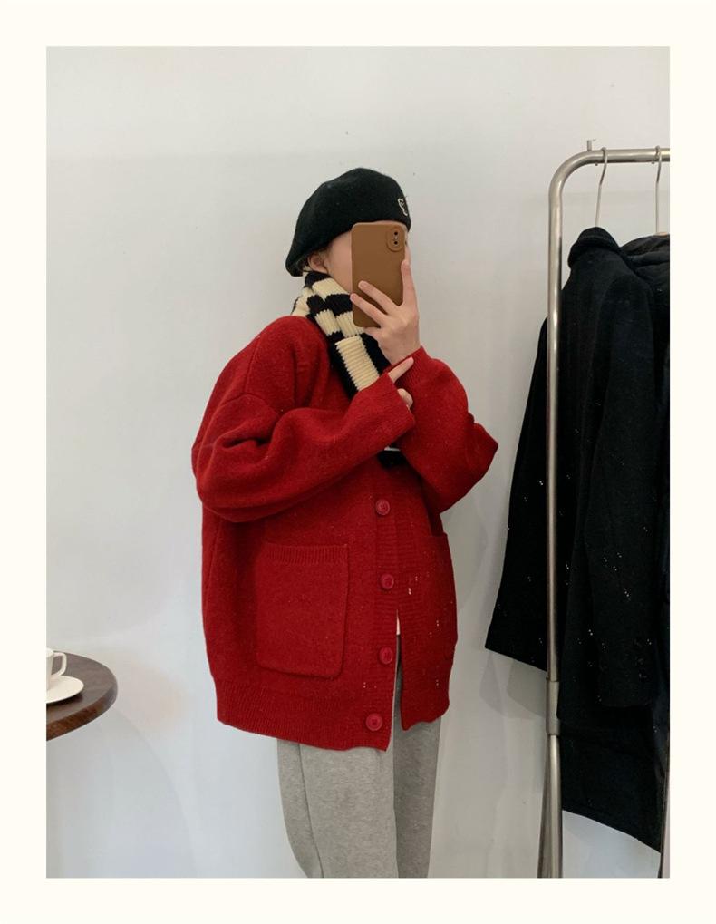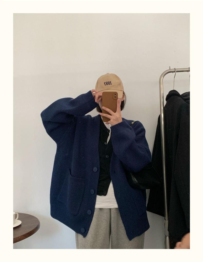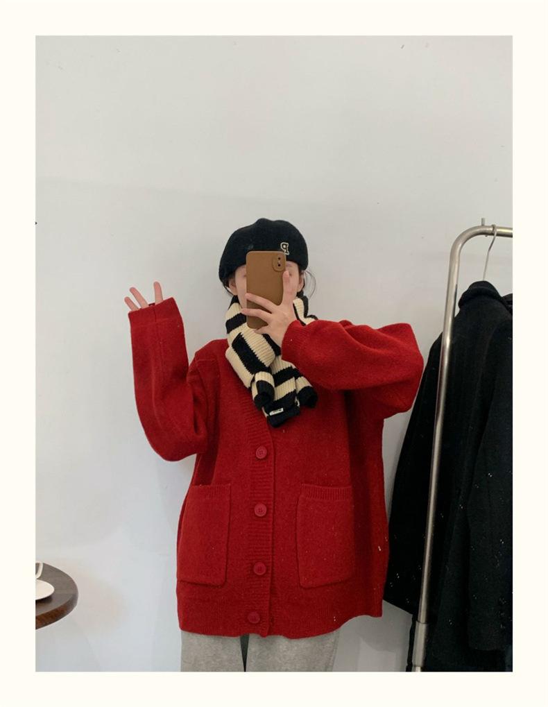 Cárdigan de punto para mujer, otoño e invierno, nuevo estilo holgado, con bolsillos grandes, estilo coreano, cuello en V, holgado, informal, ajustado, abrigo para mujer