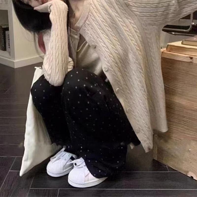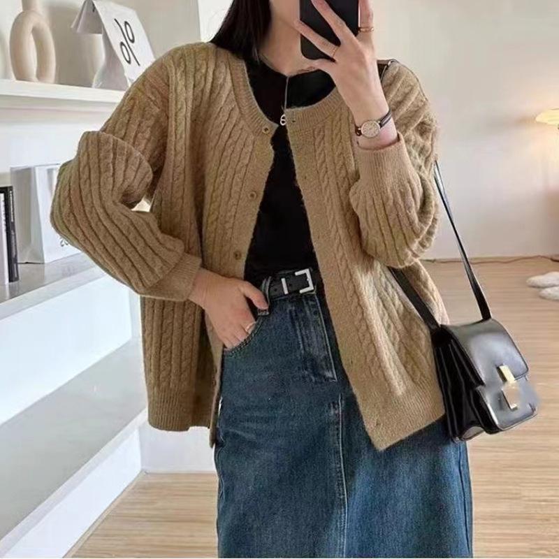 Cárdigan de punto de manga larga con giro suave y ceroso de estilo coreano para mujer, otoño e invierno, nuevo, holgado, adelgazante, elegante, de color sólido, para mujer