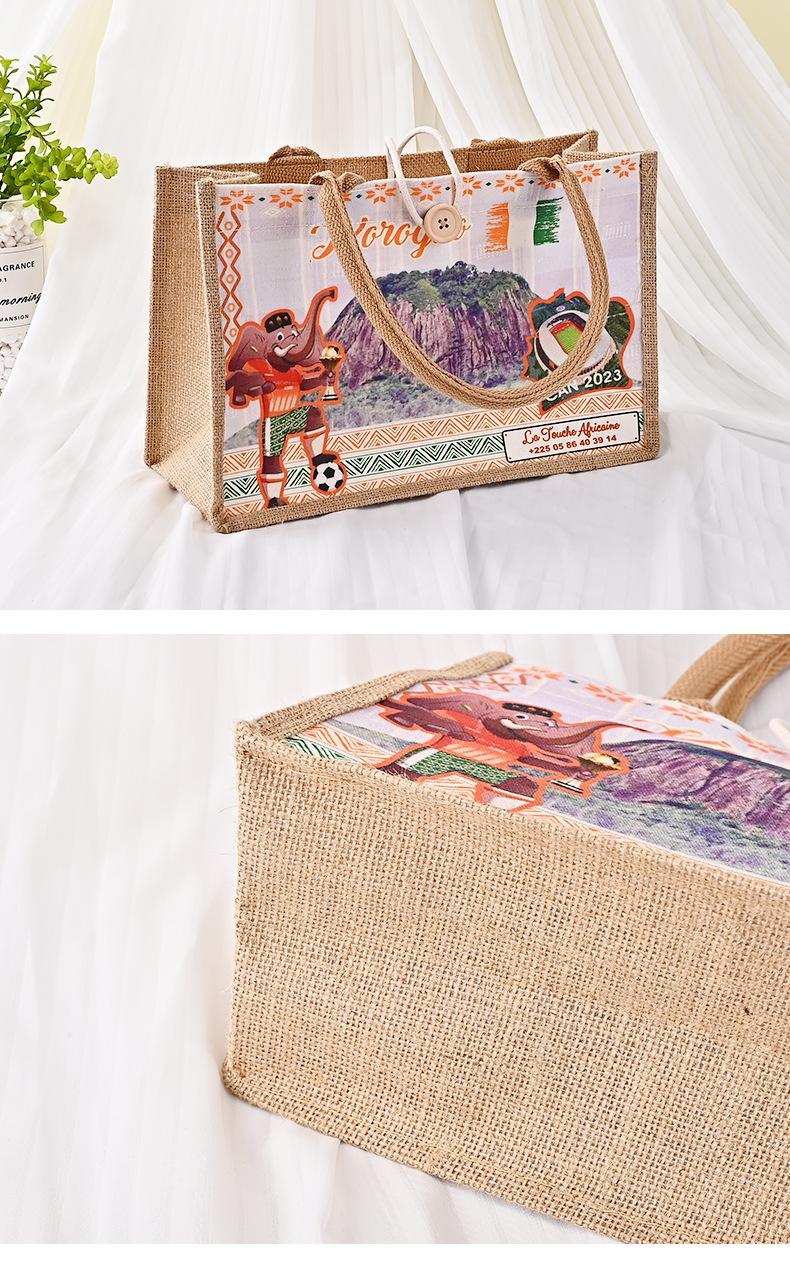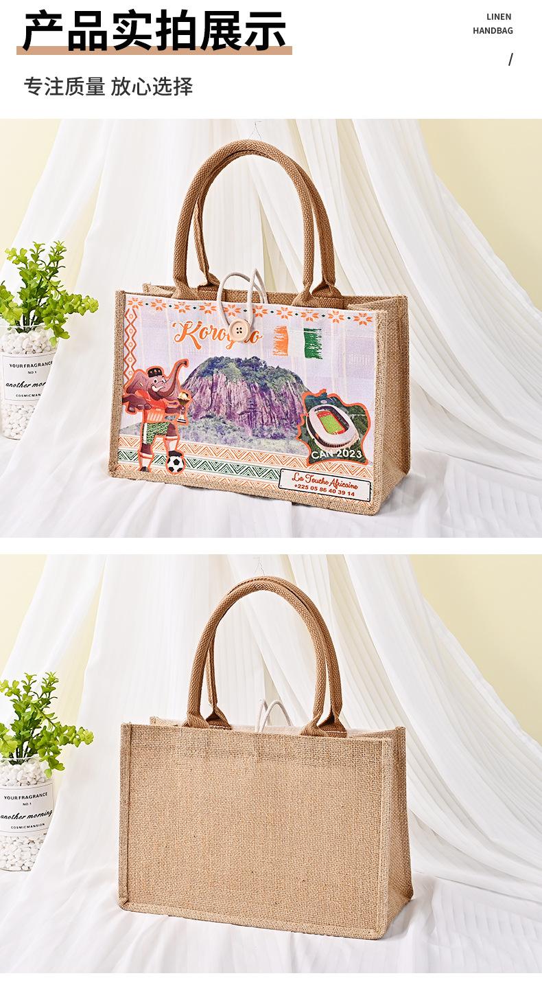 Publicidad venta al por mayor compras regalo bolsa de yute hebilla vintage bolsa de lino impresión bolsa de lino portátil logotipo personalizado