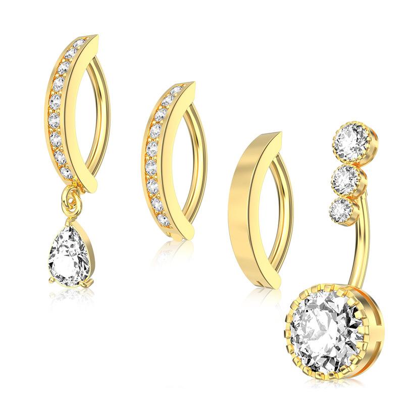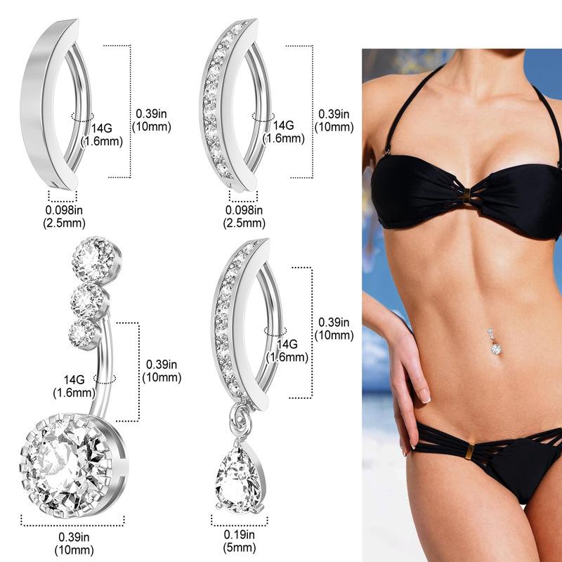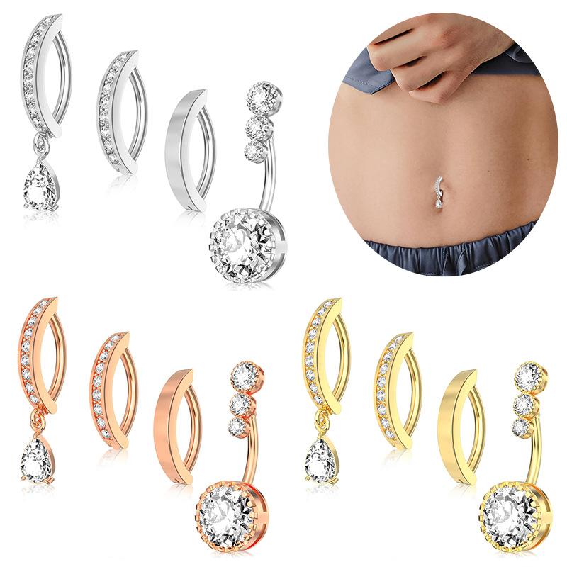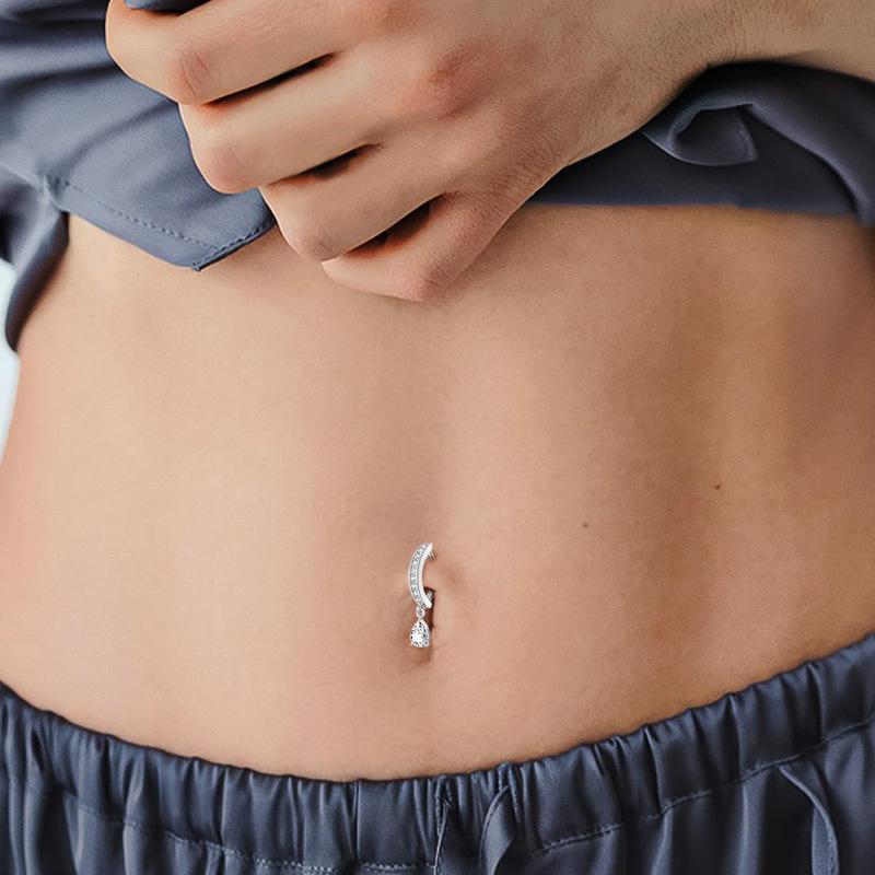 Anillo para el Ombligo Creativo Europeo y Americano de Zircón Gota de Agua Venta al por Mayor Flash Acero Inoxidable Moderno Versátil Piercing Colgante Joyería para Uña del Ombligo