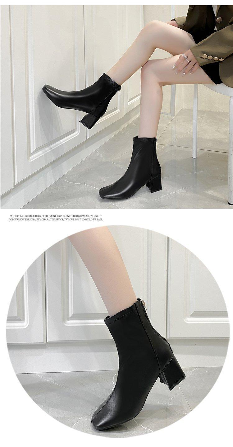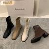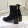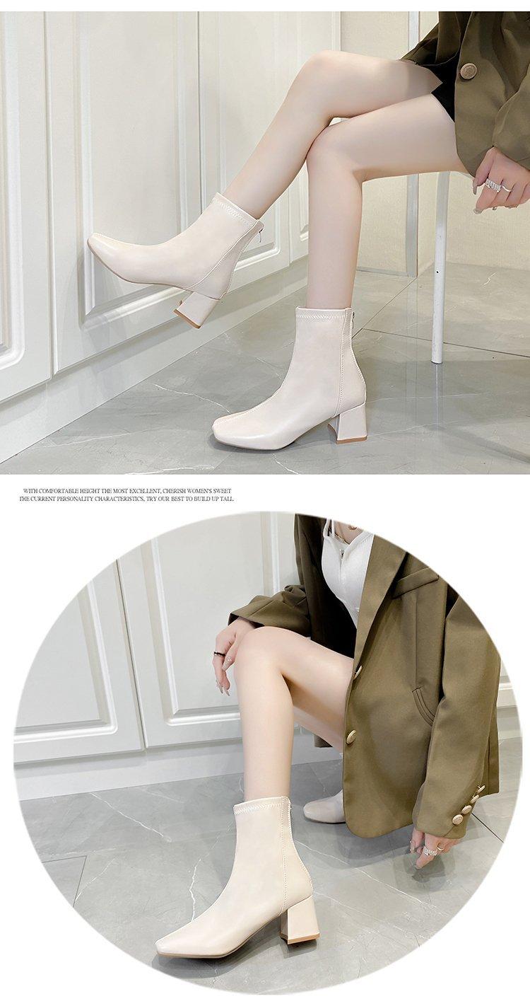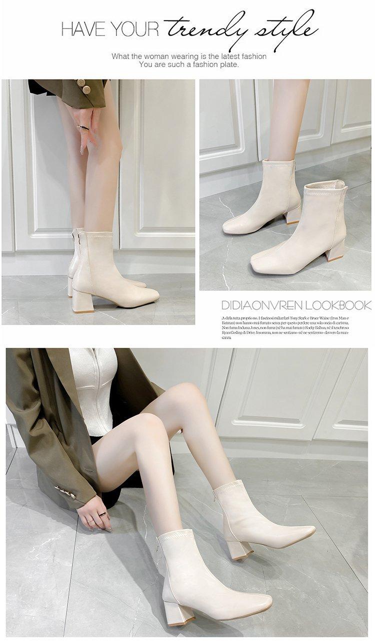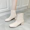 Botas Martin para mujer, otoño e invierno 2023, tacón alto, cremallera trasera, botas cortas finas, zapatos de mujer europeos y americanos de tacón grueso, punta cuadrada blanca alta para mujer