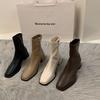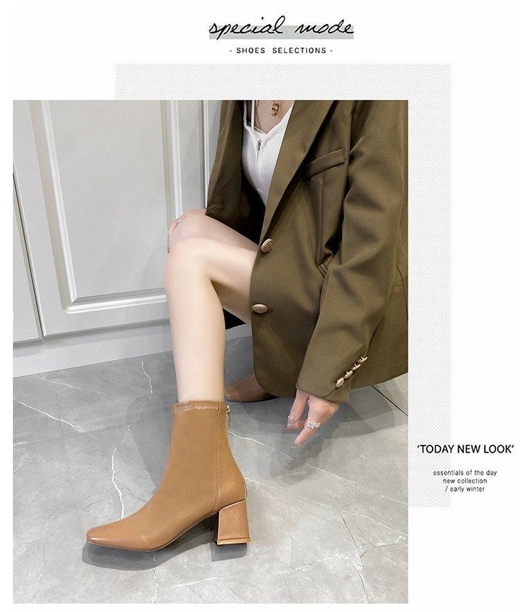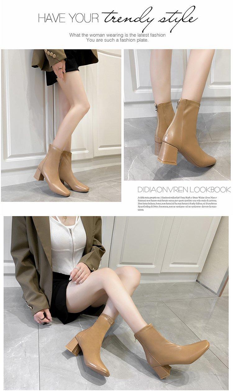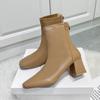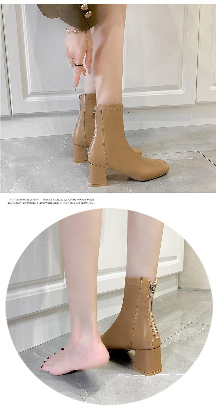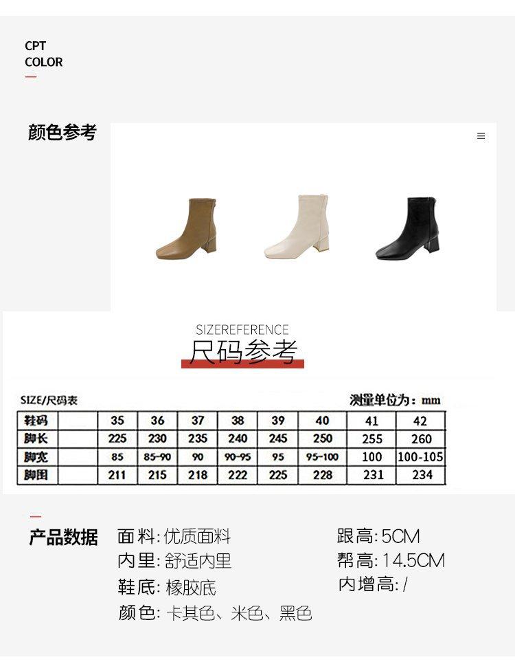 Botas Martin para mujer, otoño e invierno 2023, tacón alto, cremallera trasera, botas cortas finas, zapatos de mujer europeos y americanos de tacón grueso, punta cuadrada blanca alta para mujer