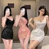 Vestido sexy de seda brillante elástica para discoteca, con hombros descubiertos, ajustado, de talla grande, de manga larga y cadera para mujer