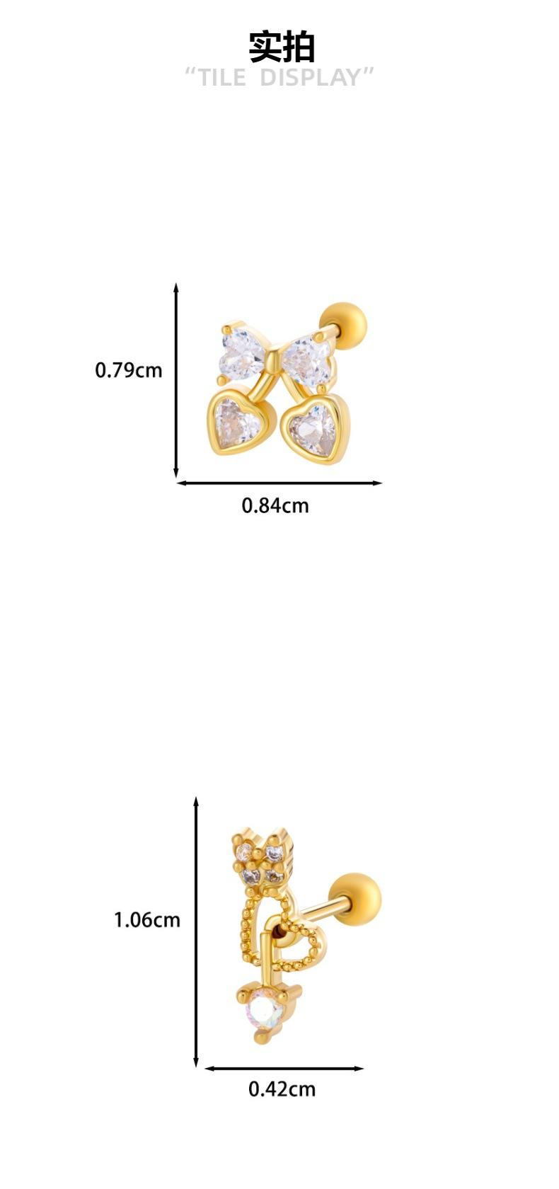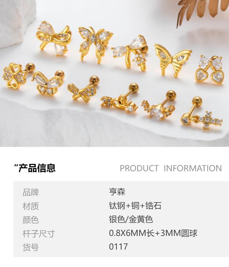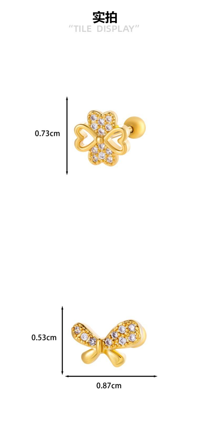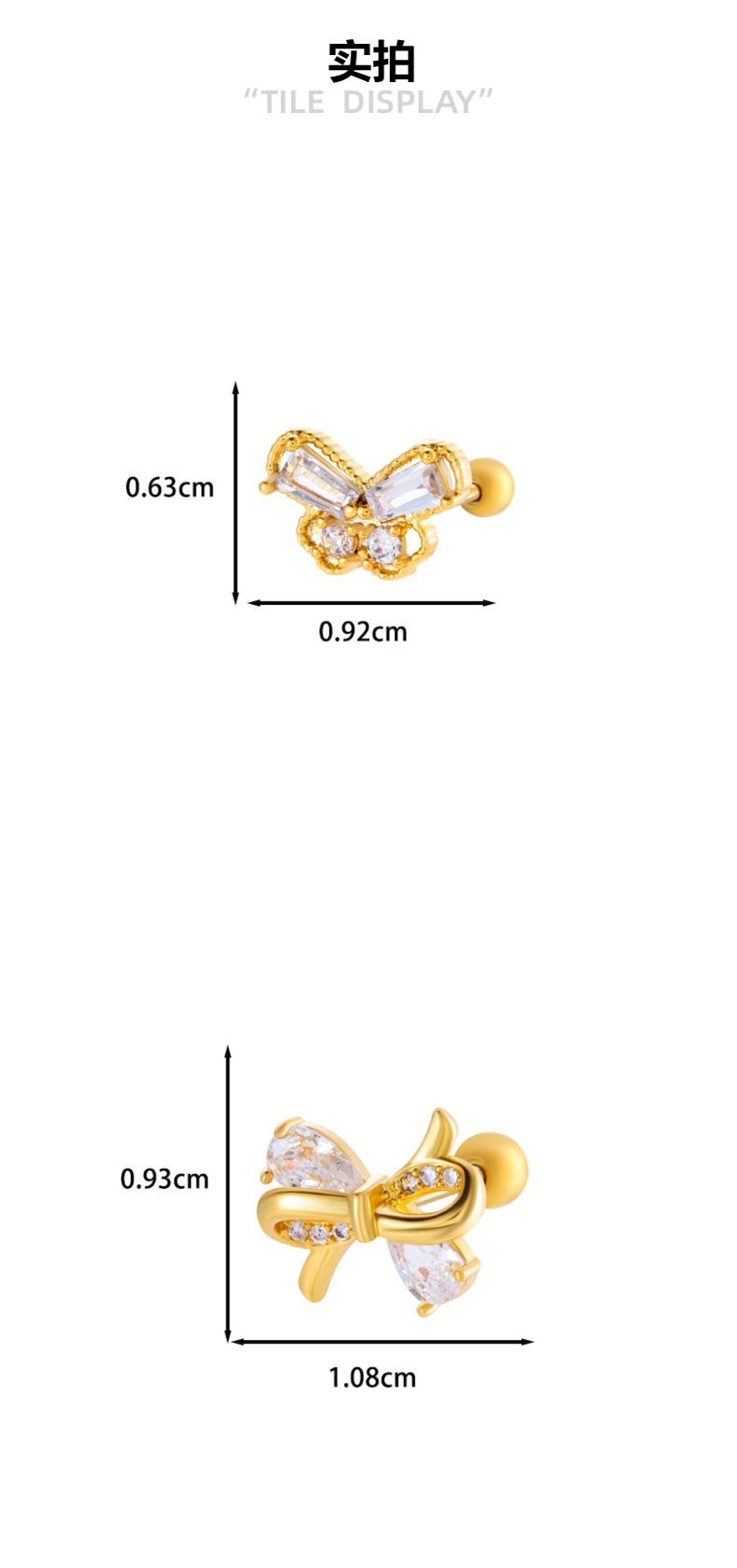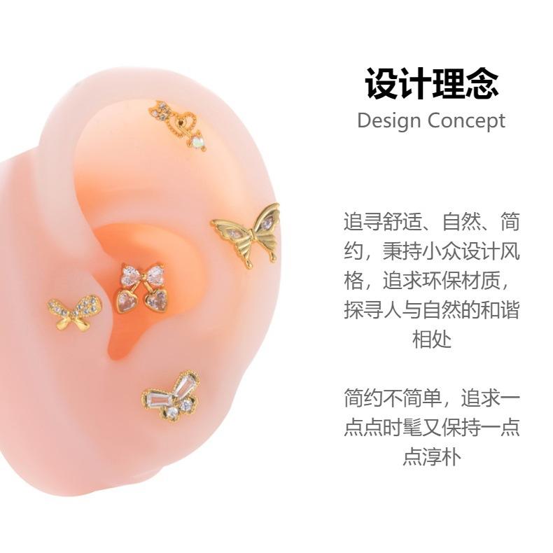Nuevo acero inoxidable con circonita incrustada de cobre, barra femenina con lazo de mariposa, amor, versátil, perforación de cartílago, clavo para hueso de la oreja