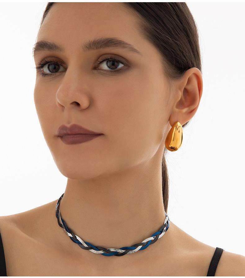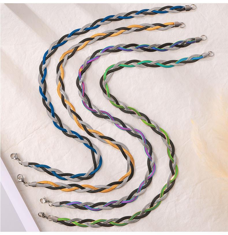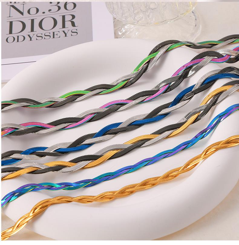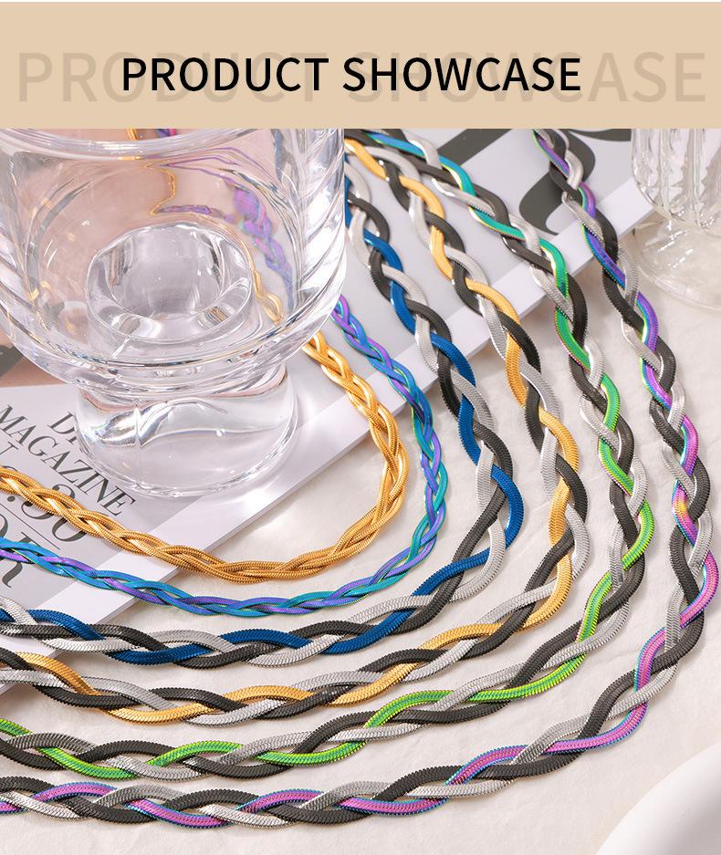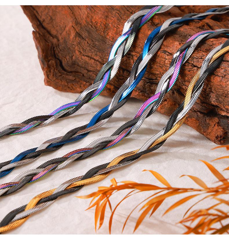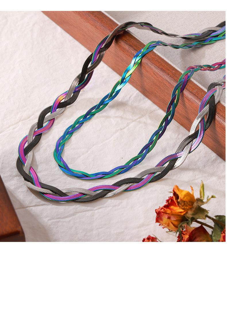 Cadena de serpiente Ins europea y americana, hoja colorida tejida, cadena de clavícula de acero de titanio chapada en oro, collar que combina con todo, conjunto de lujo ligero de moda para mujer