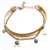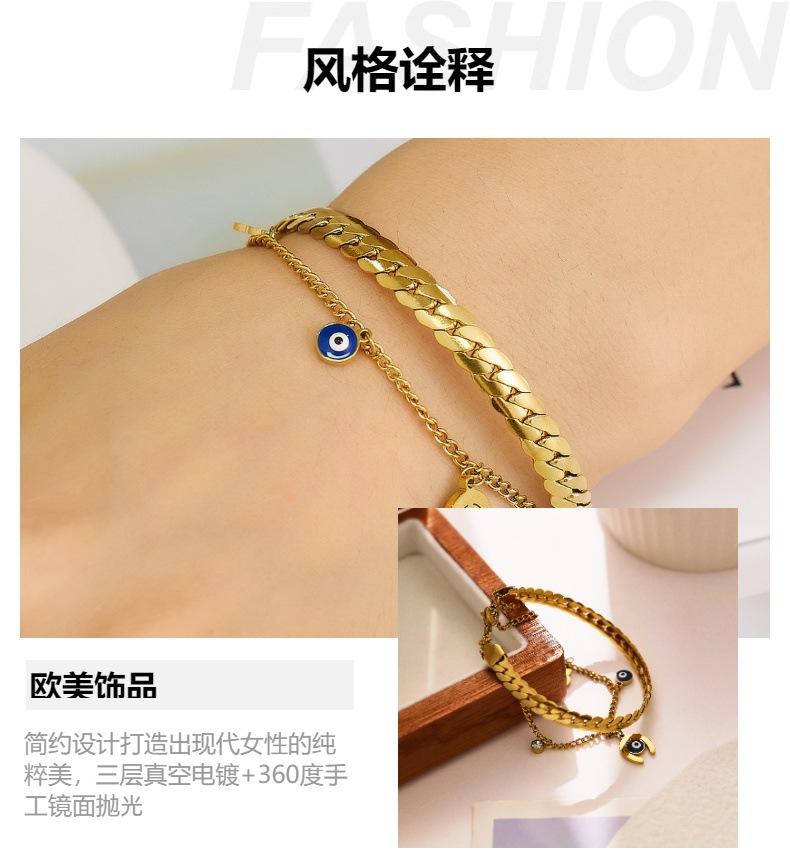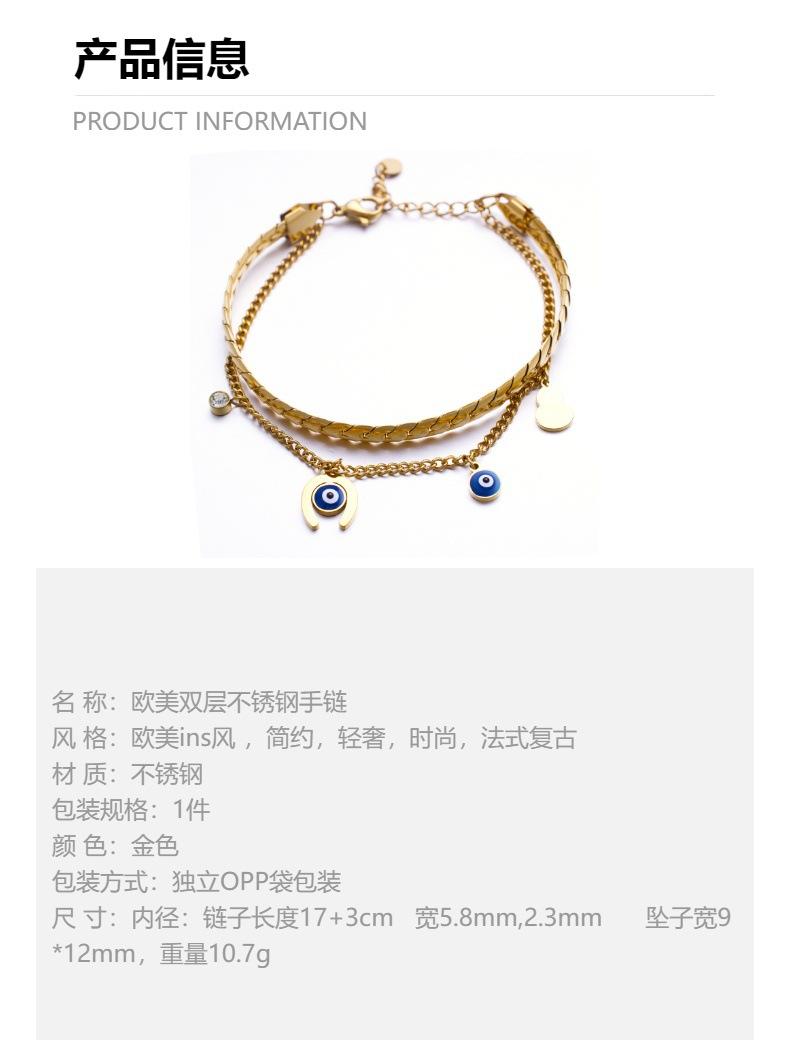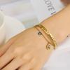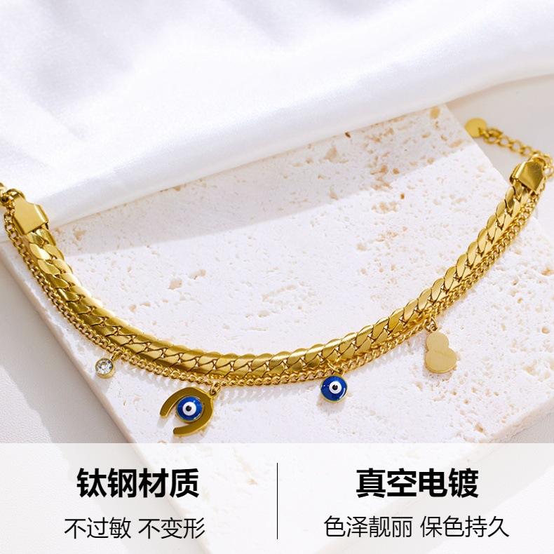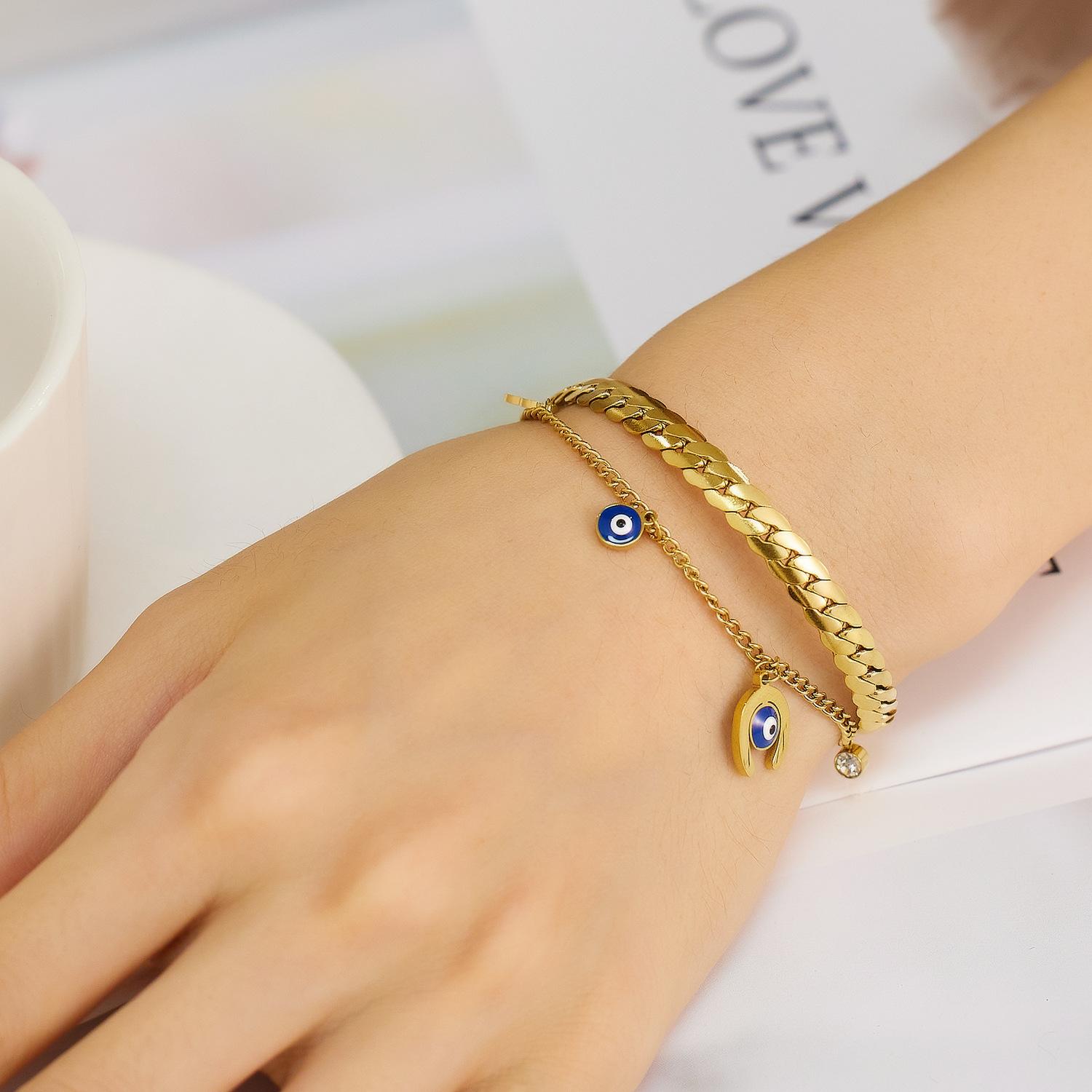 Pulsera de acero inoxidable estilo europeo y americano, chapada en oro de 18 quilates, con doble cadena y colgante de ojo con aceite que gotea, pulsera de acero de titanio.