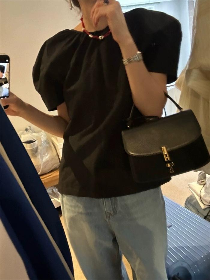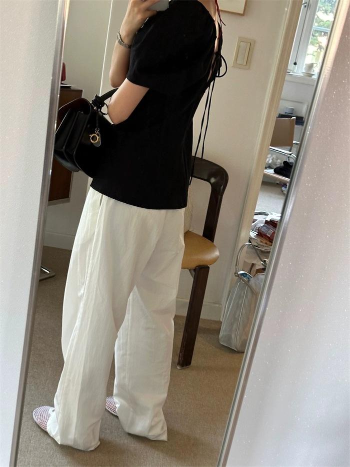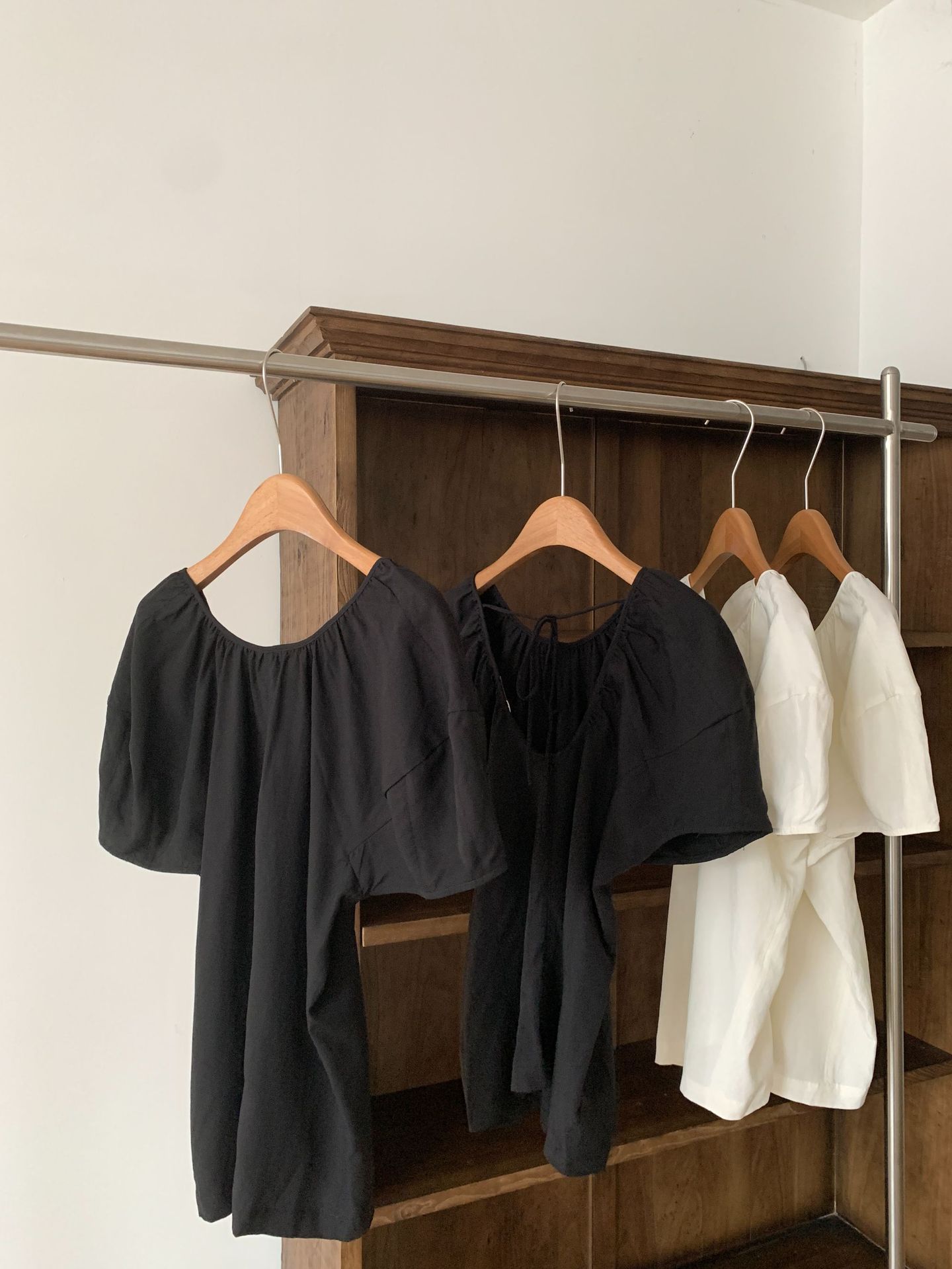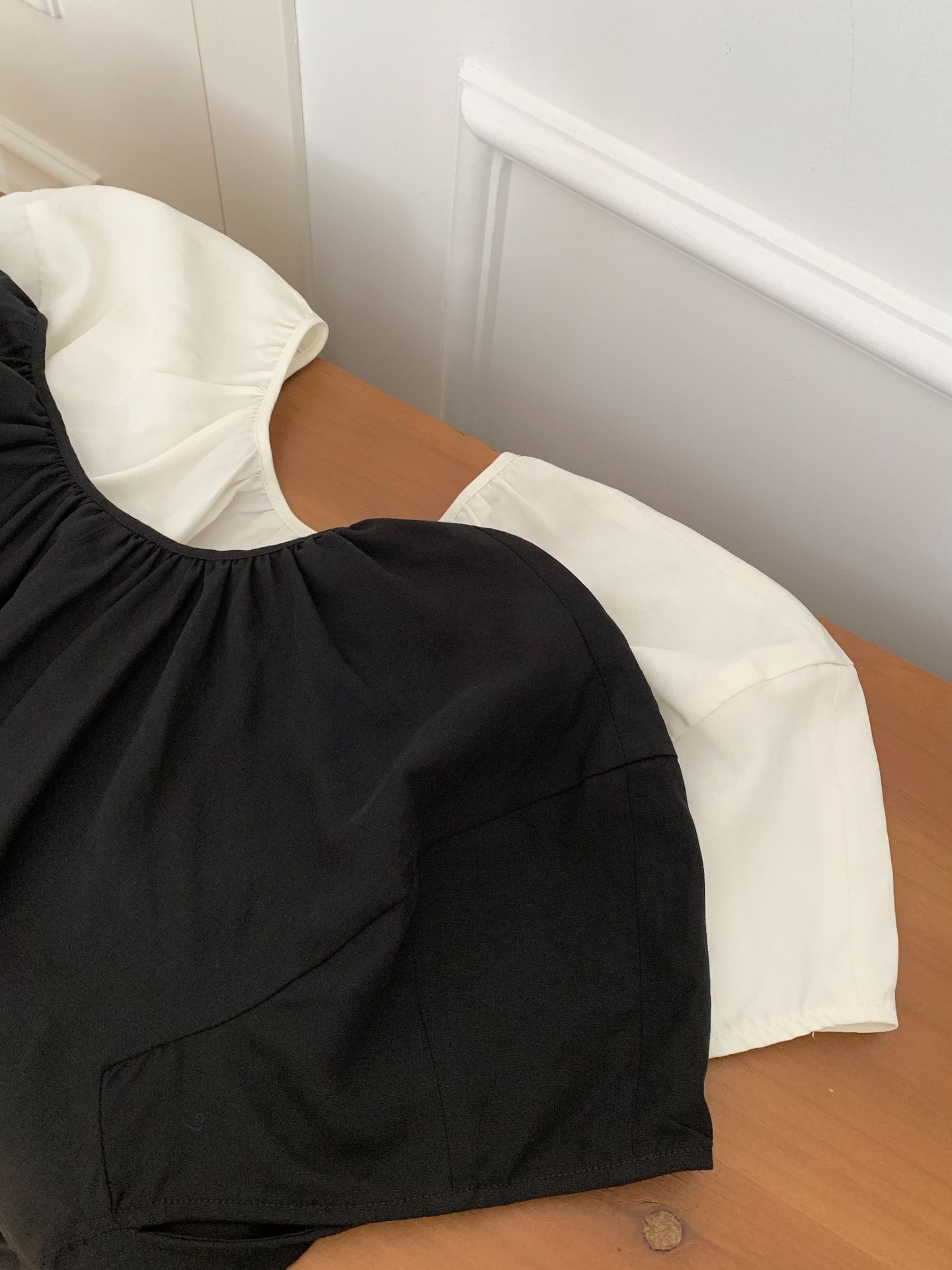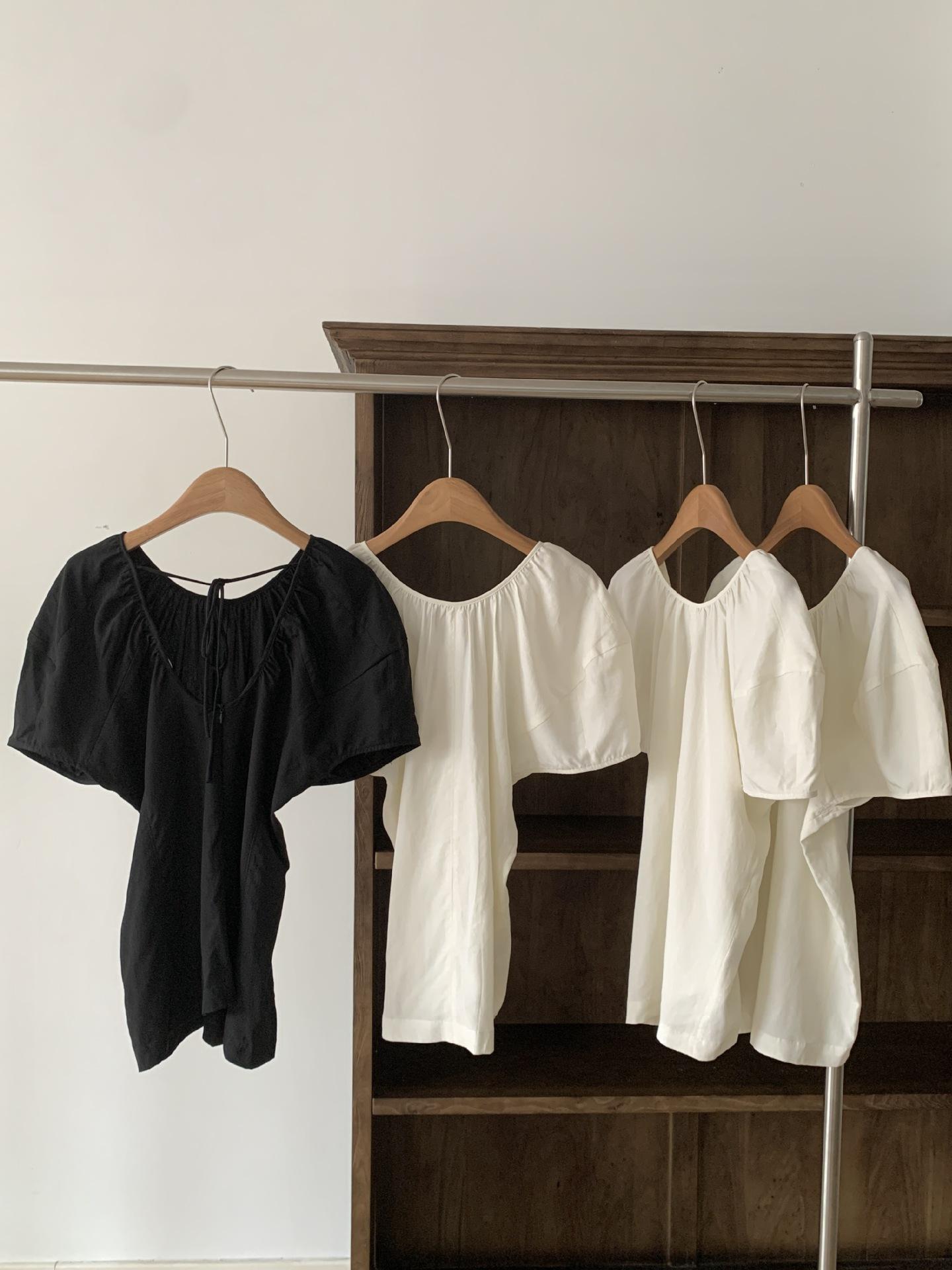 Sin Devoluciones ni Cambios, Liquidación 2025 Nuevo Verano Coreano Dongdaemun Ri*Bonbit Camisa de Encaje con Cordones en la Espalda sin Espalda de Manga Corta