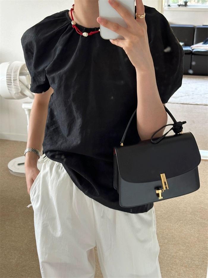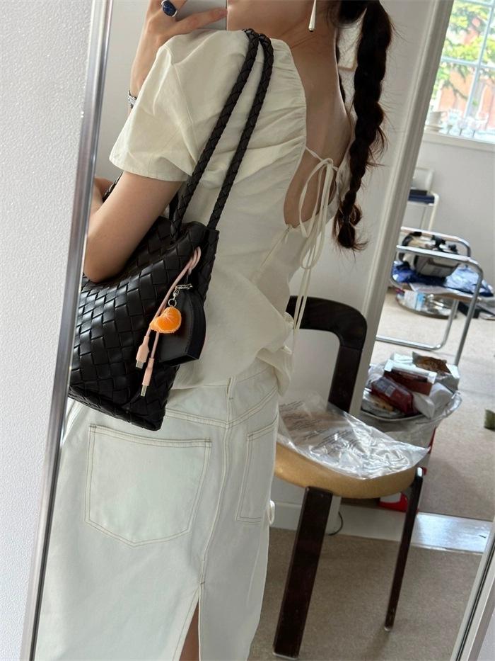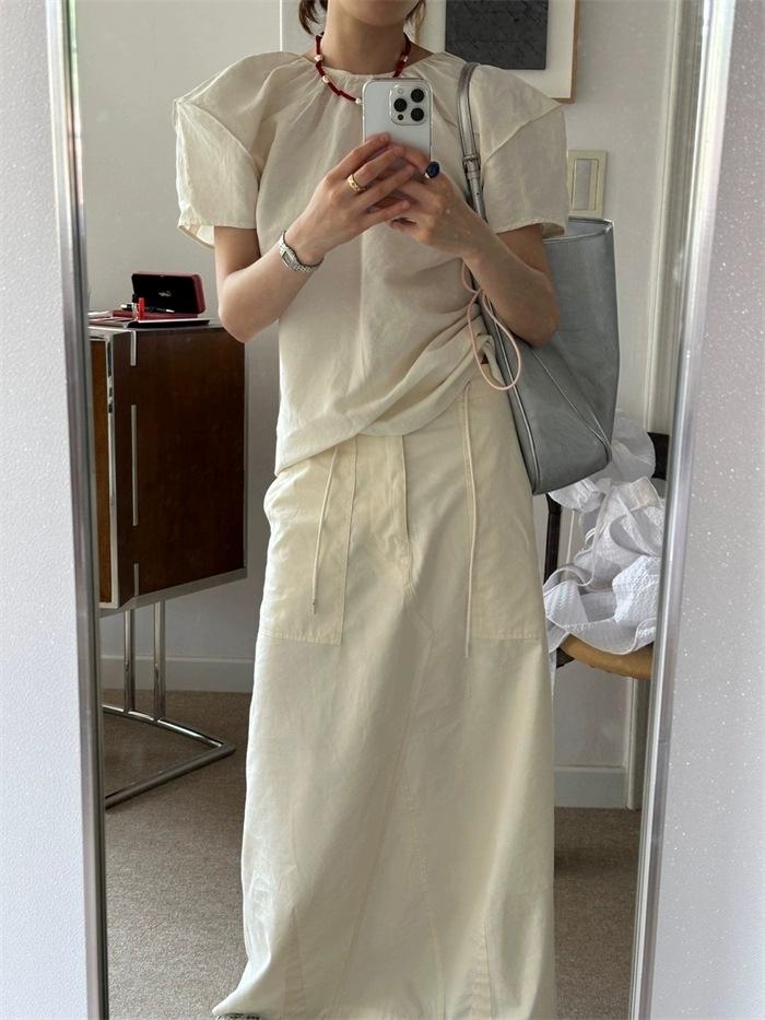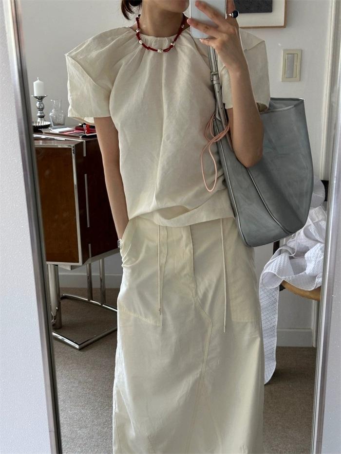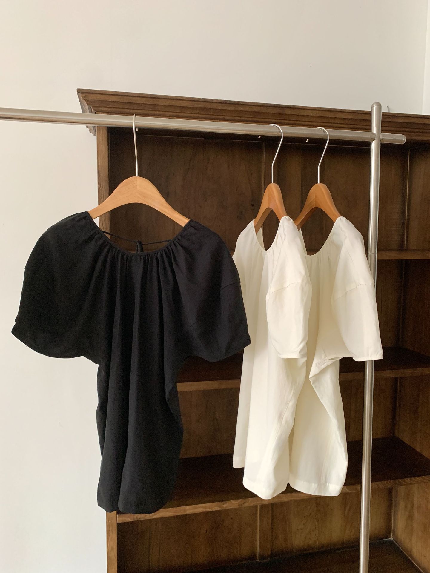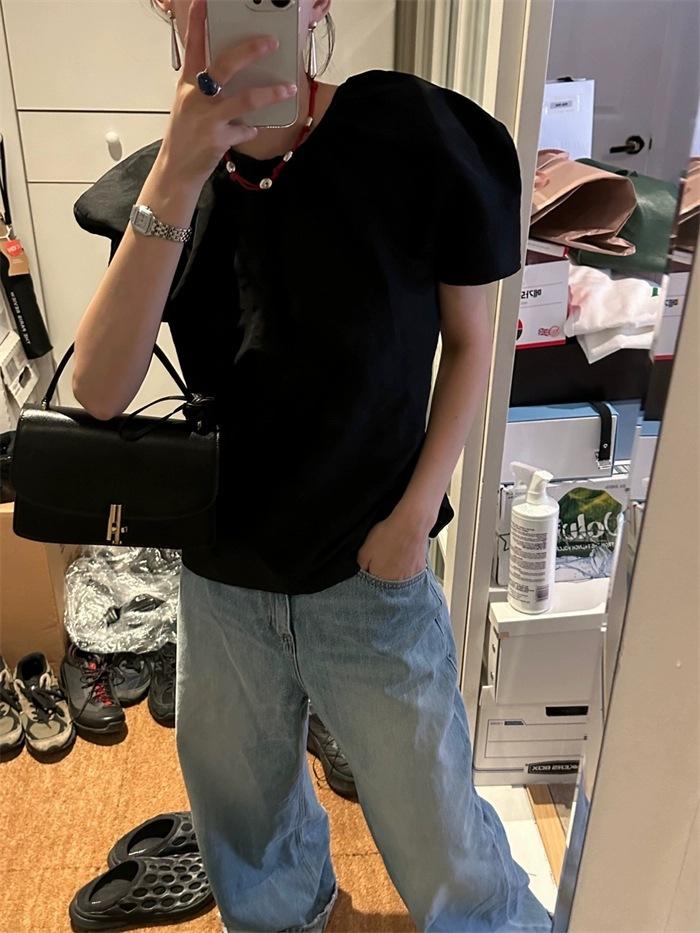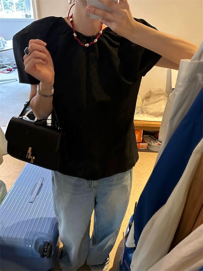 Sin Devoluciones ni Cambios, Liquidación 2025 Nuevo Verano Coreano Dongdaemun Ri*Bonbit Camisa de Encaje con Cordones en la Espalda sin Espalda de Manga Corta