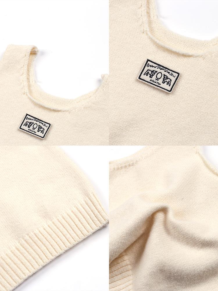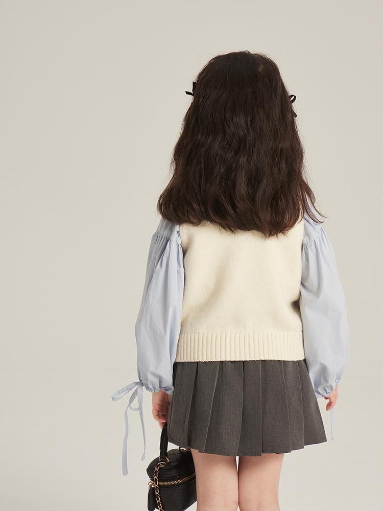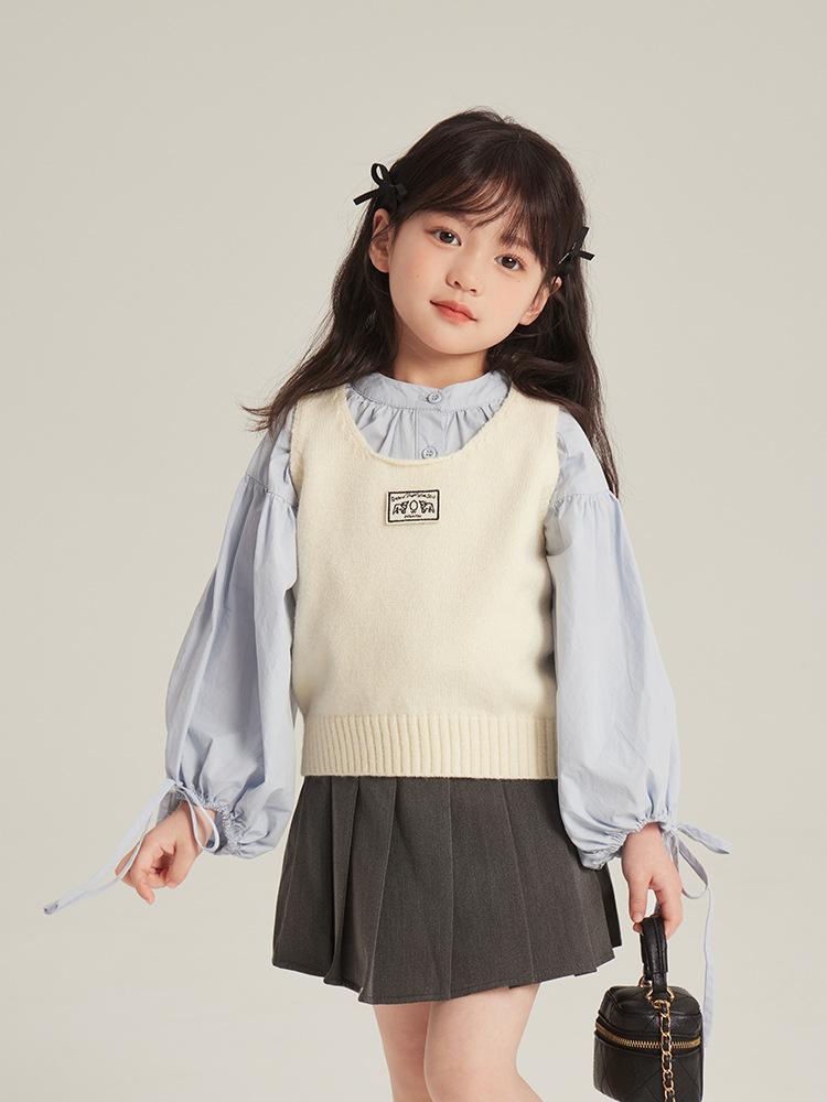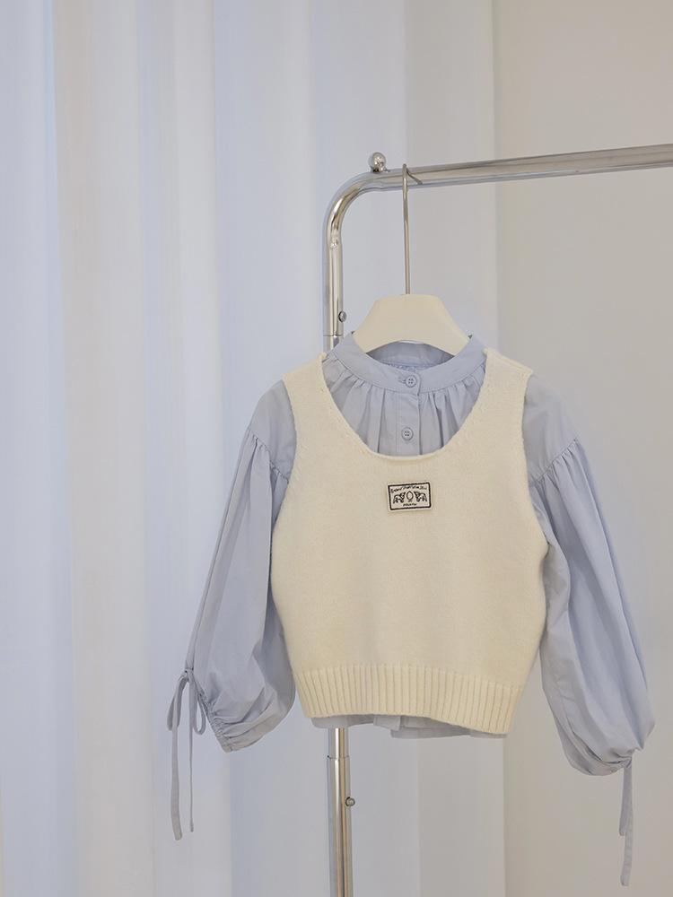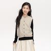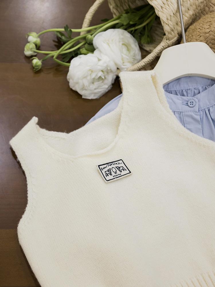 [Gran Venta Especial] Chaleco Corto de Punto con Parche de Cuello U para Niñas de Primavera Chaleco Holgado Apilado Estilo Coreano para Niños