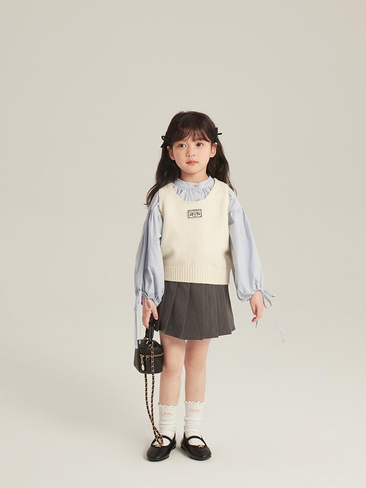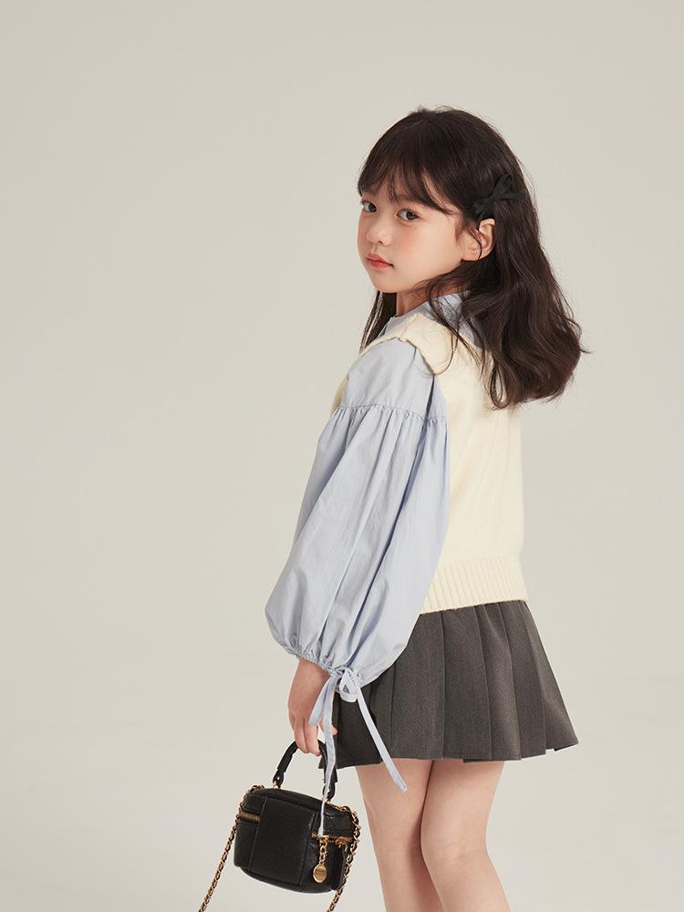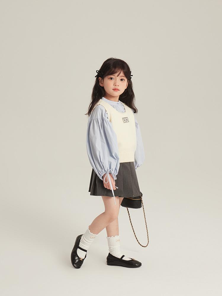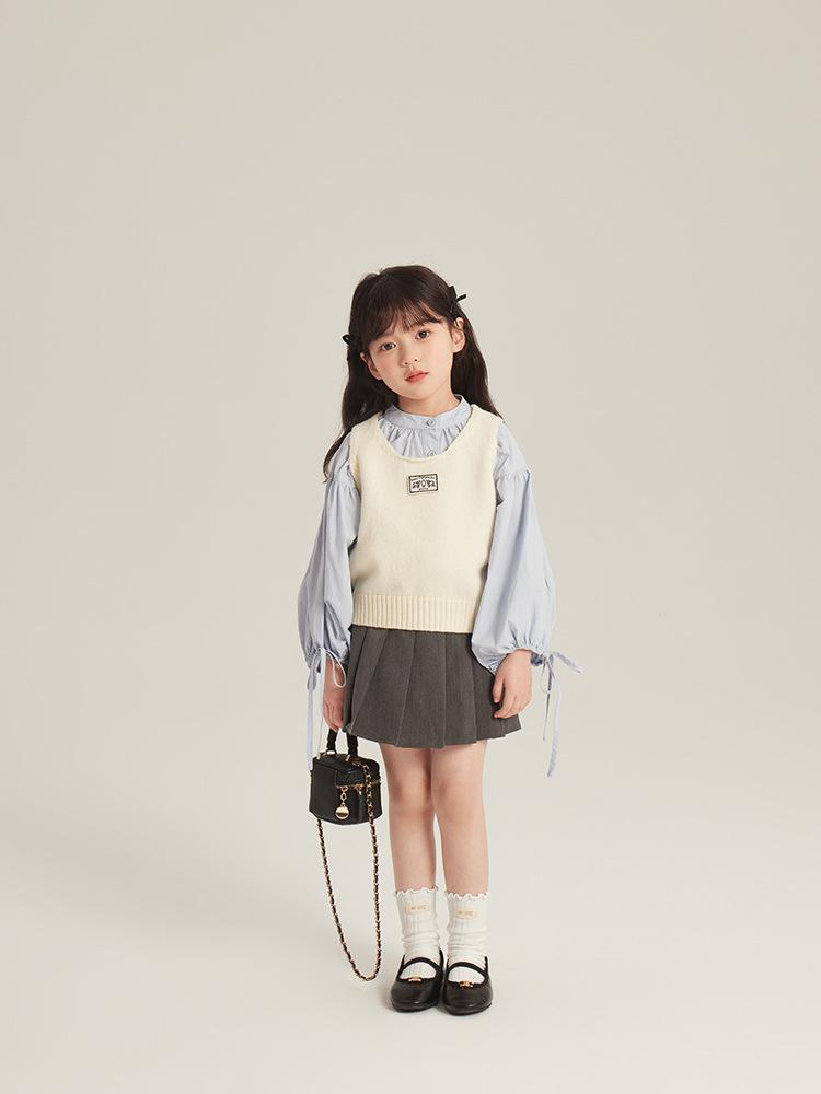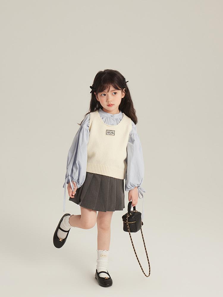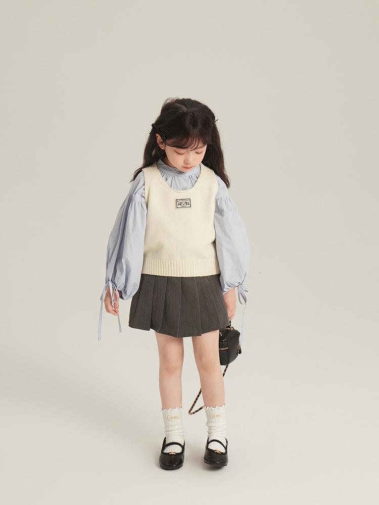 [Gran Venta Especial] Chaleco Corto de Punto con Parche de Cuello U para Niñas de Primavera Chaleco Holgado Apilado Estilo Coreano para Niños