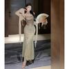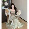 Verano Elegante Retro Mariposa Malla Elástico Nuevo Vestido de Tirantes Falda de Mujer Chica Caliente Ajustado Cadera Falda Larga