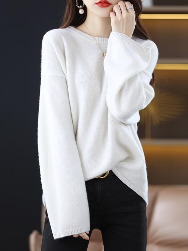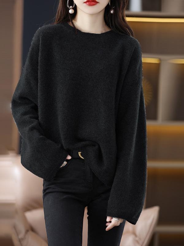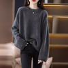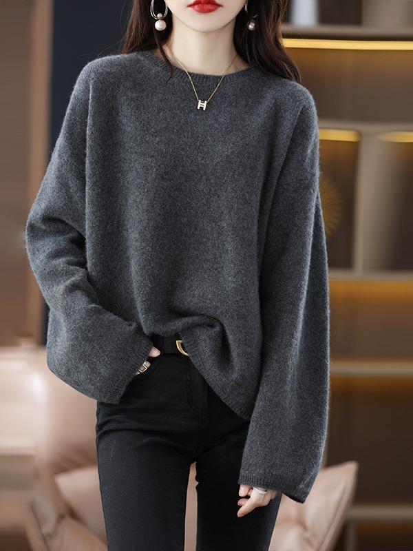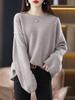 Otoño e Invierno Nuevo Estilo Estilo Perezoso Casual Elegante Cuello Redondo Exportación Transfronteriza Color Puro Suéter de Punto Holgado Pulóver de Mujer