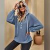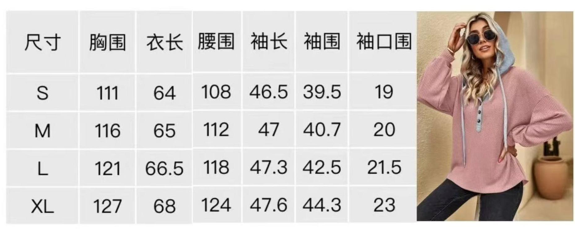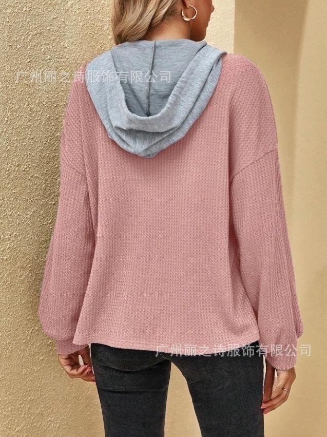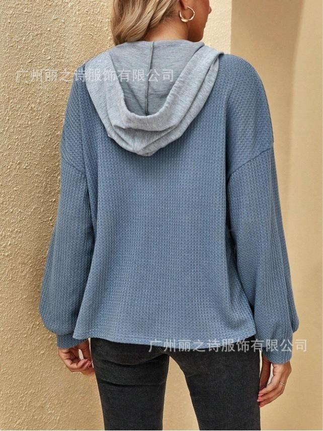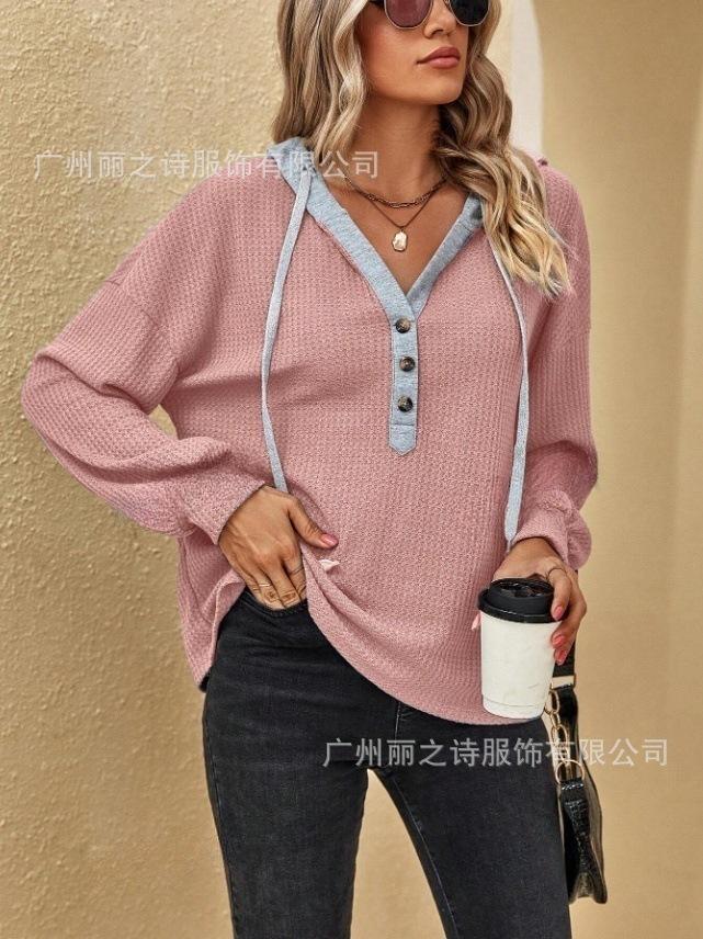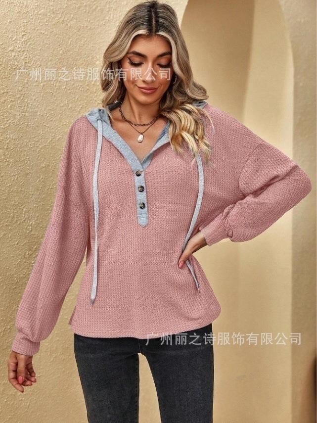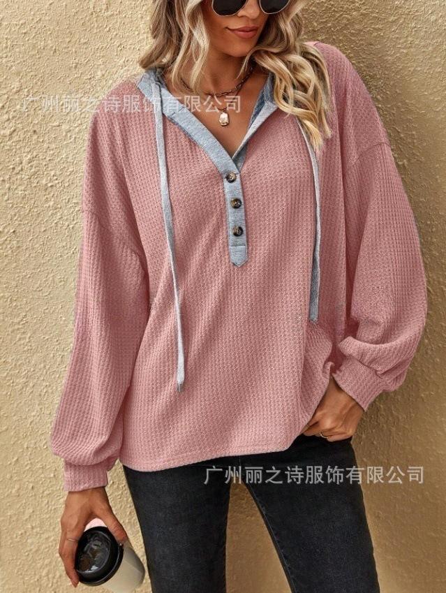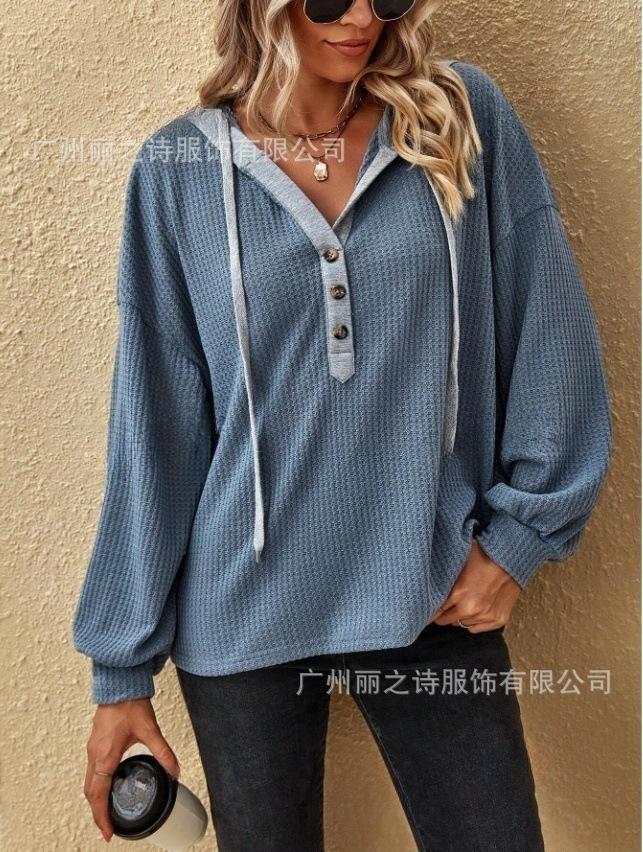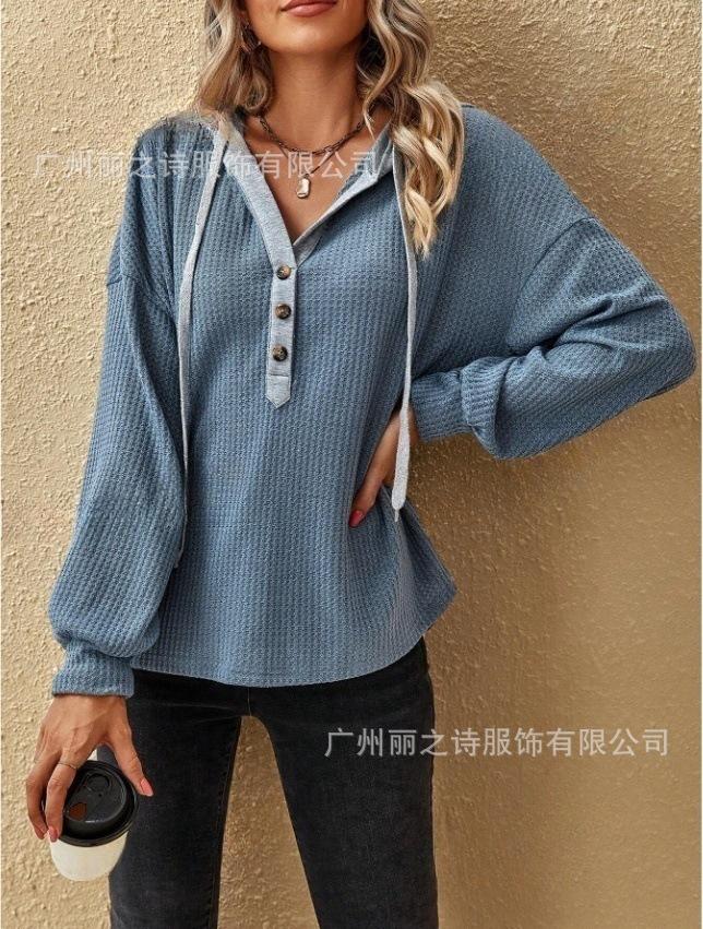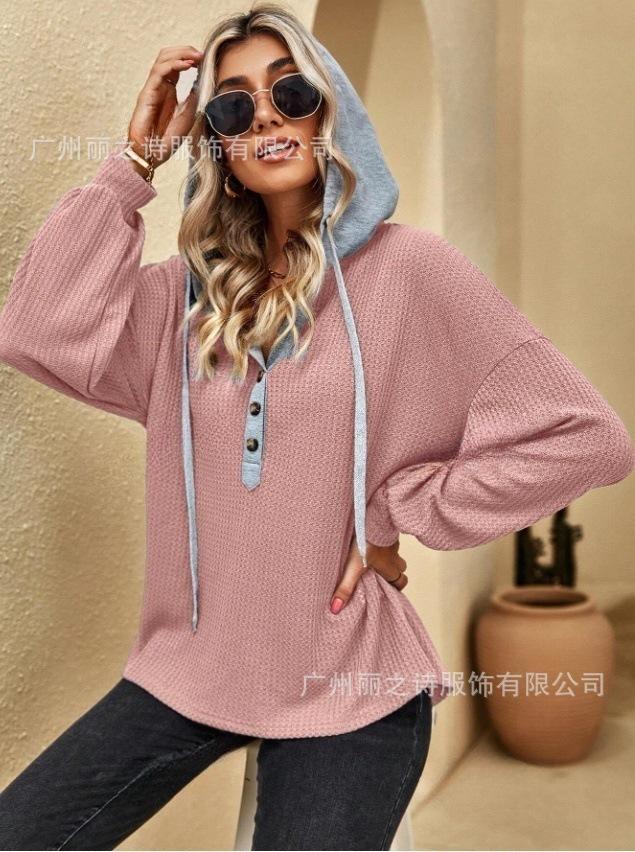 Tops Holgados con Capucha para Mujer Otoño e Invierno Europeos y Americanos Amazon Nuevo Sudadera Casual de Waffle con Botones y Manga Larga para Mujer
