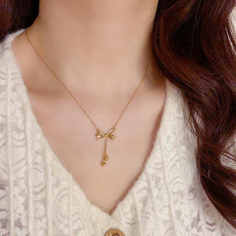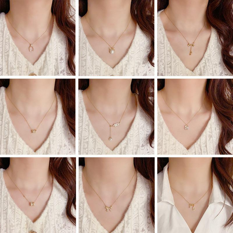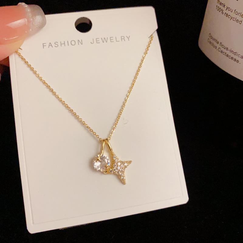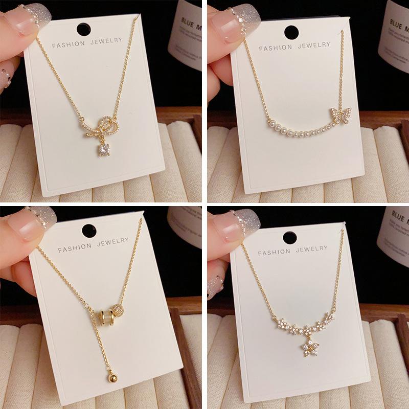 Collar dorado de moda de verano, pequeño y fresco, con microincrustaciones de circonitas, cadena de clavícula que combina con todo, collar de lujo ligero y distintivo para mujeres.