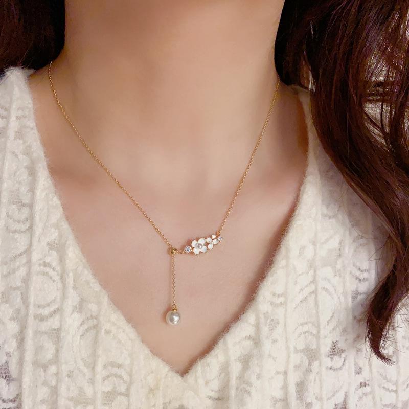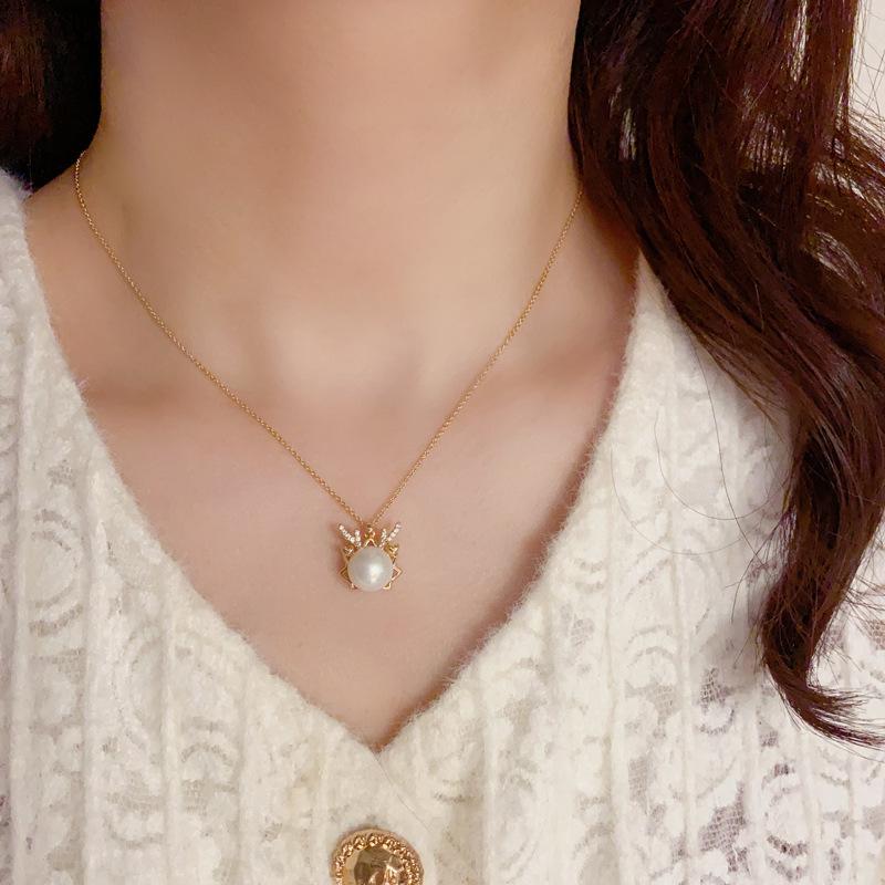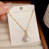 1# white-imitation pearl titanium steel necklace (thick gold plating)