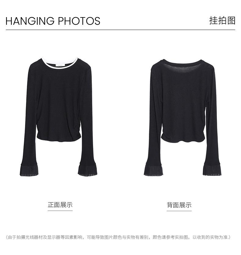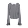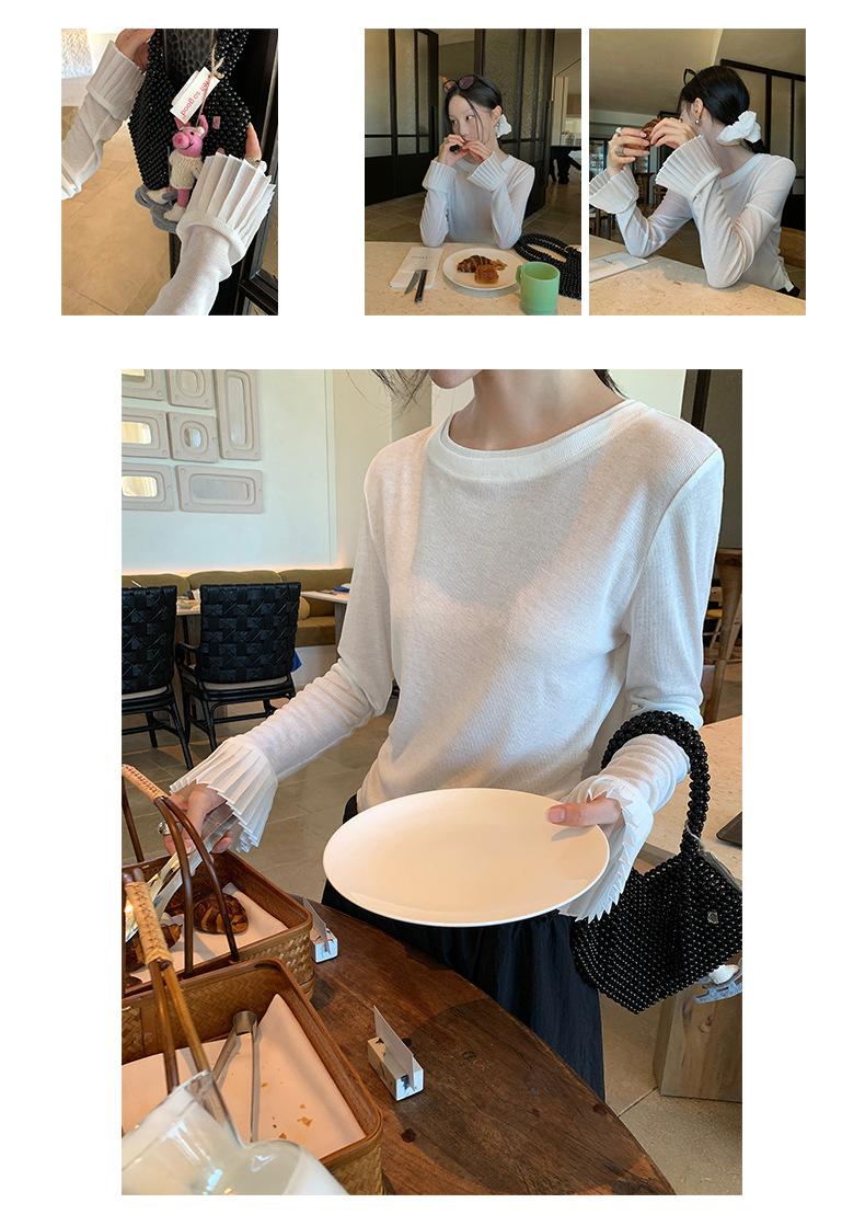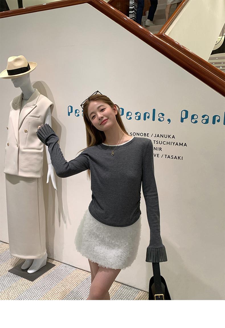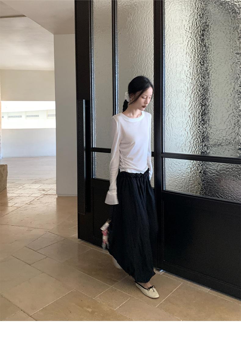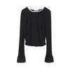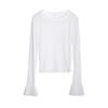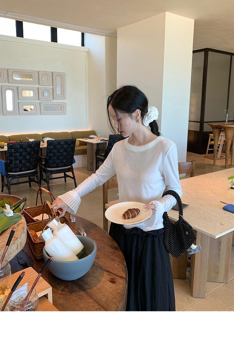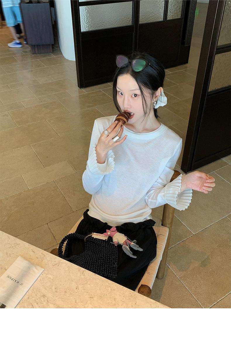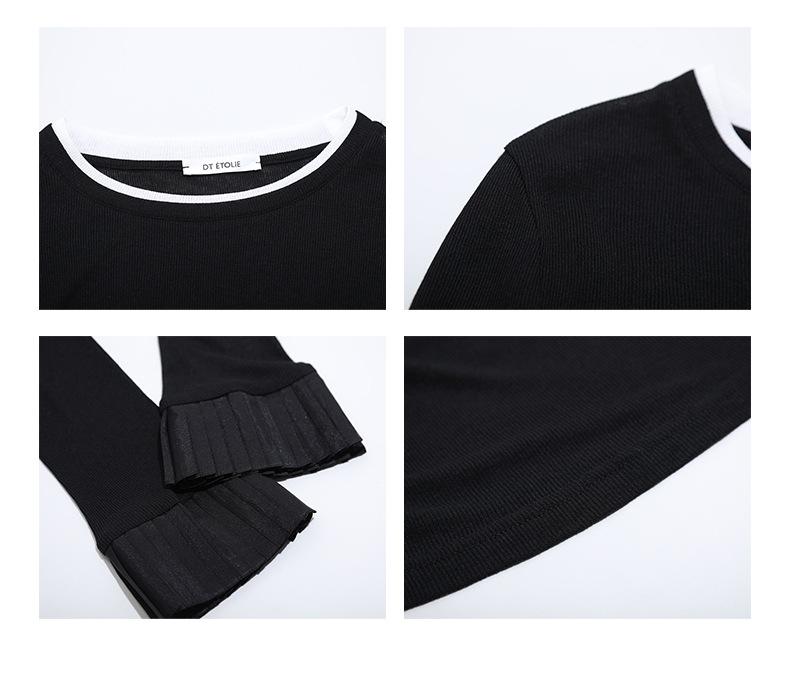 Dreaming DT ETOLIE Sentido del Diseño Camiseta de Manga Larga con Cintura Plisada para Mujer, Corte Slim, Manga Acampanada, Cuello con Costuras, Top Corto