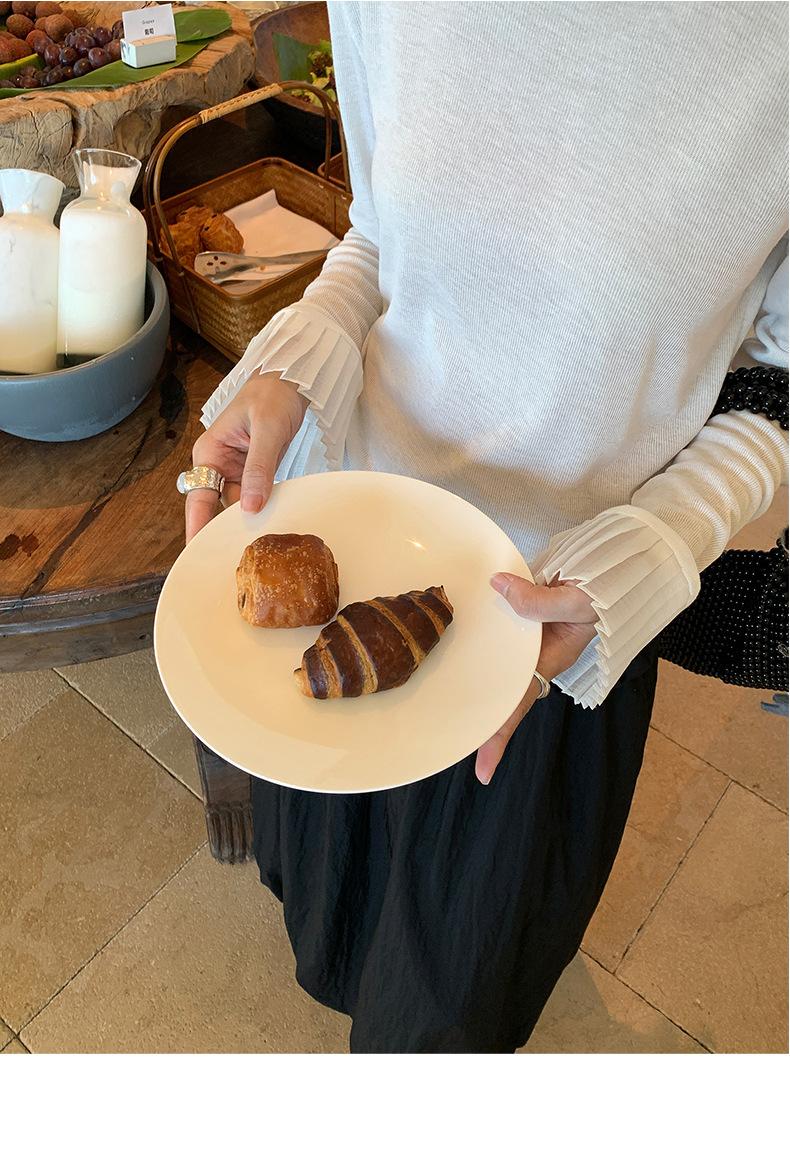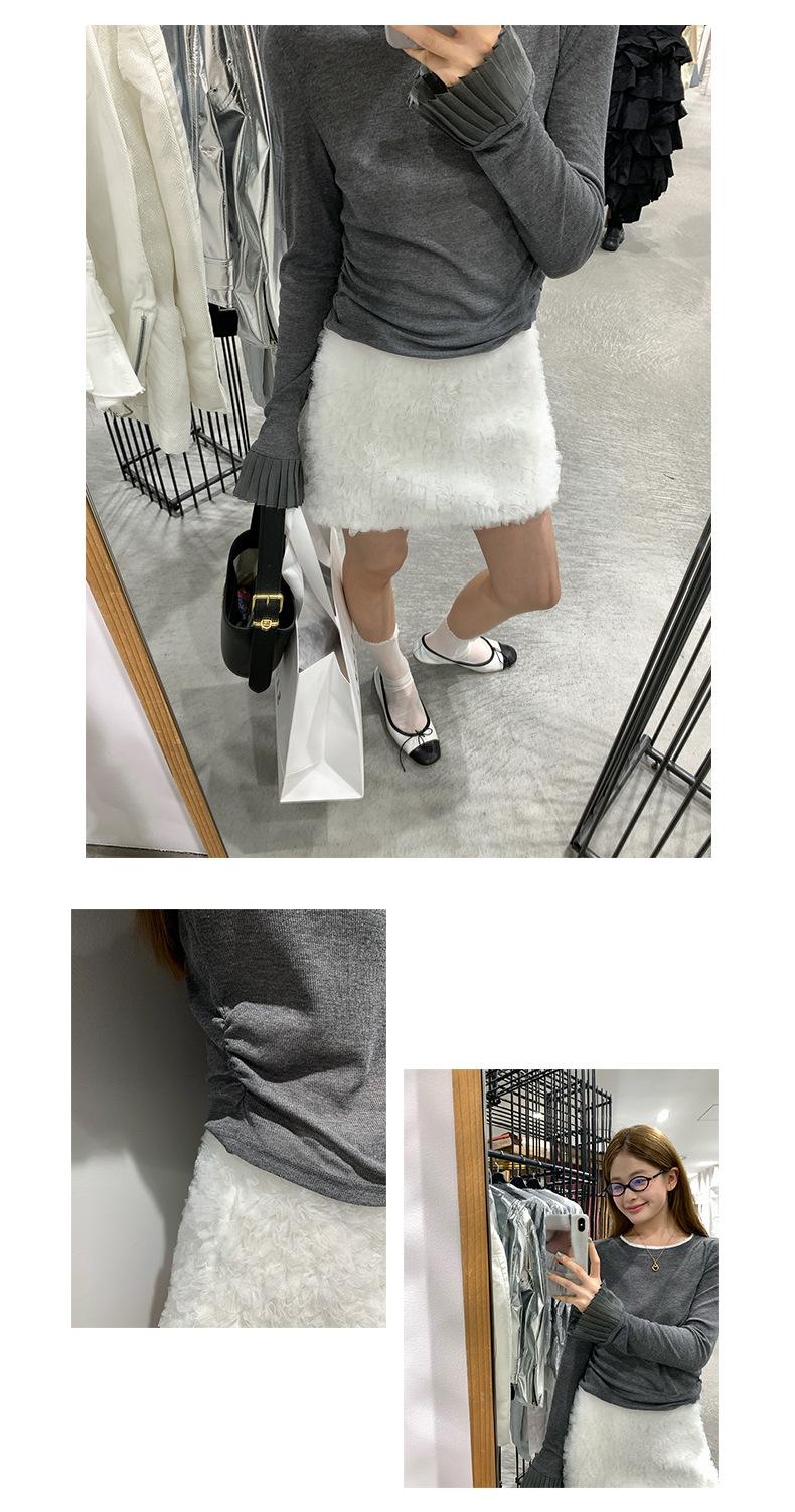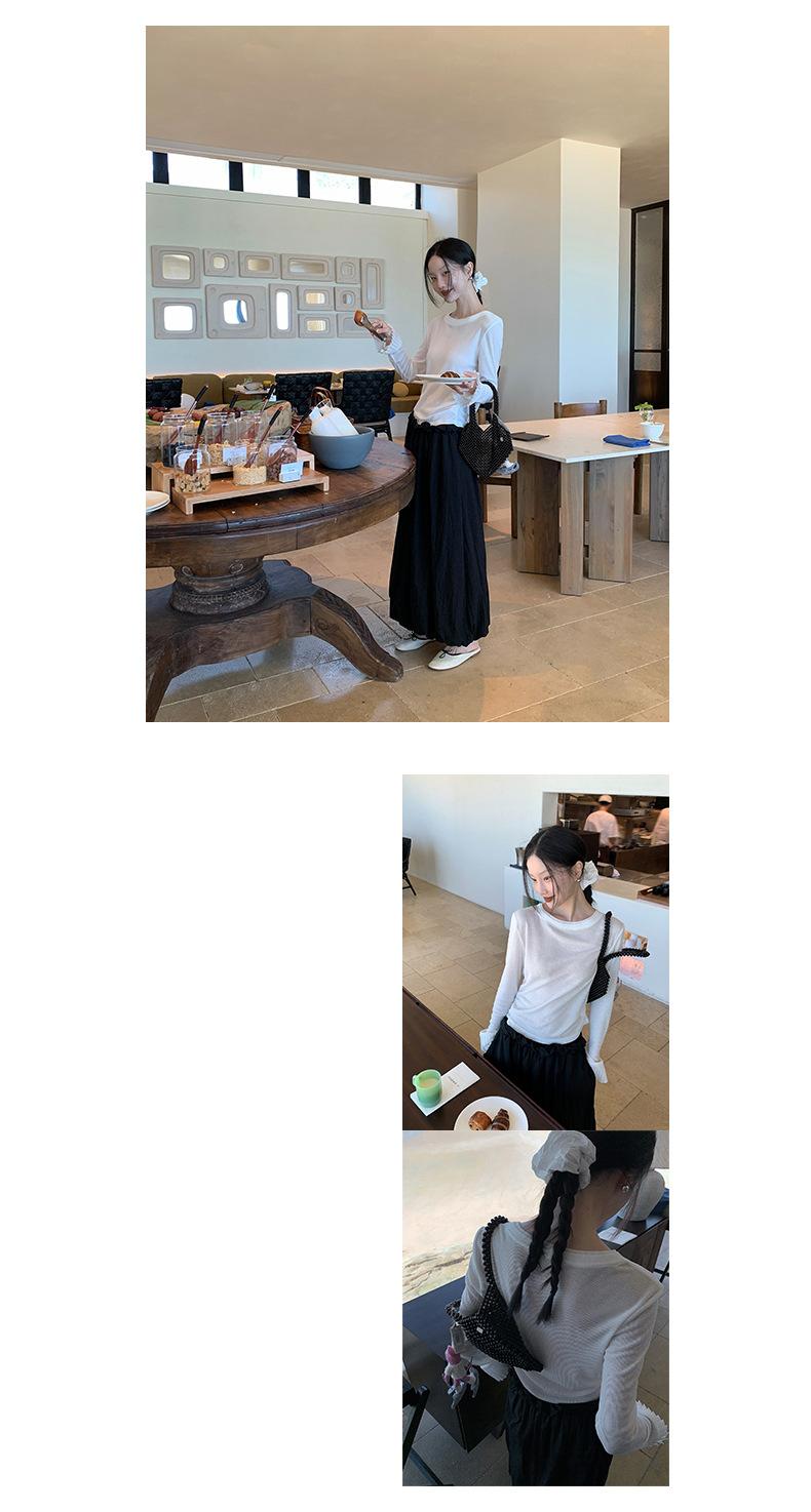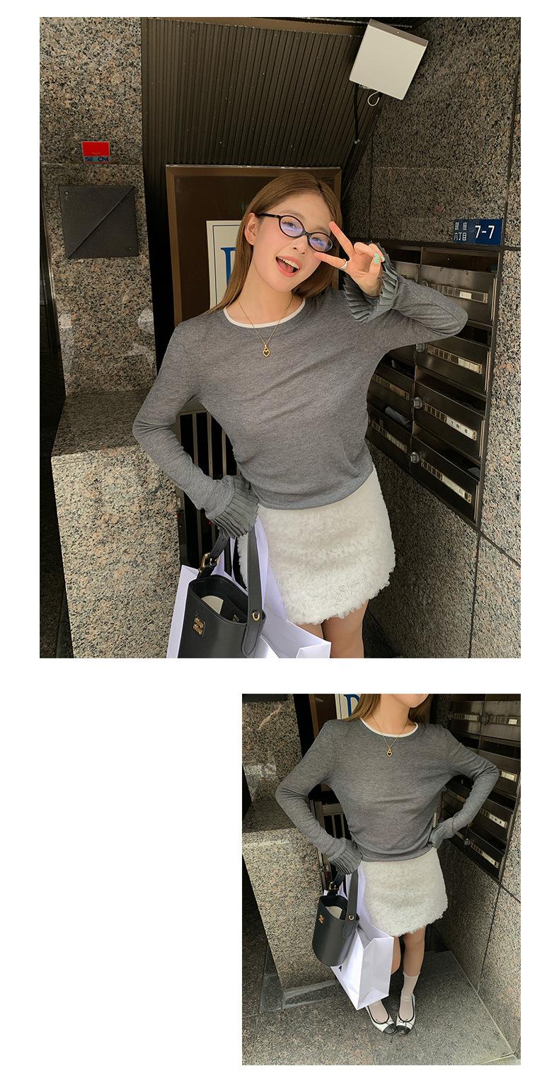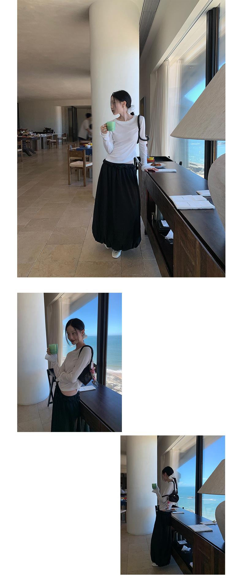 Dreaming DT ETOLIE Sentido del Diseño Camiseta de Manga Larga con Cintura Plisada para Mujer, Corte Slim, Manga Acampanada, Cuello con Costuras, Top Corto