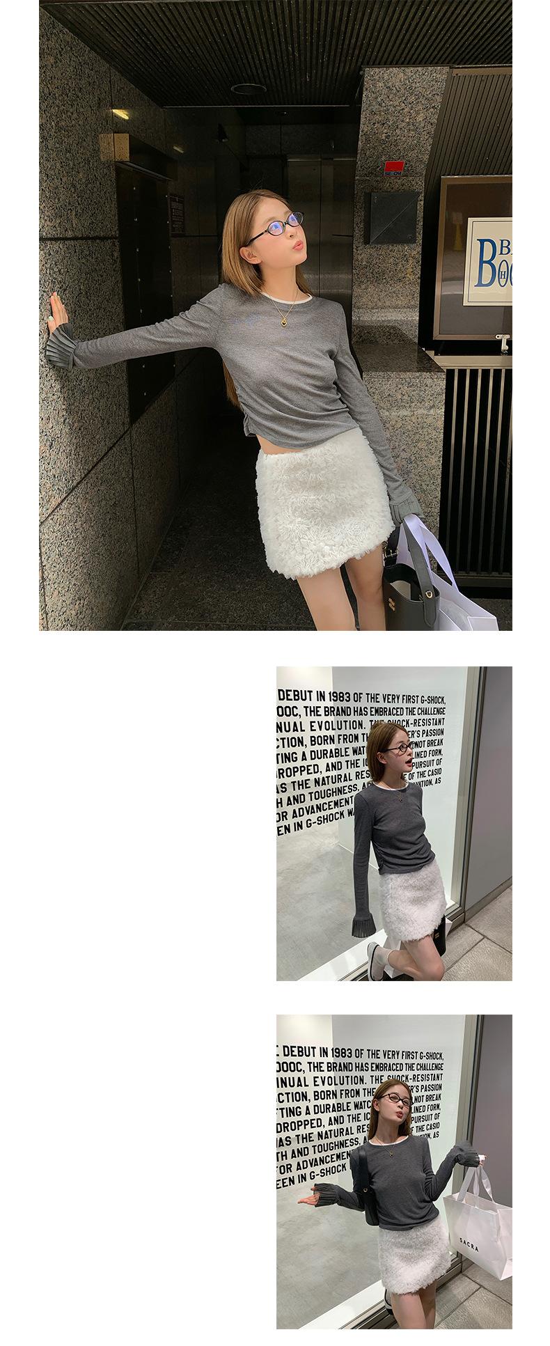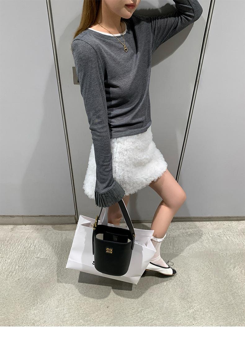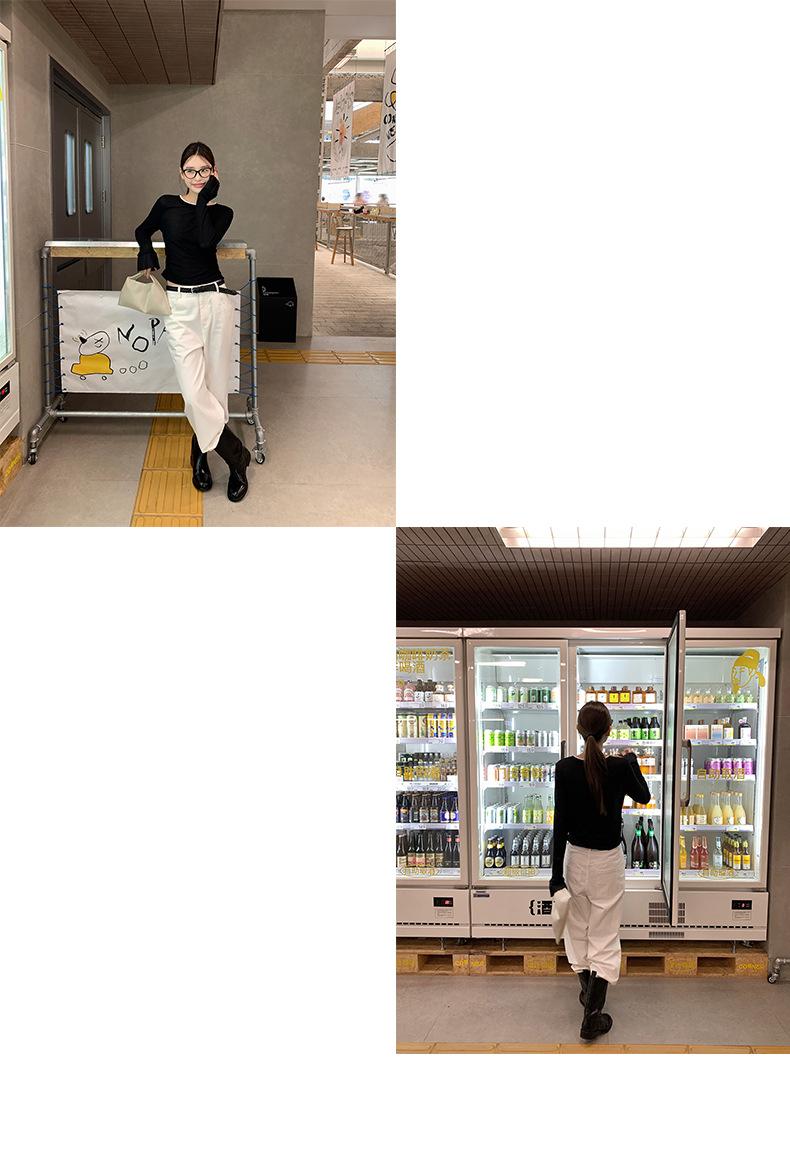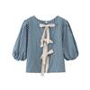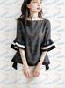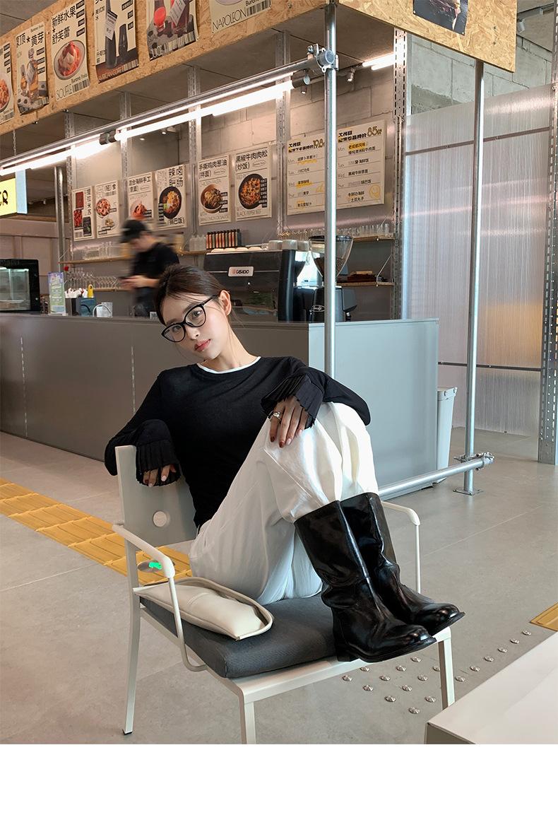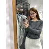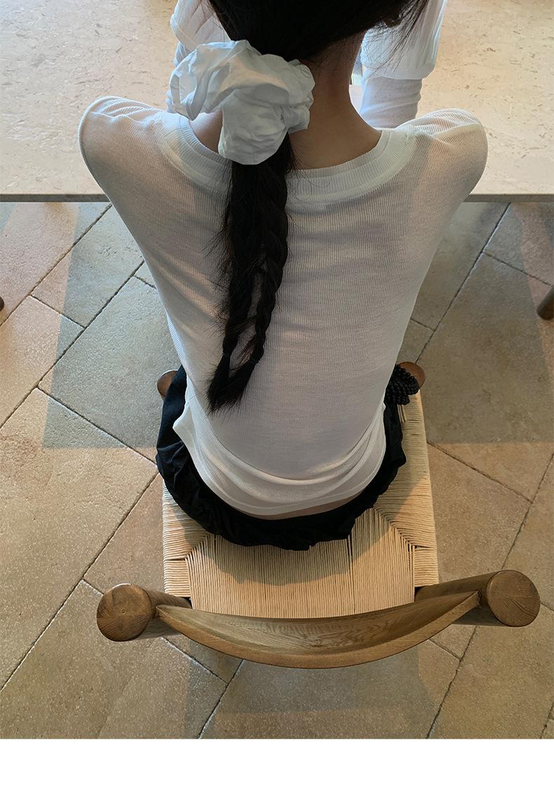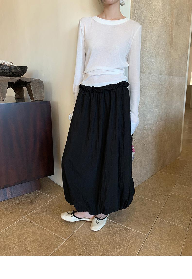 Dreaming DT ETOLIE Sentido del Diseño Camiseta de Manga Larga con Cintura Plisada para Mujer, Corte Slim, Manga Acampanada, Cuello con Costuras, Top Corto