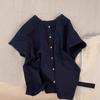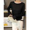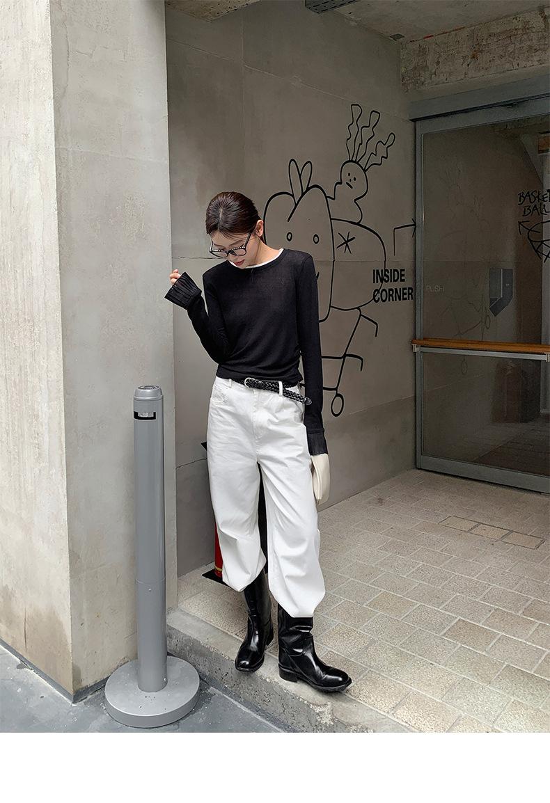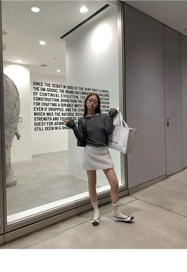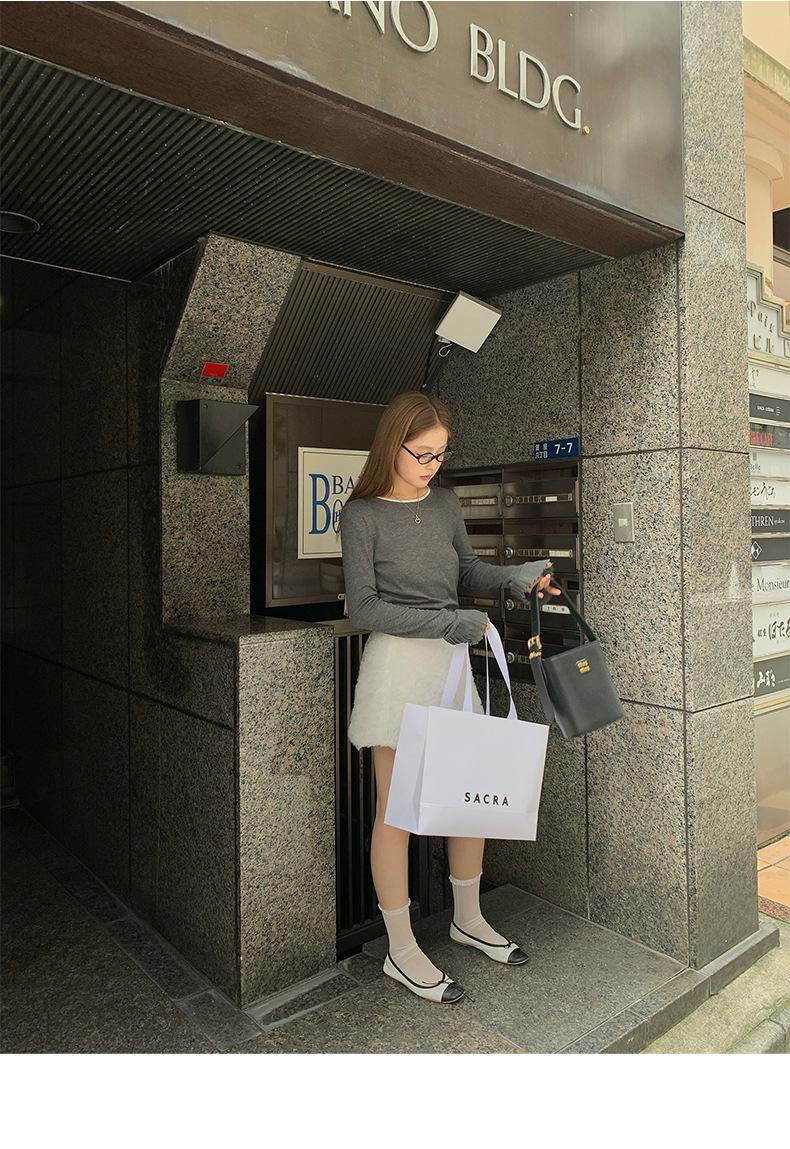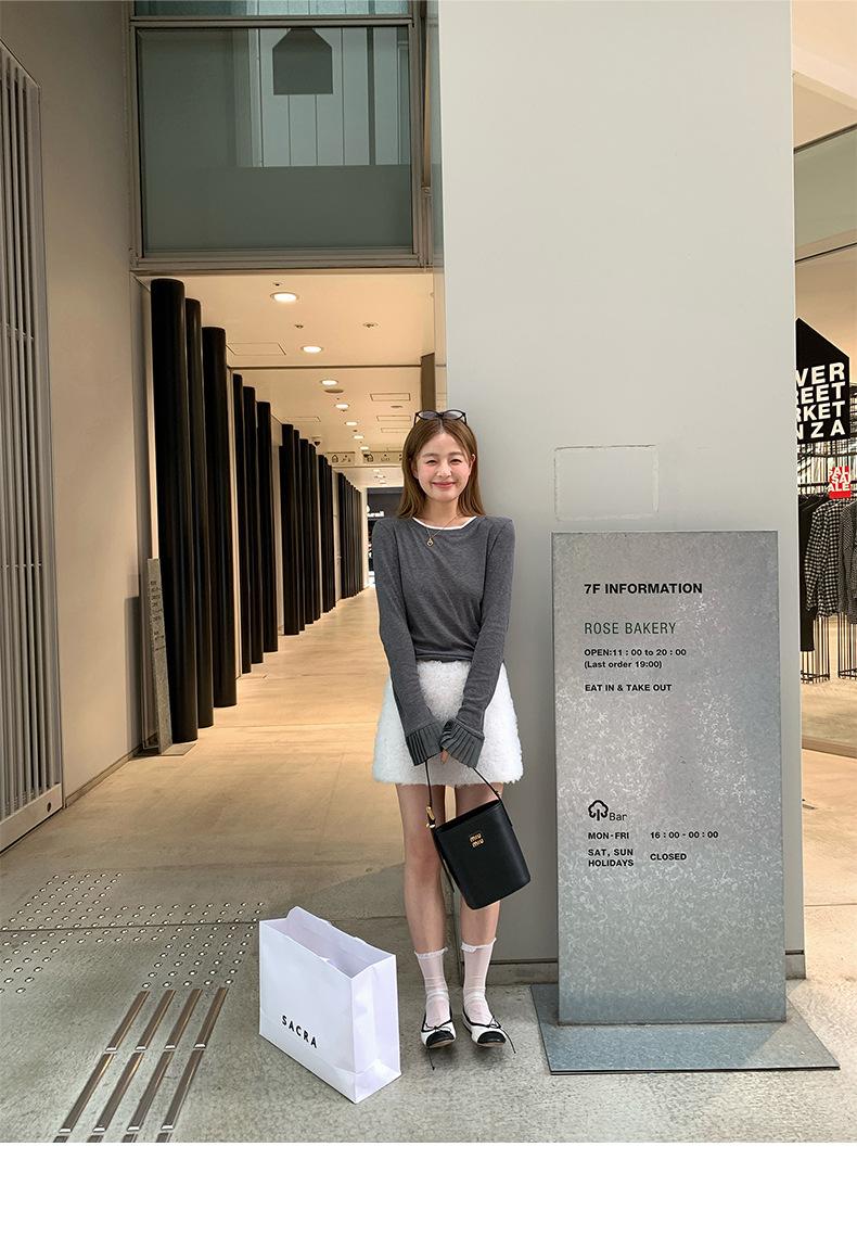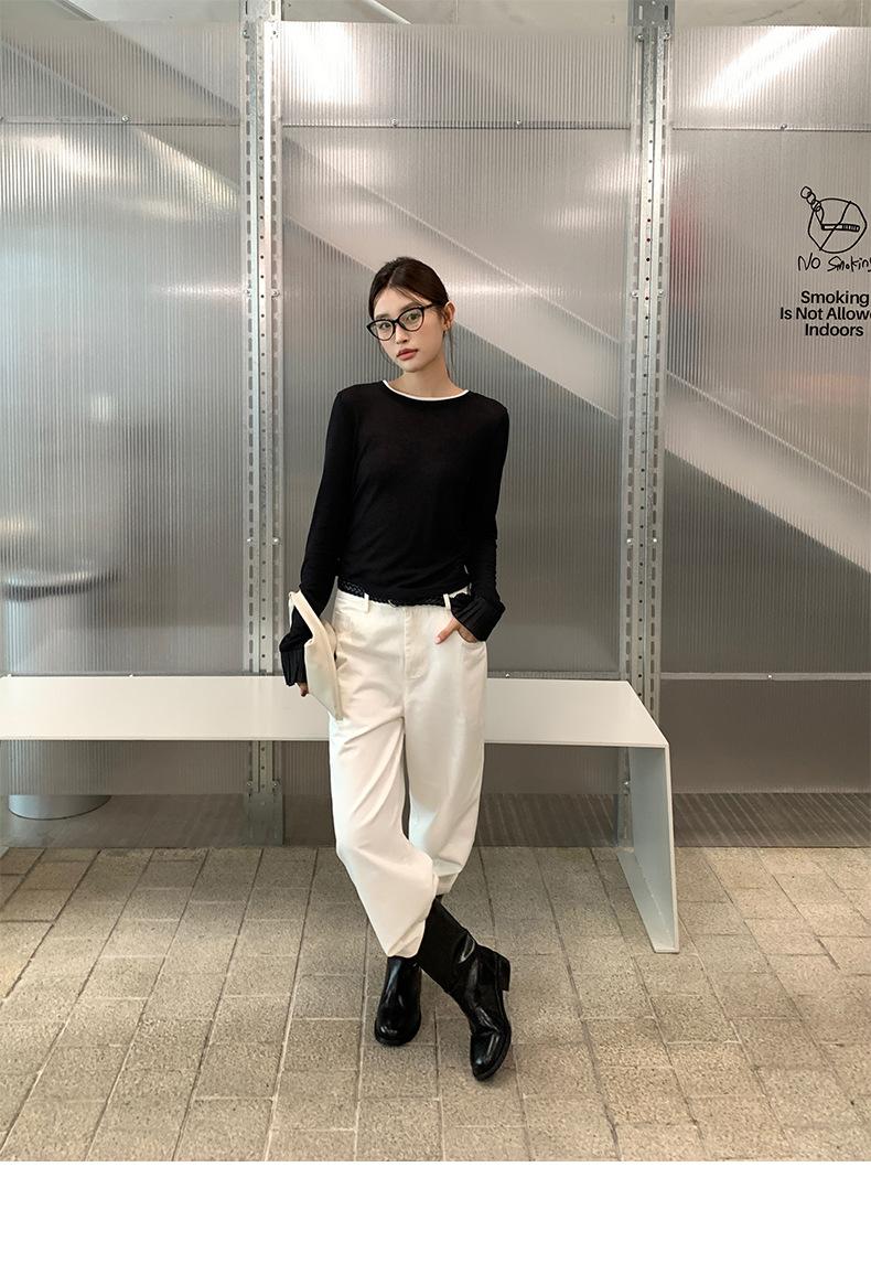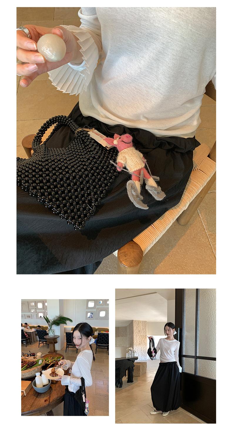 Dreaming DT ETOLIE Sentido del Diseño Camiseta de Manga Larga con Cintura Plisada para Mujer, Corte Slim, Manga Acampanada, Cuello con Costuras, Top Corto