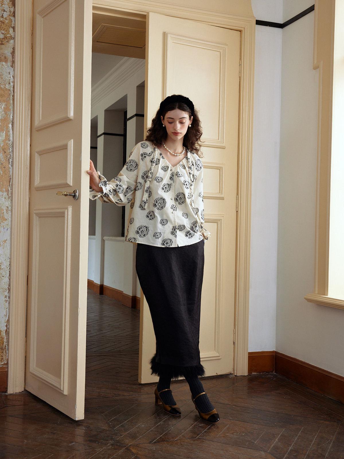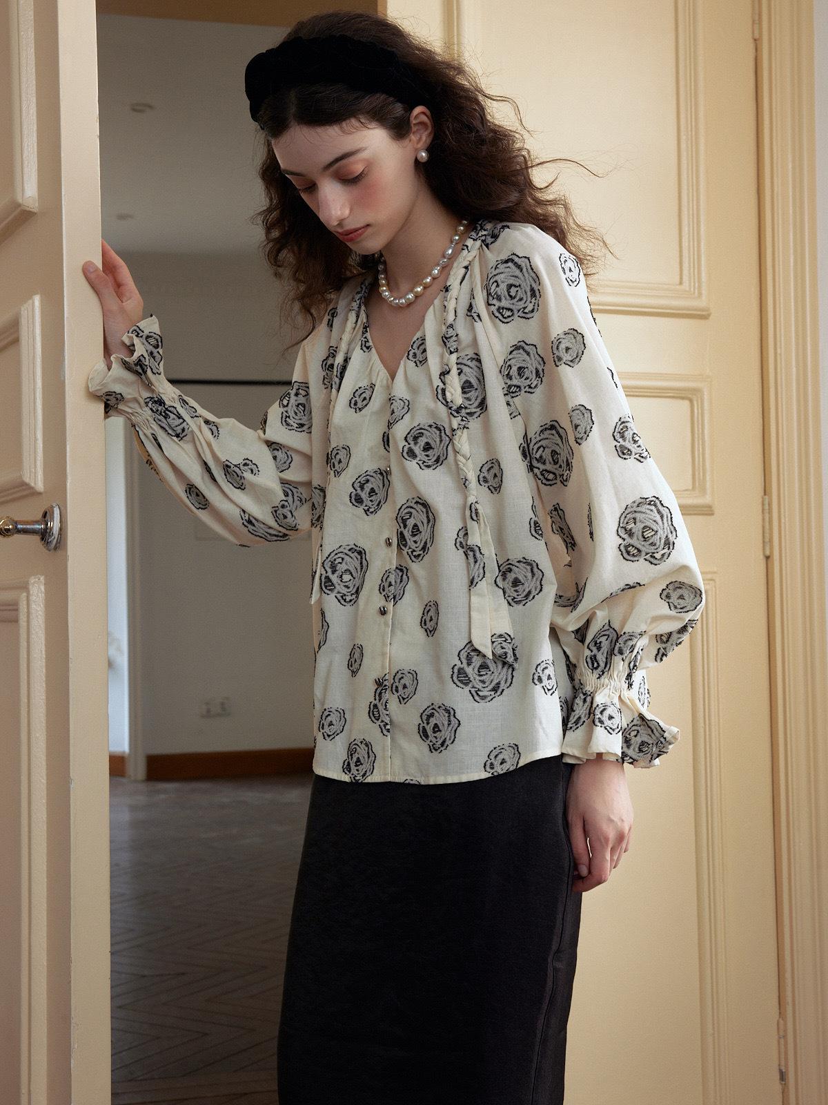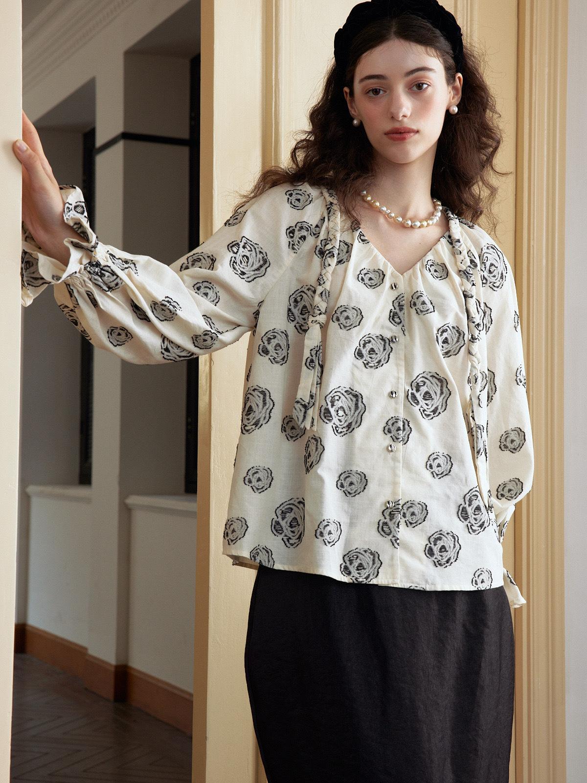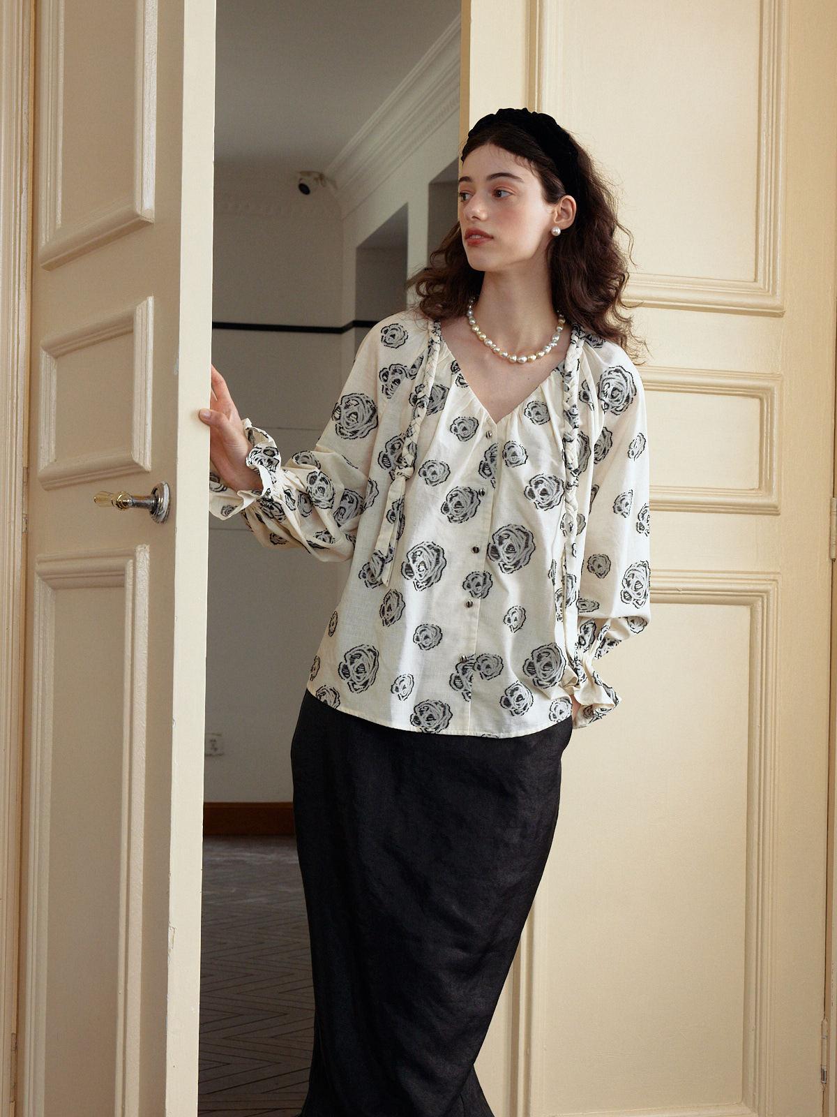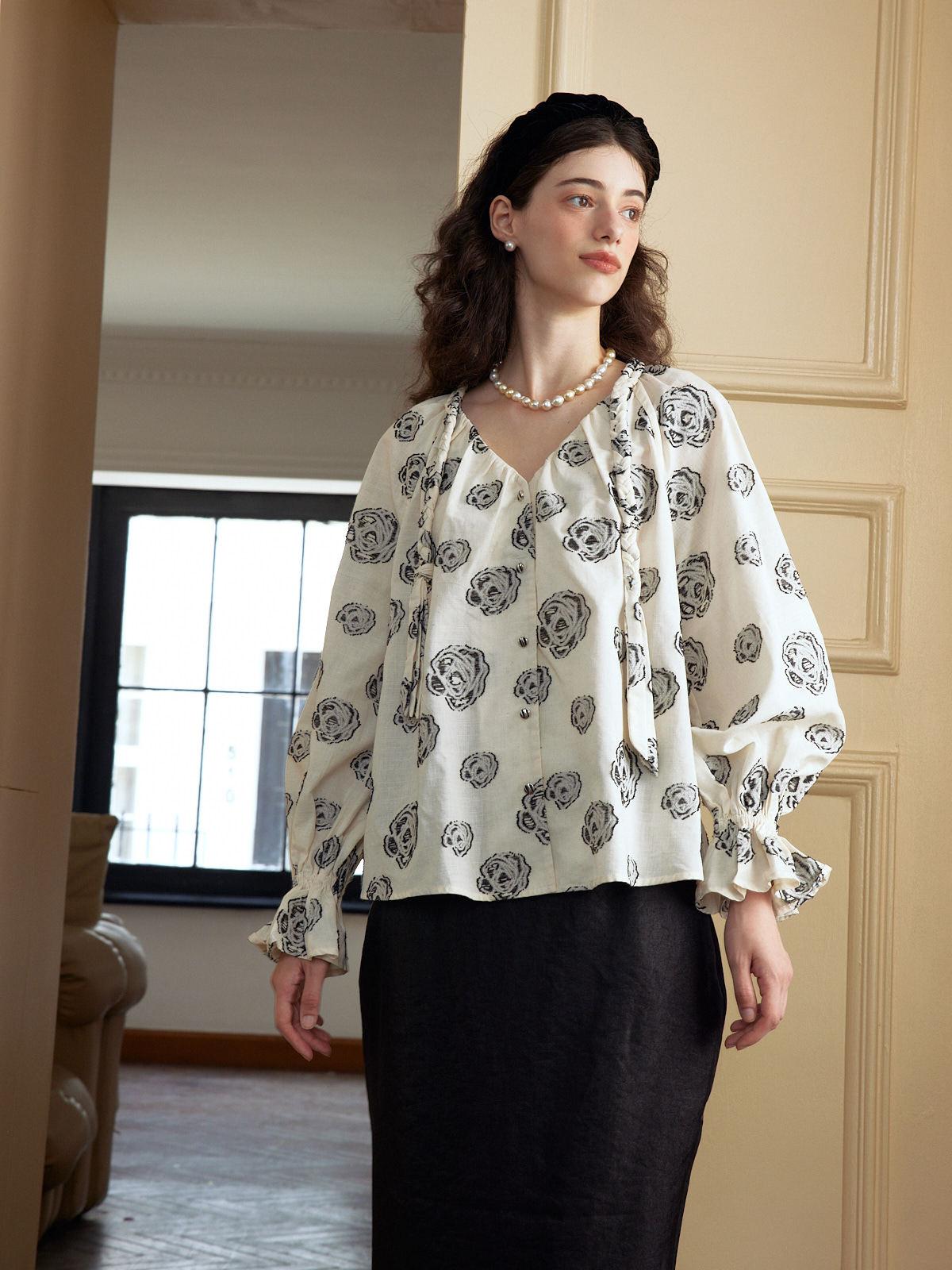 Camisa Francesa de Primavera para Mujer, Camisa Holgada Retro con Corte Rosa, Camisa con Cuello en V con Borlas B0736