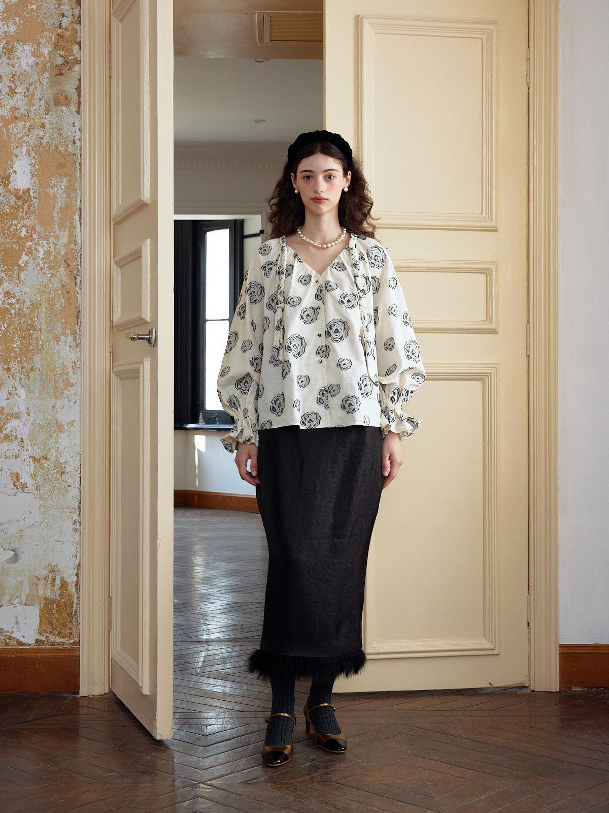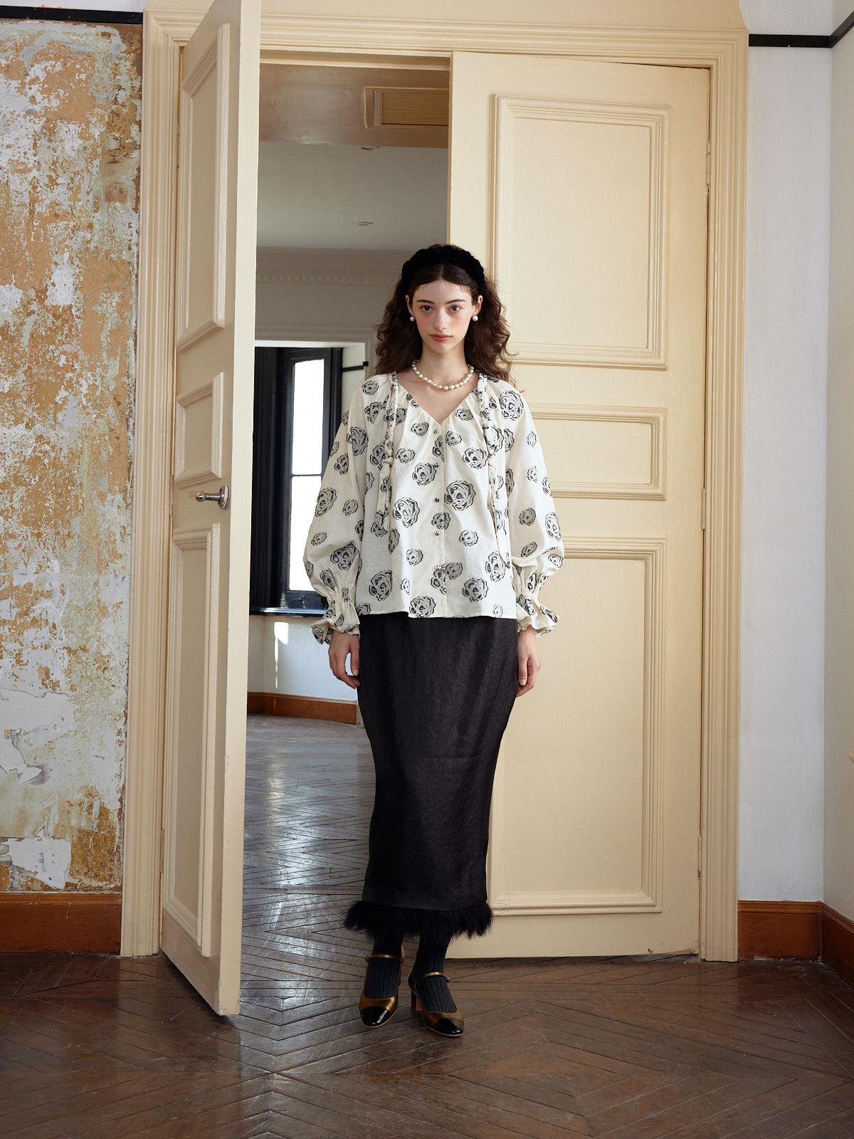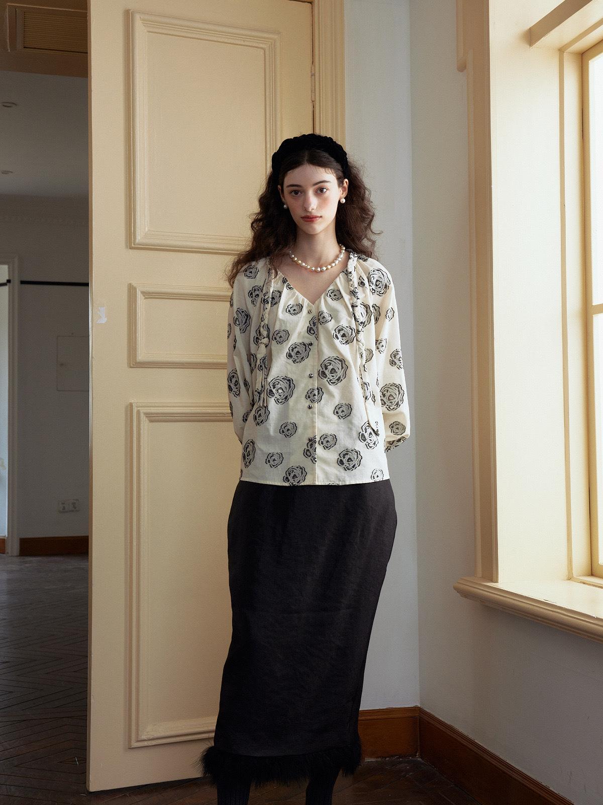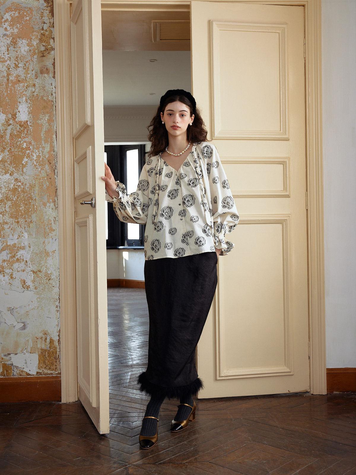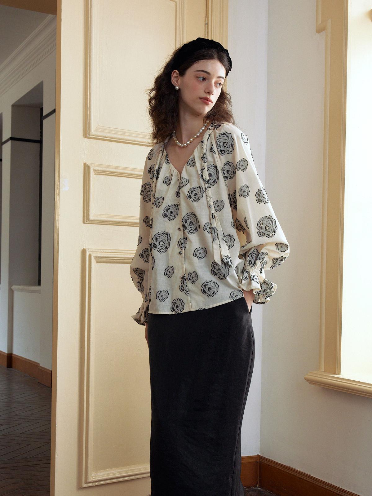 Camisa Francesa de Primavera para Mujer, Camisa Holgada Retro con Corte Rosa, Camisa con Cuello en V con Borlas B0736