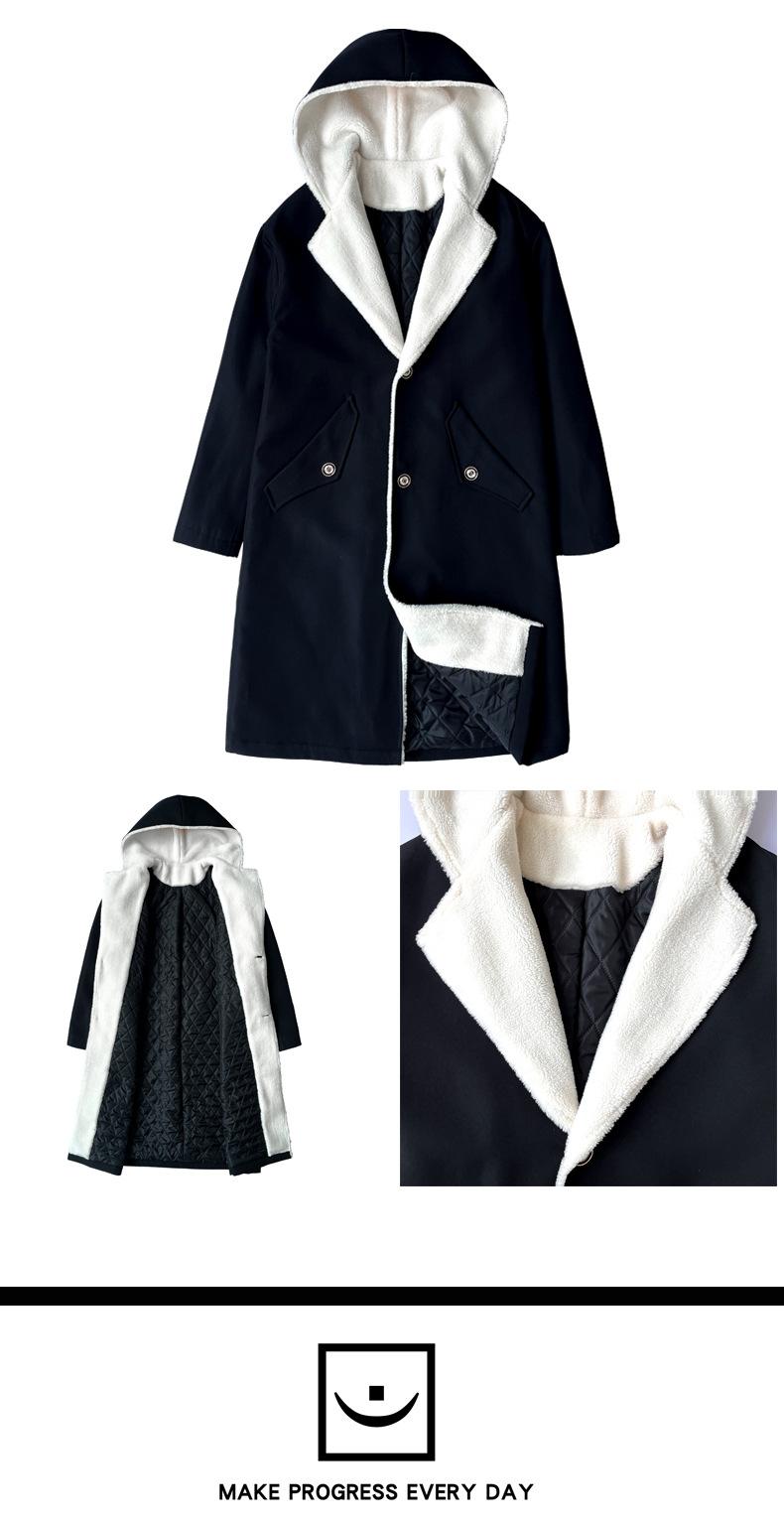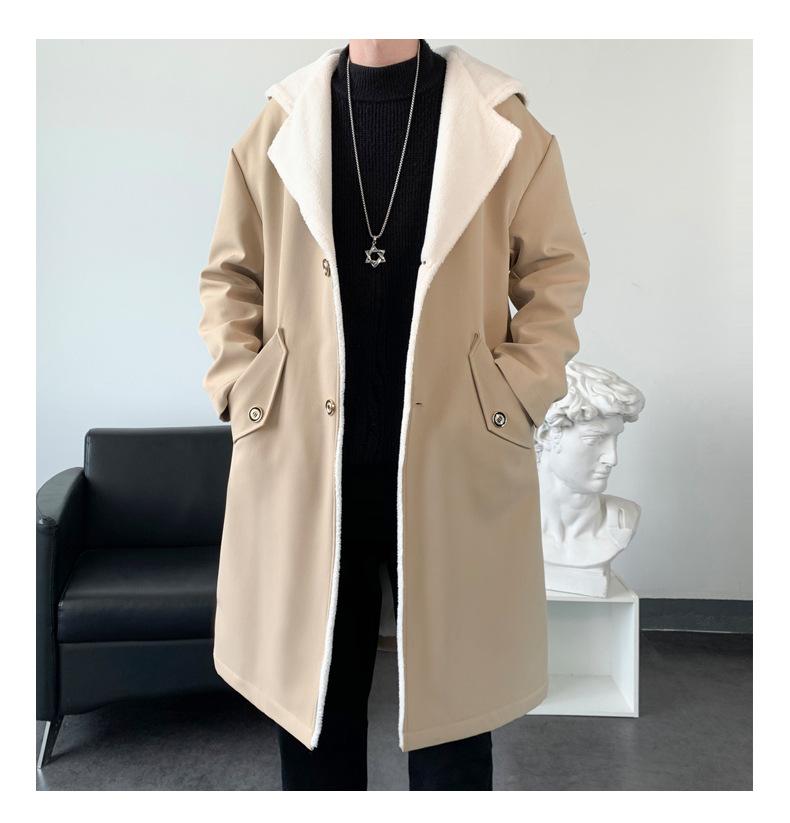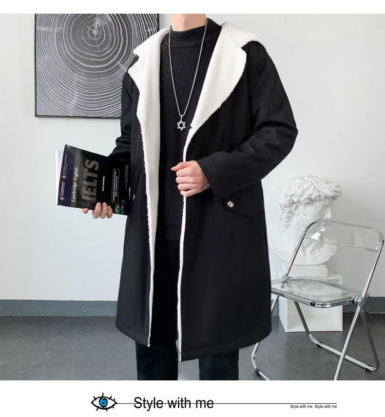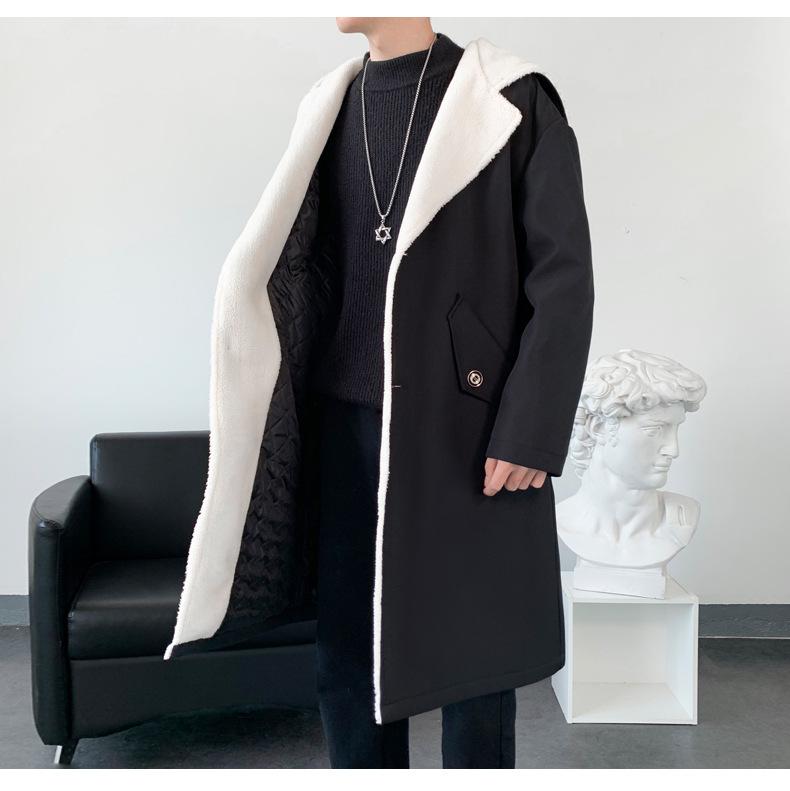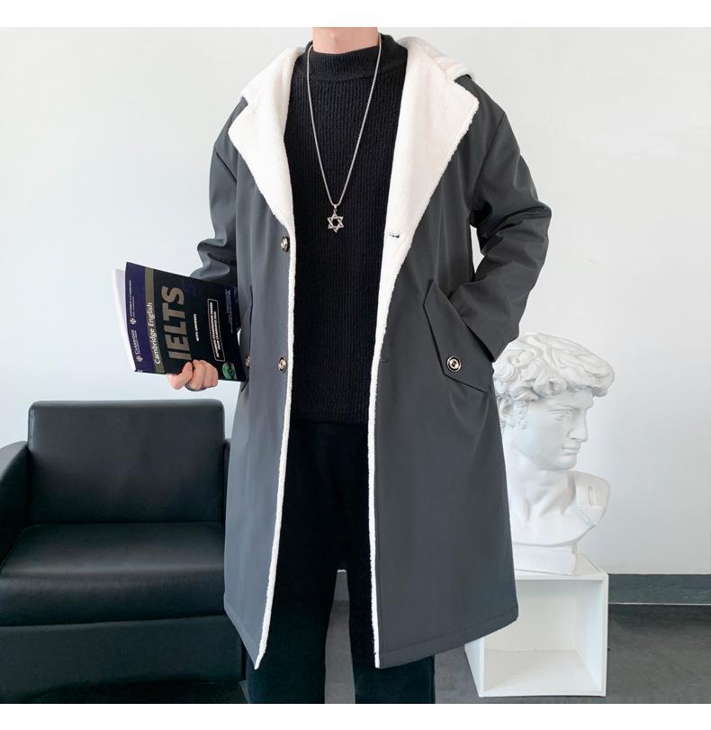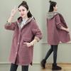 Gabardina de longitud media con capucha, holgada, de color liso, estilo High Street, para otoño e invierno, nueva, de terciopelo de cordero y algodón, 2021