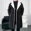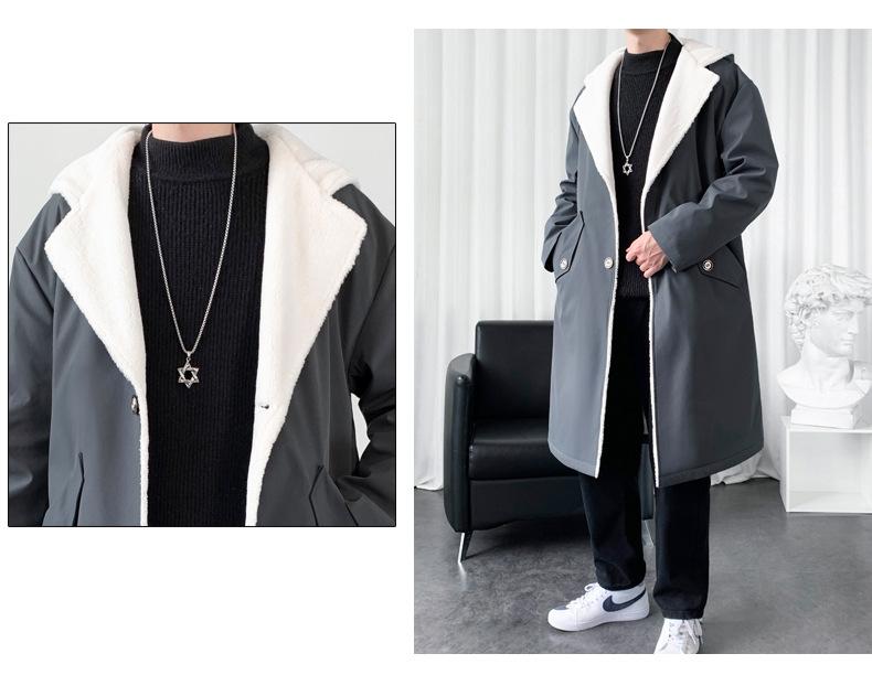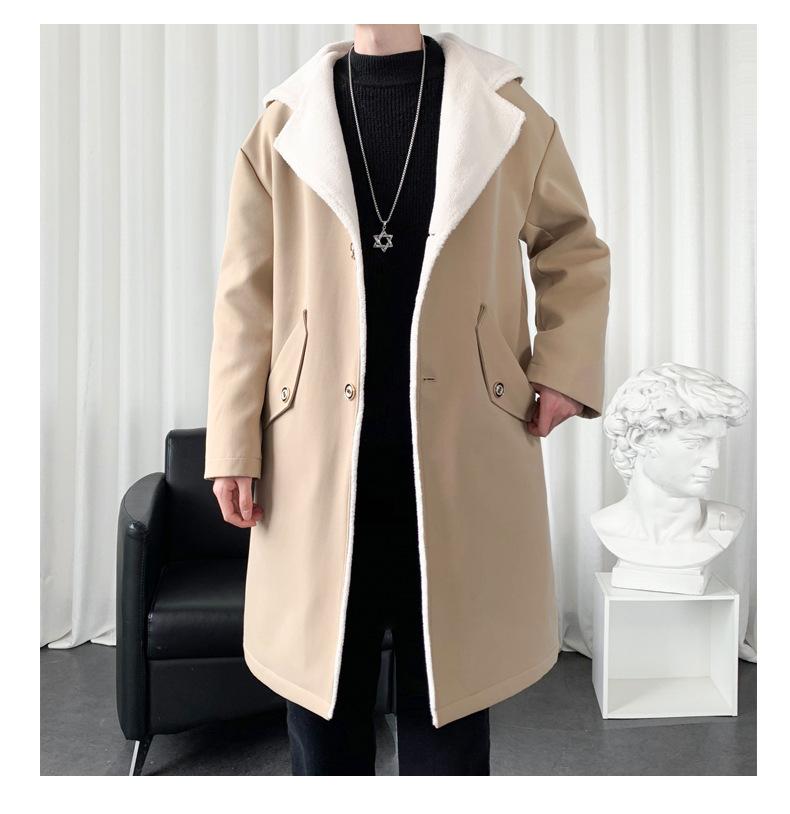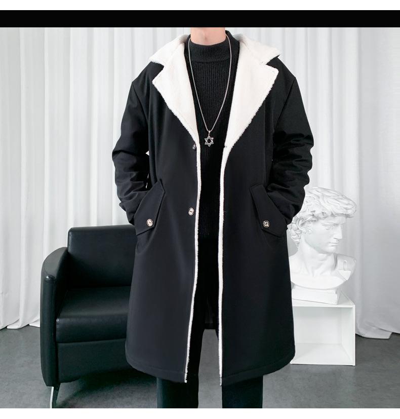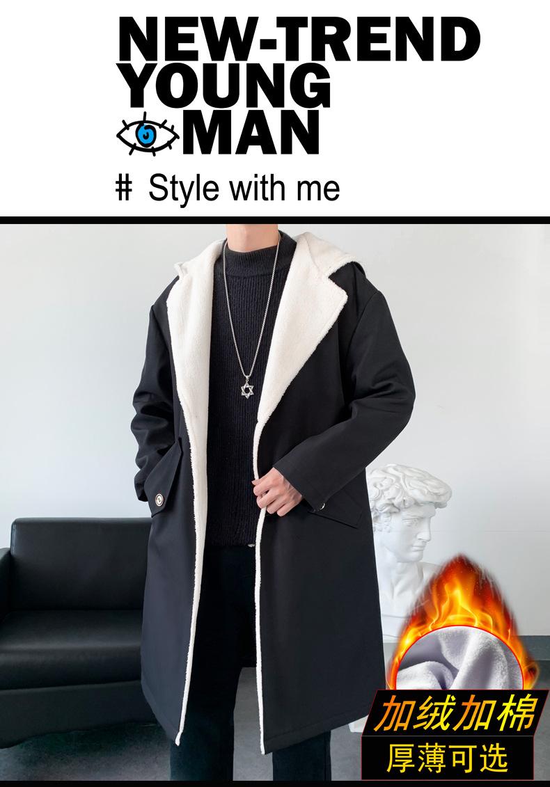 Gabardina de longitud media con capucha, holgada, de color liso, estilo High Street, para otoño e invierno, nueva, de terciopelo de cordero y algodón, 2021