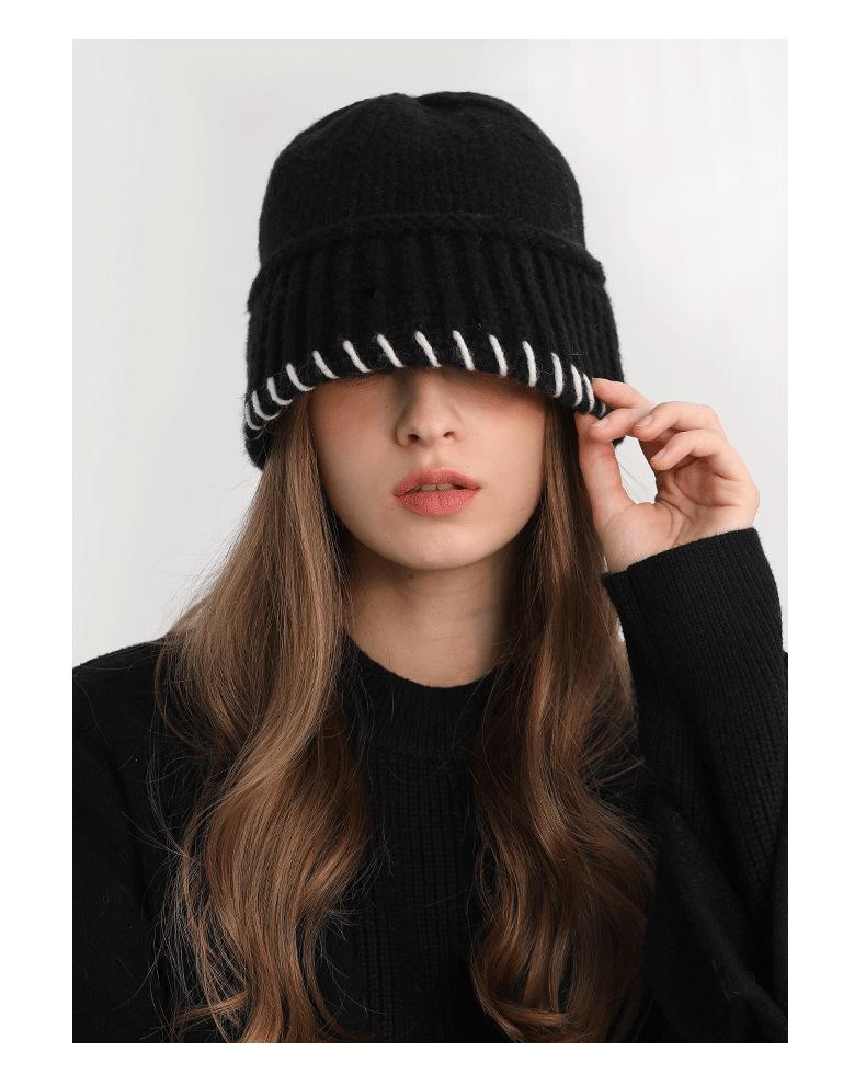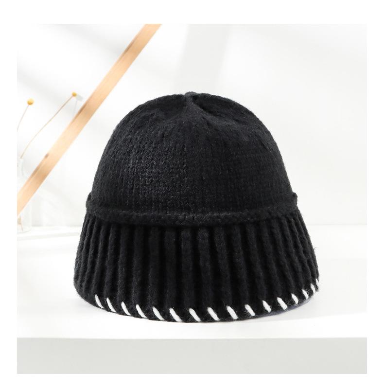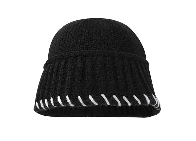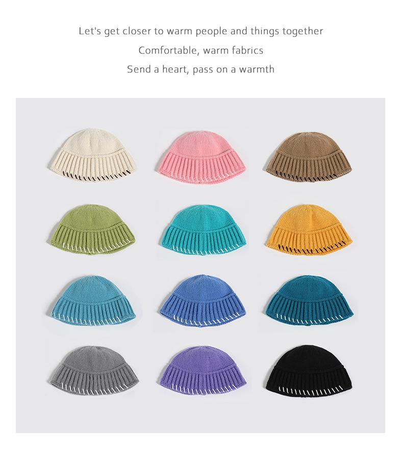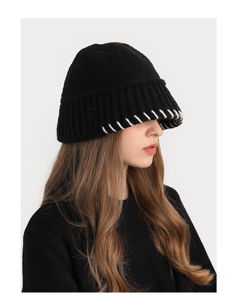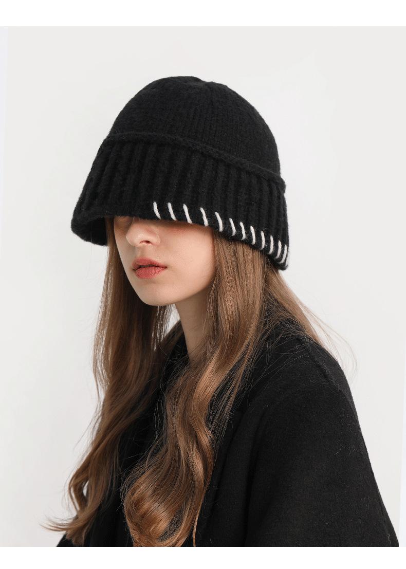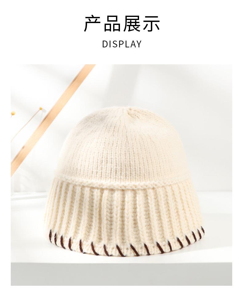 Otoño e Invierno Coreano Nuevo Sombrero Tejido a Mano Sombrero de Cubo de Lana Color Puro Que Muestra el Rostro Sombrero Pequeño Sombrero Cálido Engrosado para Mujer