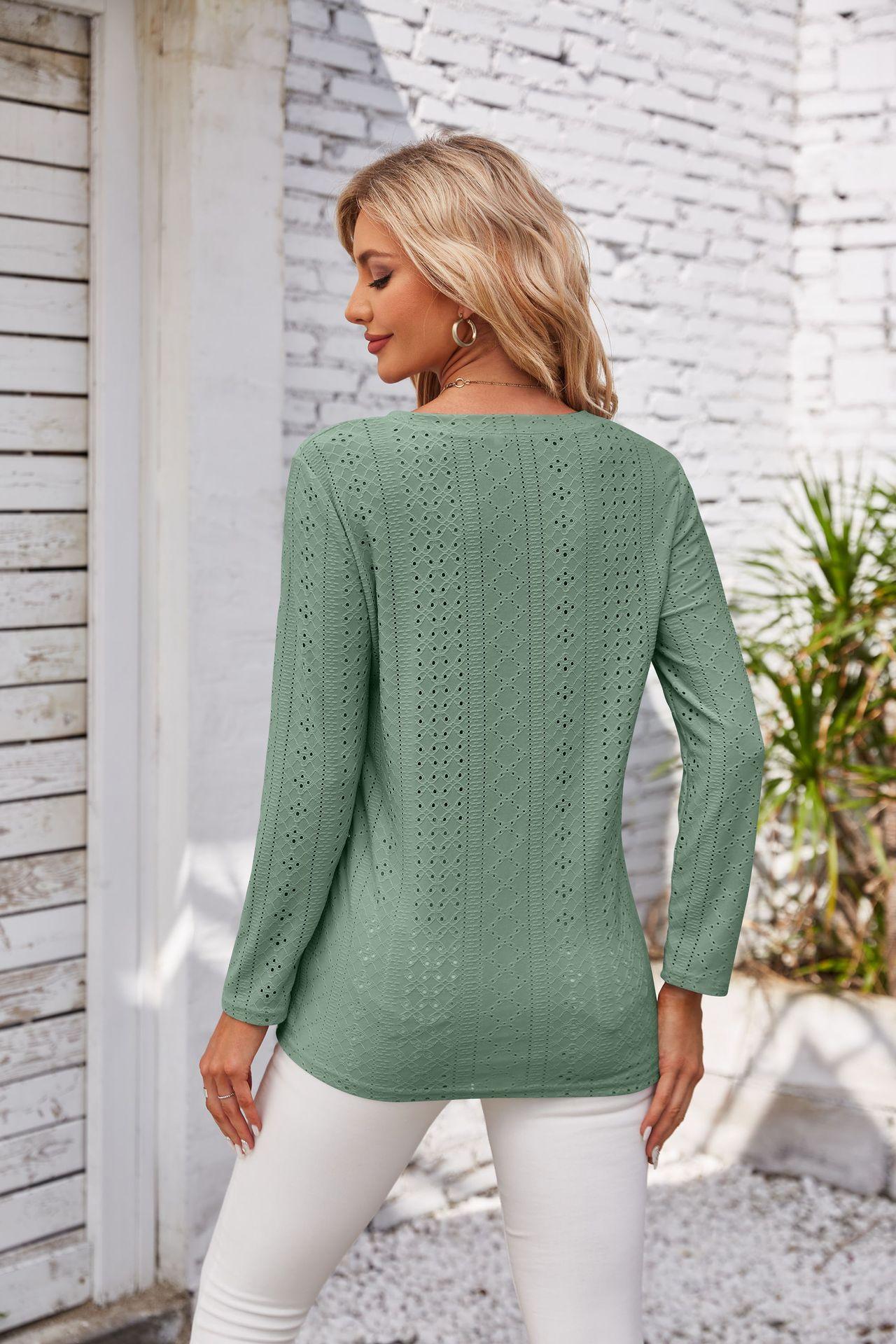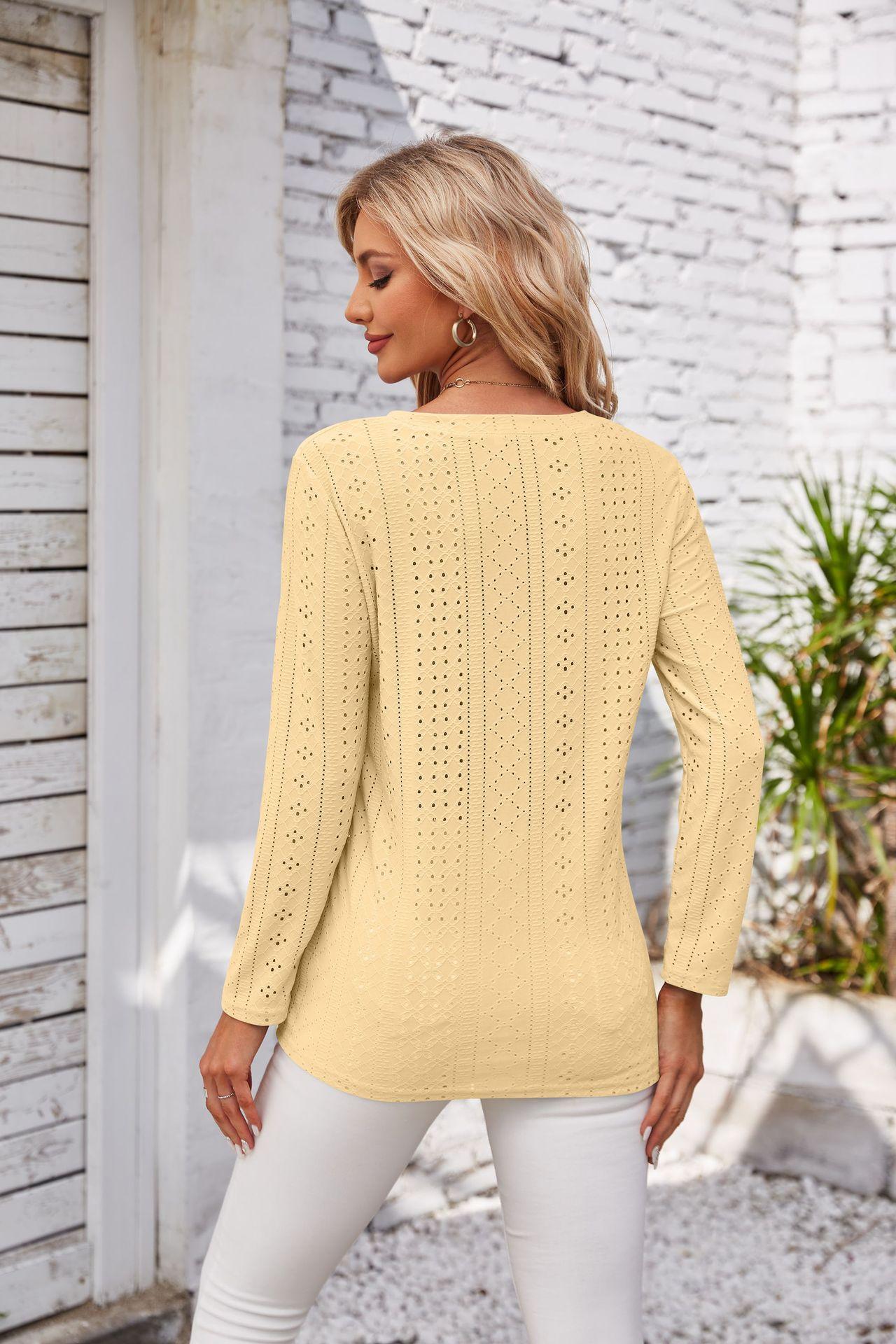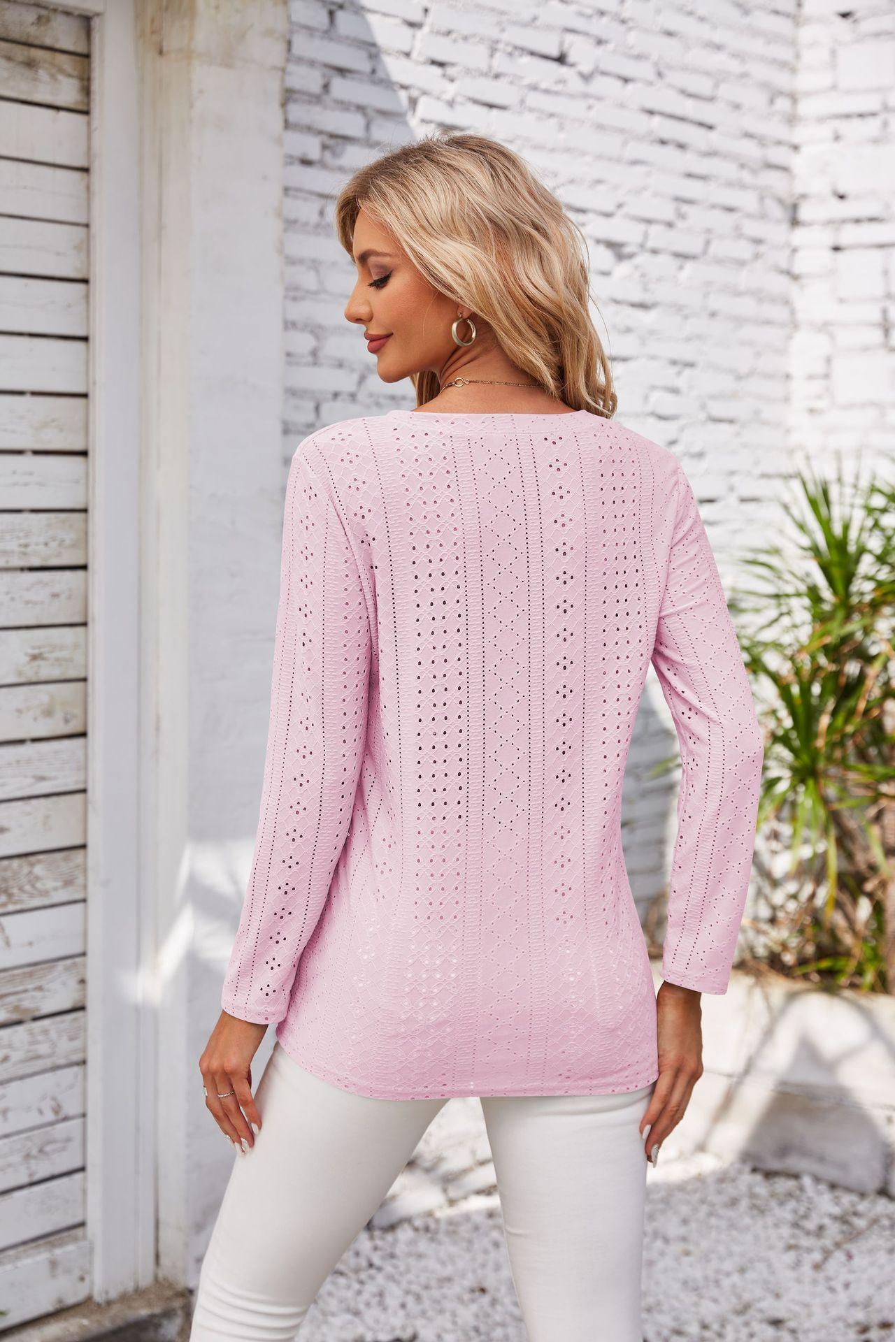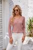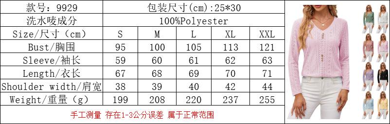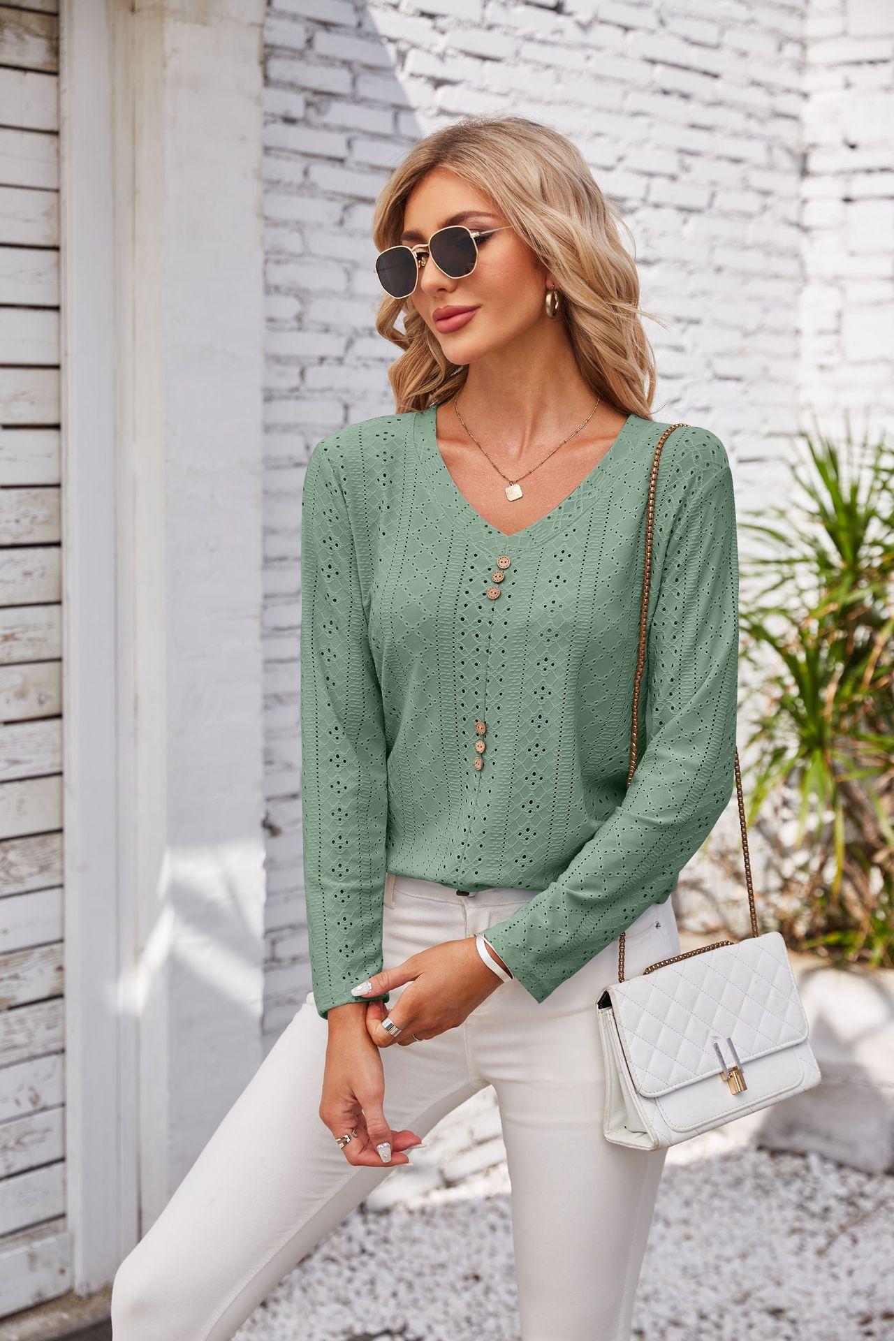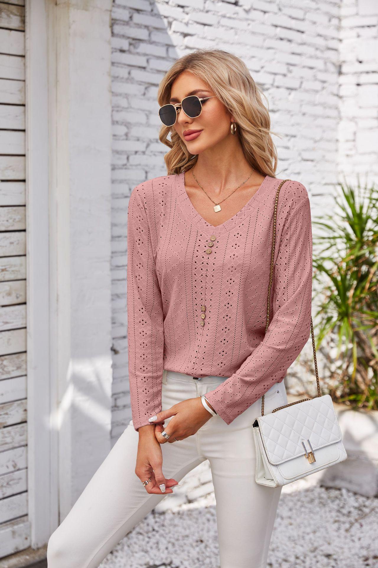 Camiseta de manga larga con cuello en V y botones sueltos para mujer, nueva camiseta informal de primavera y verano de comercio exterior transfronterizo europeo y americano de Amazon 2024