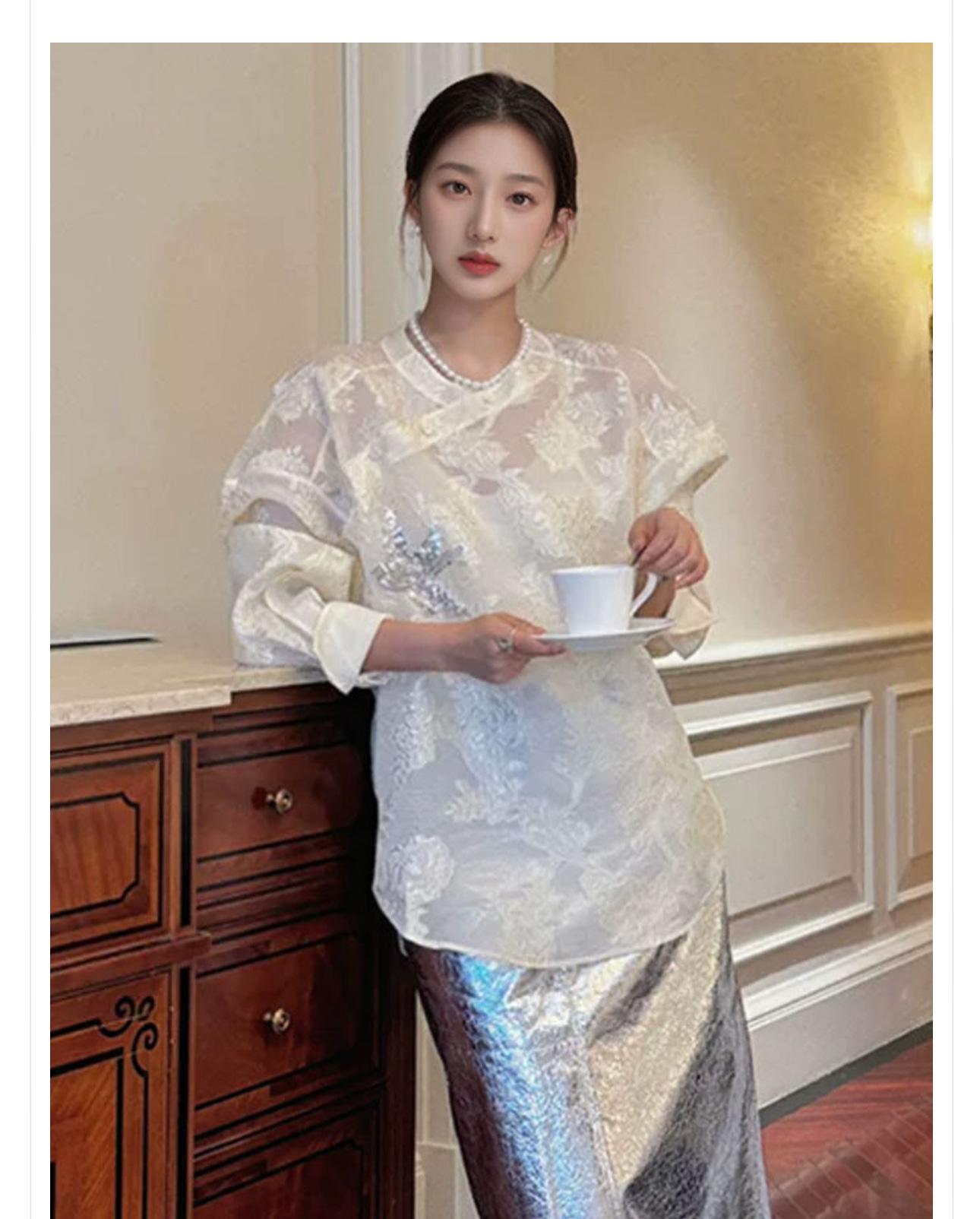 Otoño 2025 Nuevo Estilo Chino Ligero Estilo Nacional Moda Más Fácil de Combinar Seda de Morera Jacquard Bordado Lujo Ligero Camisa de Alta Gama M7093