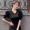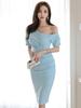 Vestido ajustado de hombros descubiertos y manga corta para mujer Verano 2025 Nuevo diseño dulce Falda esponjosa acampanada