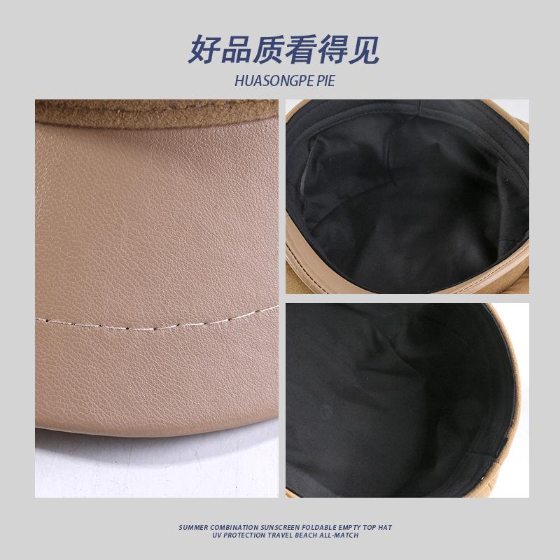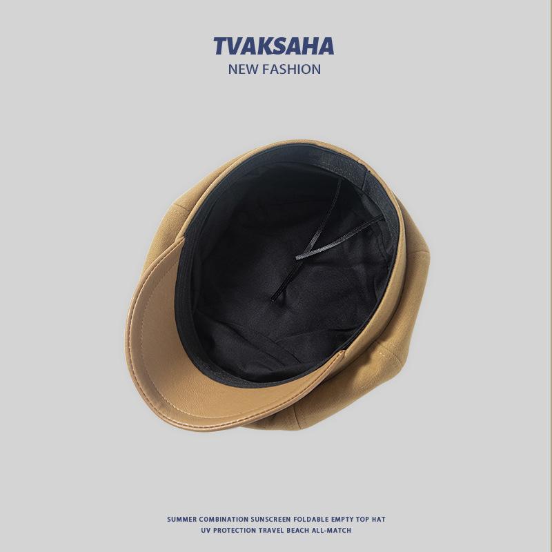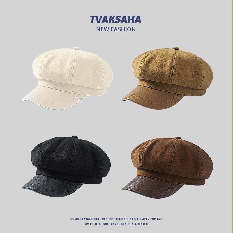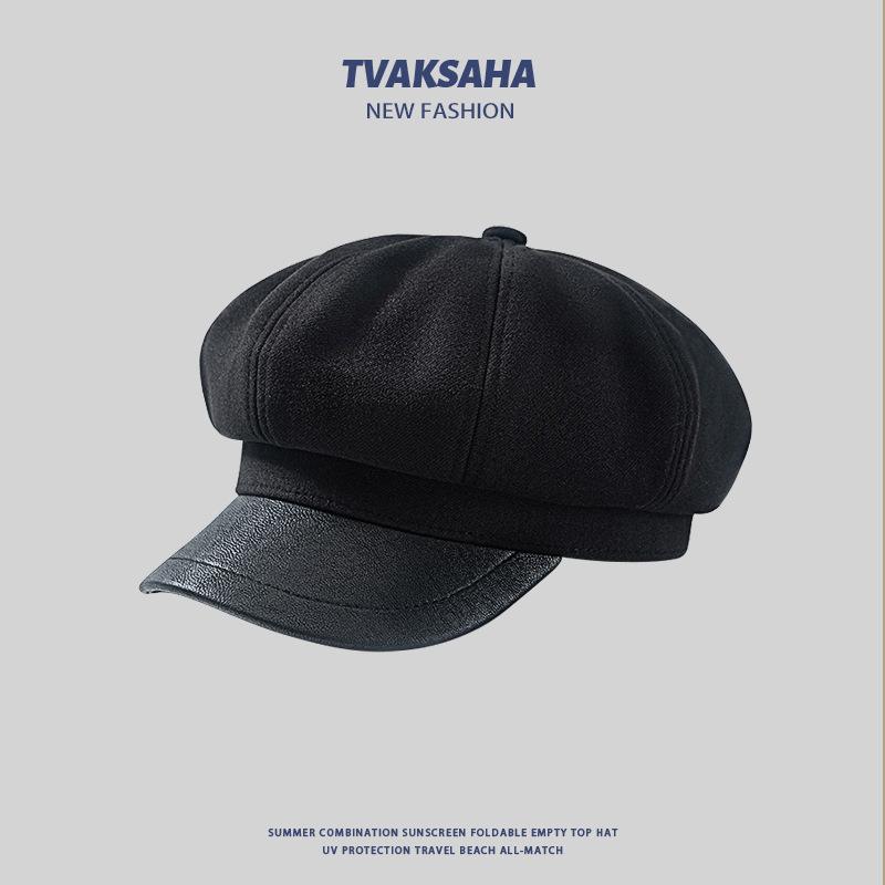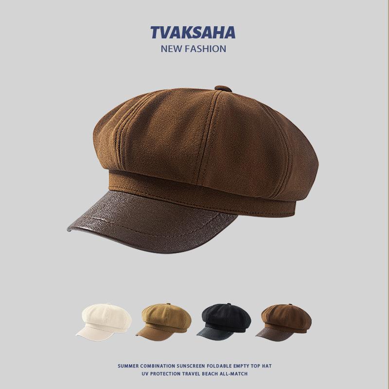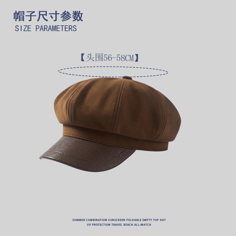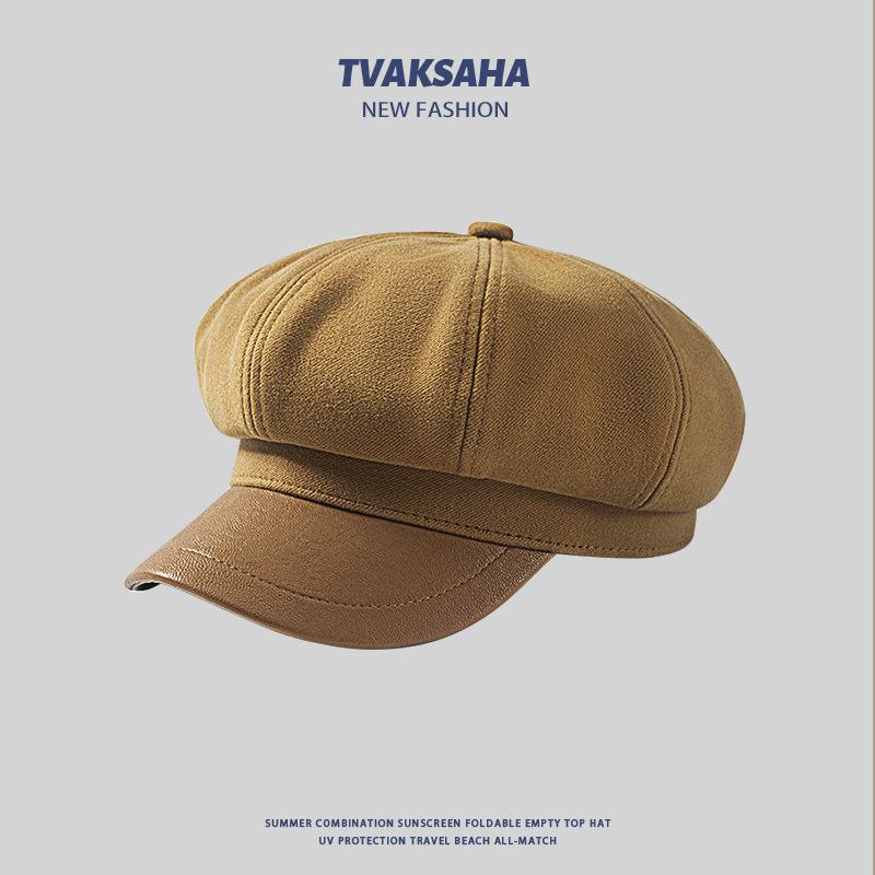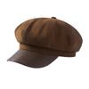 C4176 Leather brim woolen octagonal hat dark coffee, C4176 leather brim woolen octagonal hat light coffee, C41...